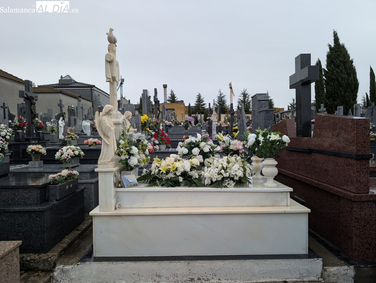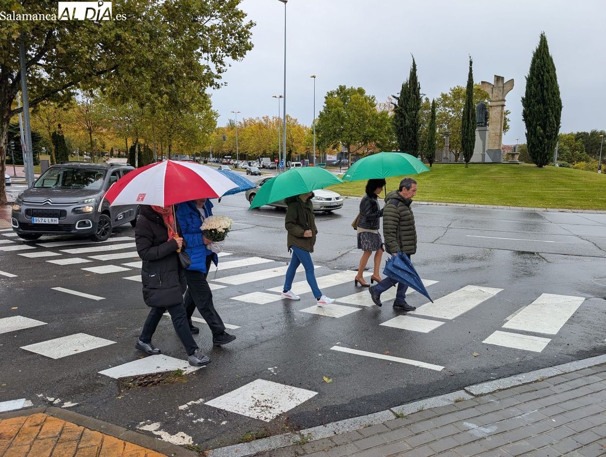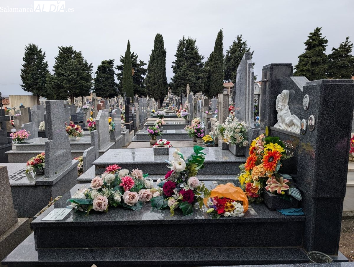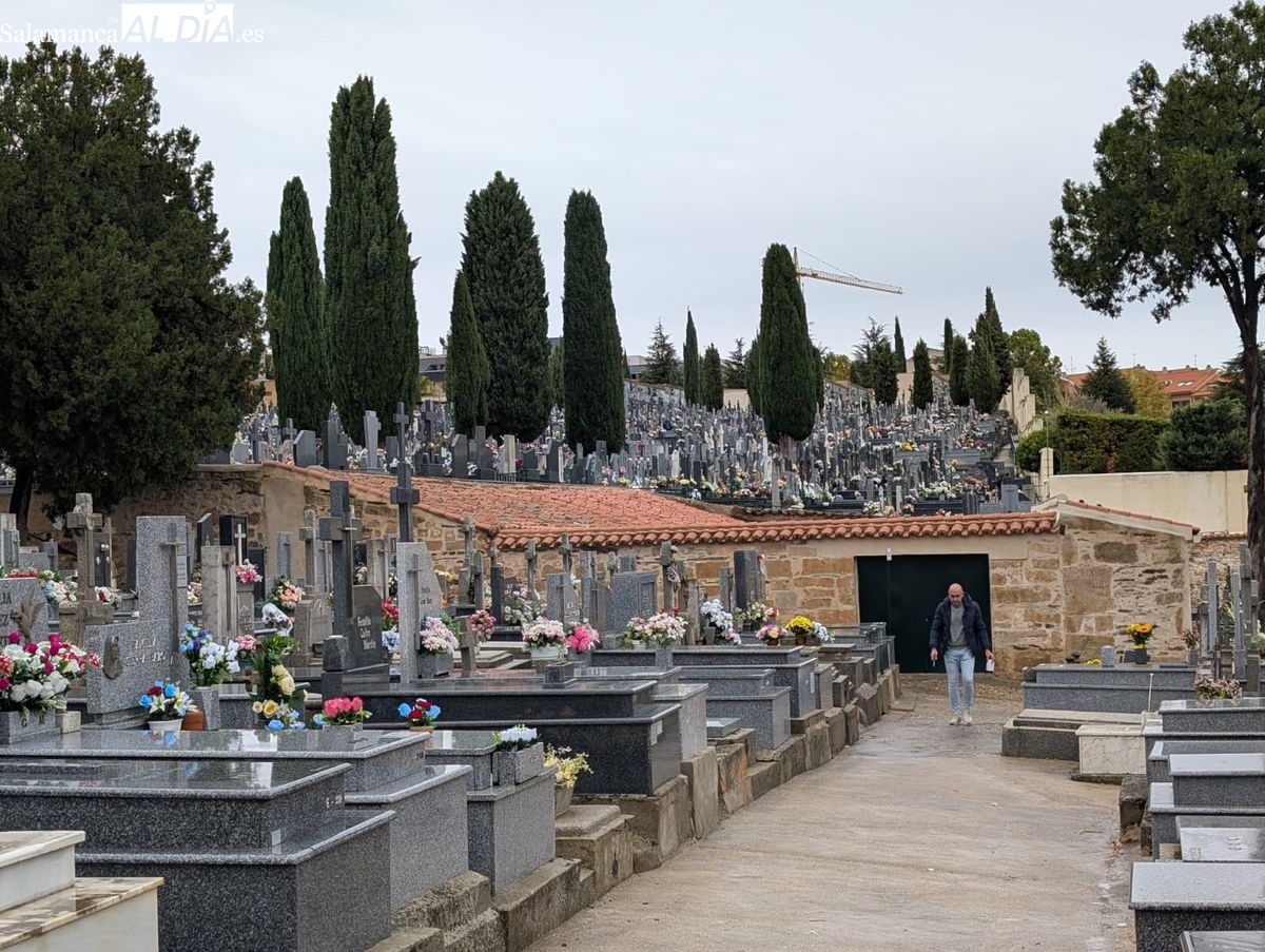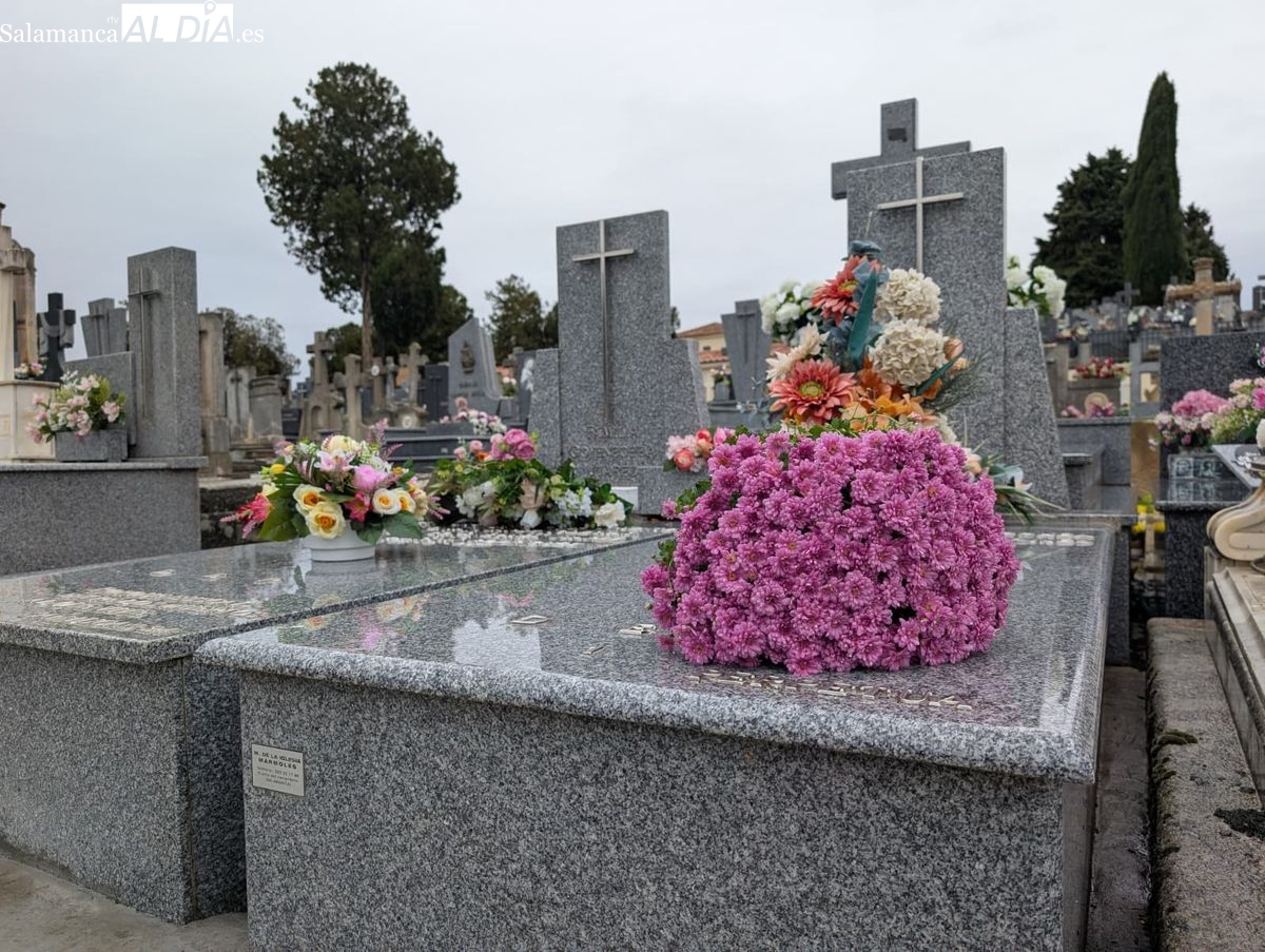 El cementerio de San Carlos Borromeo presenta este sábado una estampa más tranquila de lo habitual en la festividad de Todos los Santos. A pesar de la persistente lluvia que cae sobre Salamanca desde primera hora, la tradición de honrar a los difuntos se ha impuesto y han sido numerosos los salmantinos que se han acercado para depositar flores en las tumbas y panteones de sus seres queridos.