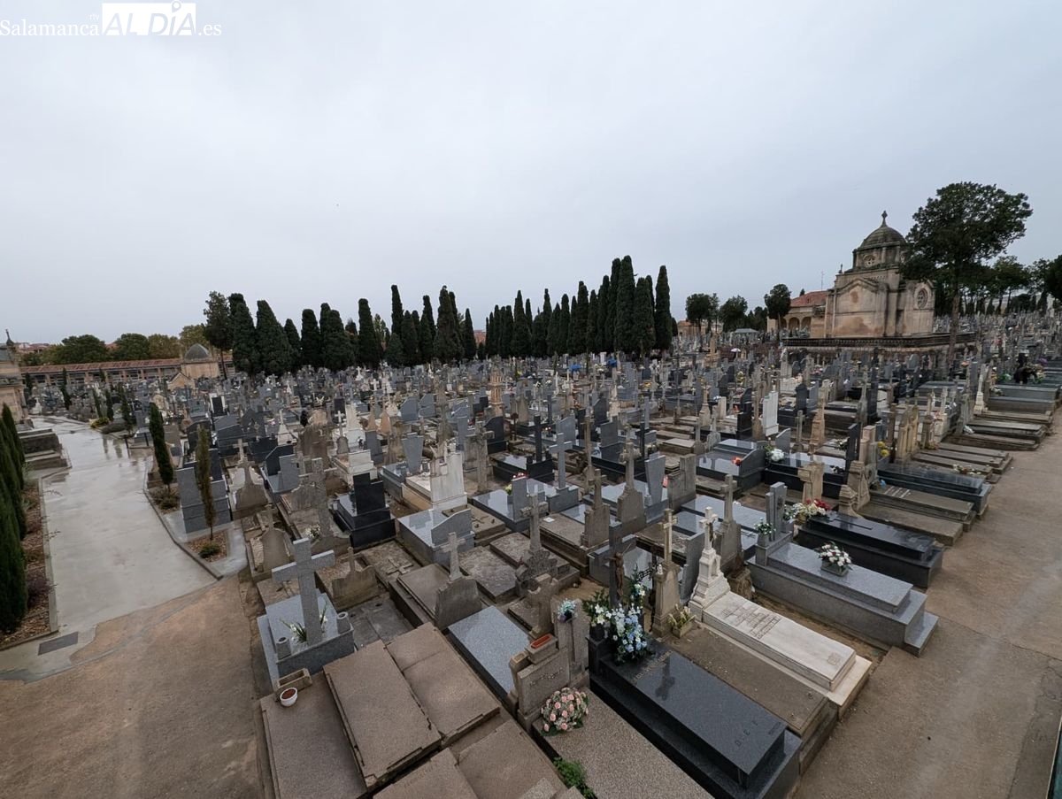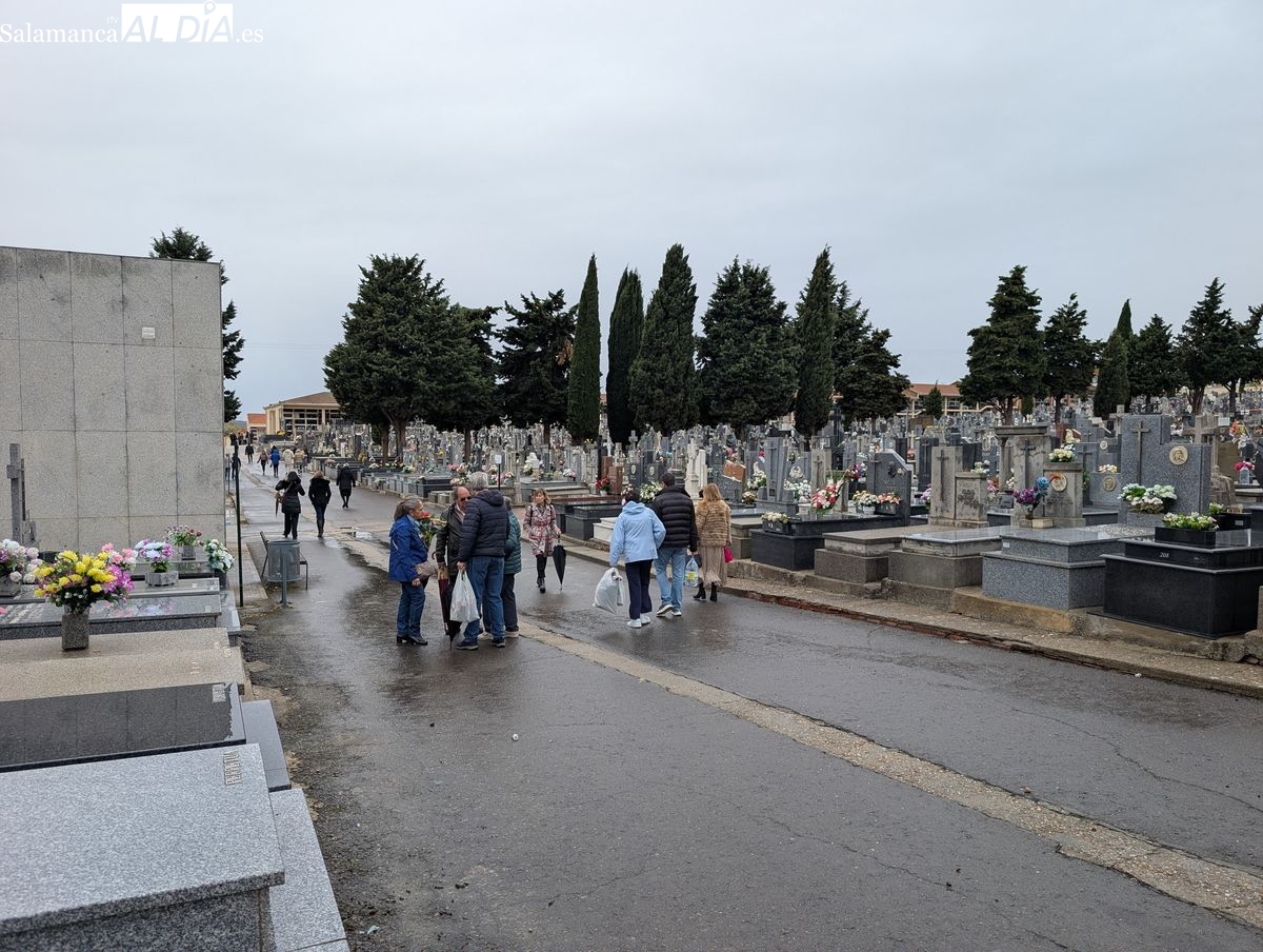 La festividad de Todos los Santos en Salamanca ha estado marcada por la lluvia, lo que ha provocado una menor afluencia de visitantes al cementerio de San Carlos Borromeo. A pesar del mal tiempo, numerosos salmantinos han mantenido la tradición de depositar flores en las tumbas de sus seres queridos y disfrutar de los puestos de dulces típicos.