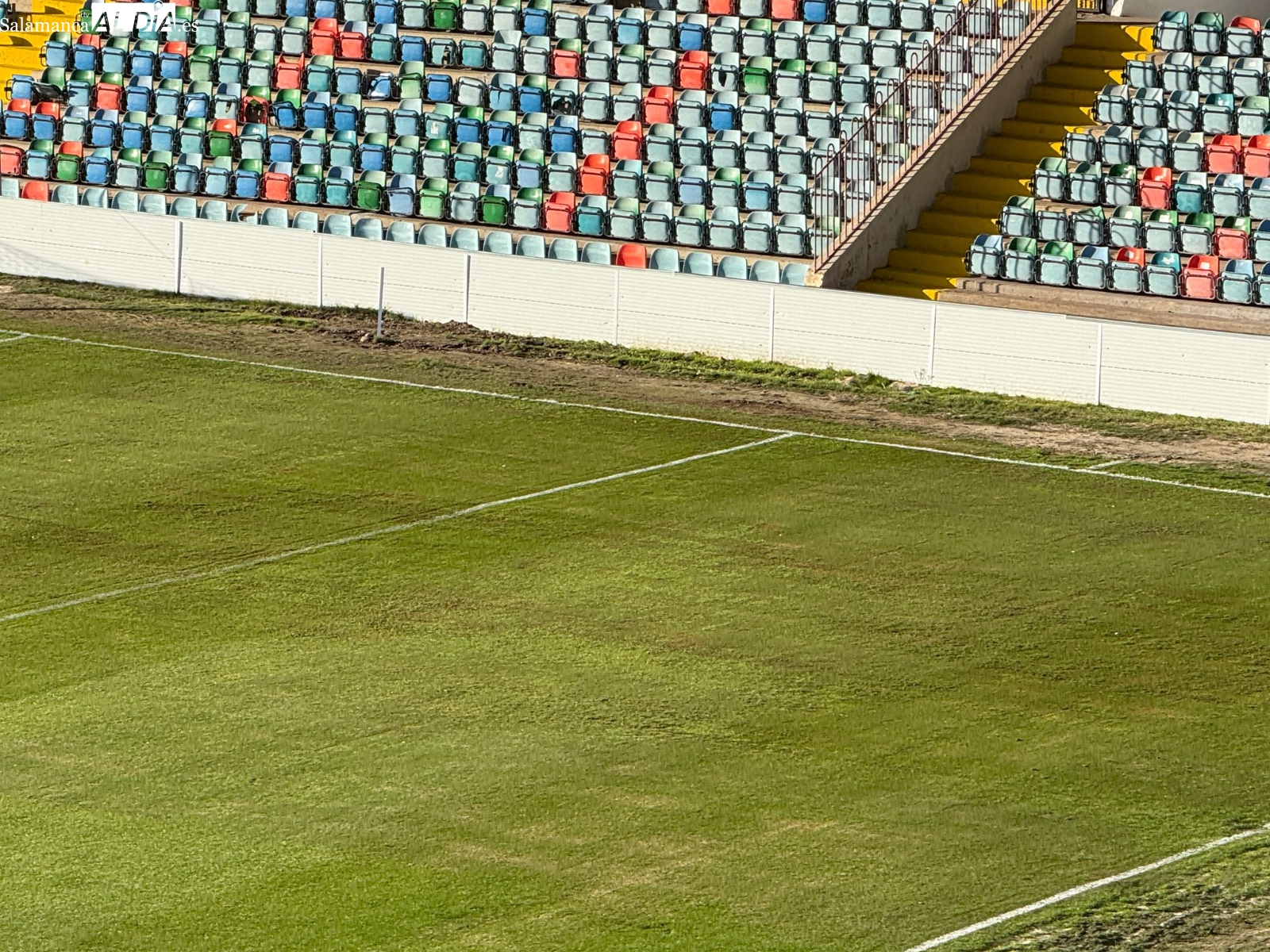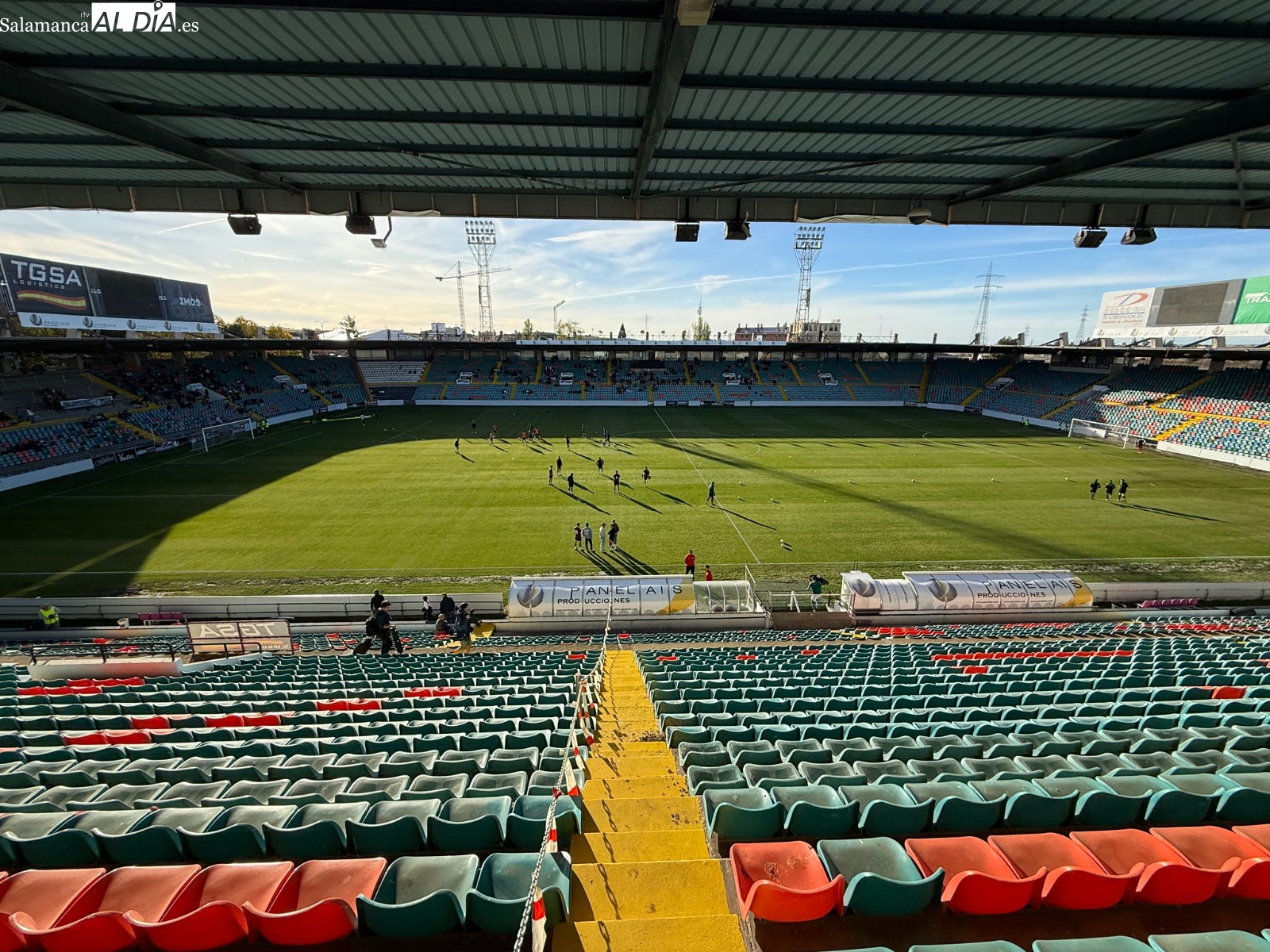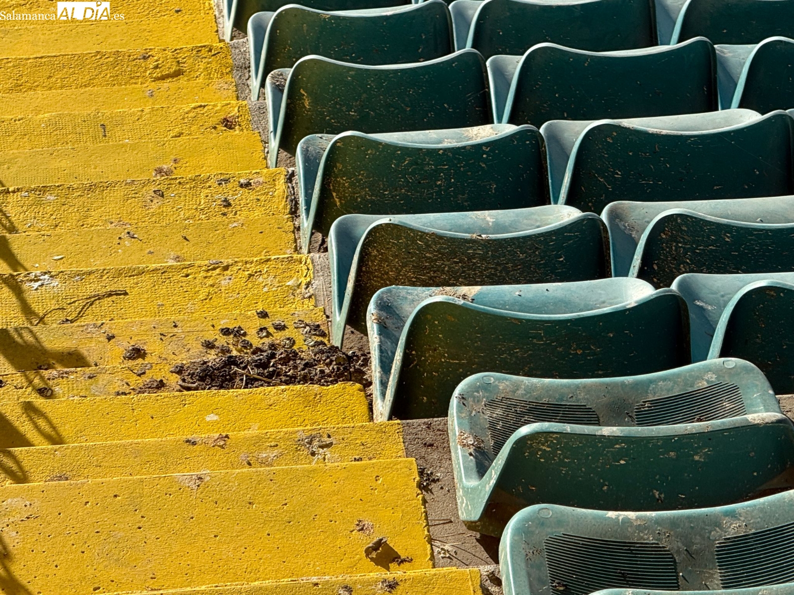 El Helmántico ha presentado un aspecto totalmente idéntico a la última vez que abrió sus puertas -salvo la publicidad de los videomarcadores, que siguen sin funcionar- para un encuentro del Salamanca UDS a finales de abril de 2025. Además, también se ha podido ver que hay enchufes rotos, suciedad, el césped a medio gas en la trasera de la banda de Preferencia con un estado pésimo, algo que se puede comprobar en las fotos publicadas en SALAMANCArtv AL DÍA.