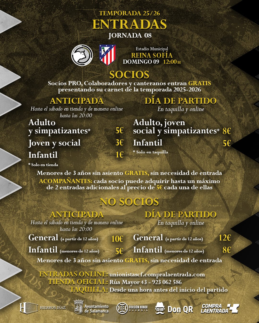 Unionistas de Salamanca Club de Fútbol vivirá una jornada histórica el próximo domingo 9 de noviembre a las 12:00 horas. El equipo juvenil recibirá al Atlético de Madrid en el estadio Reina Sofía en el marco de la octava jornada de la Liga de División de Honor Juvenil.