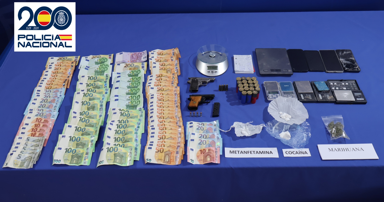 Los detenidos, cuatro varones y dos mujeres pertenecientes a la misma familia, se enfrentan a presuntos delitos contra la salud pública, robo con violencia, tenencia ilícita de armas, apropiación indebida y simulación de delito. En los registros simultáneos de cuatro viviendas, los agentes intervinieron cocaína, anfetamina, marihuana, dos pistolas y más de 6.000 euros en efectivo.