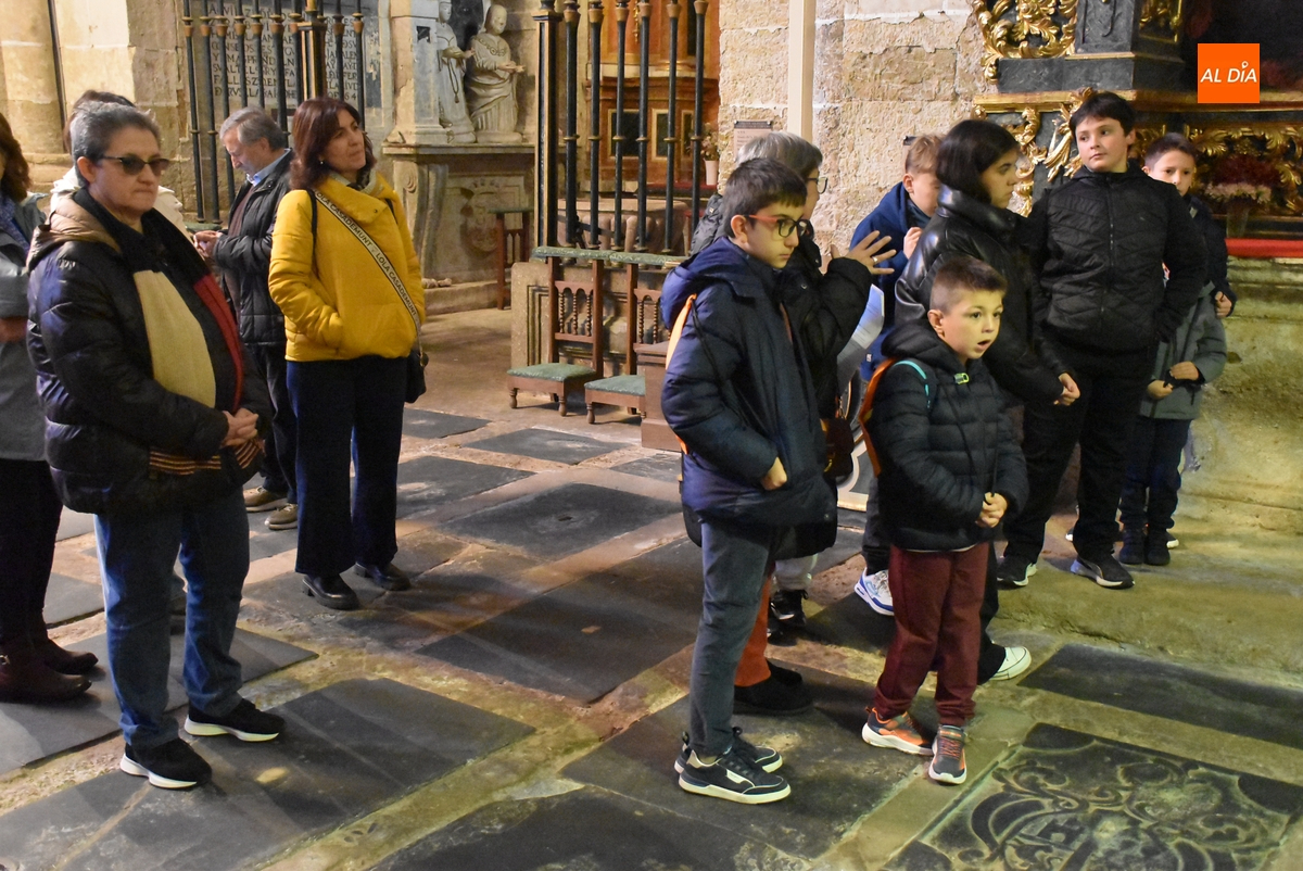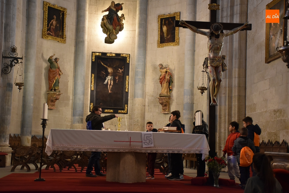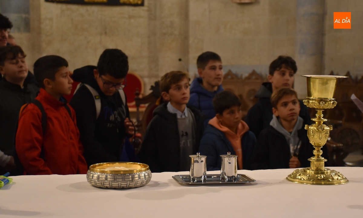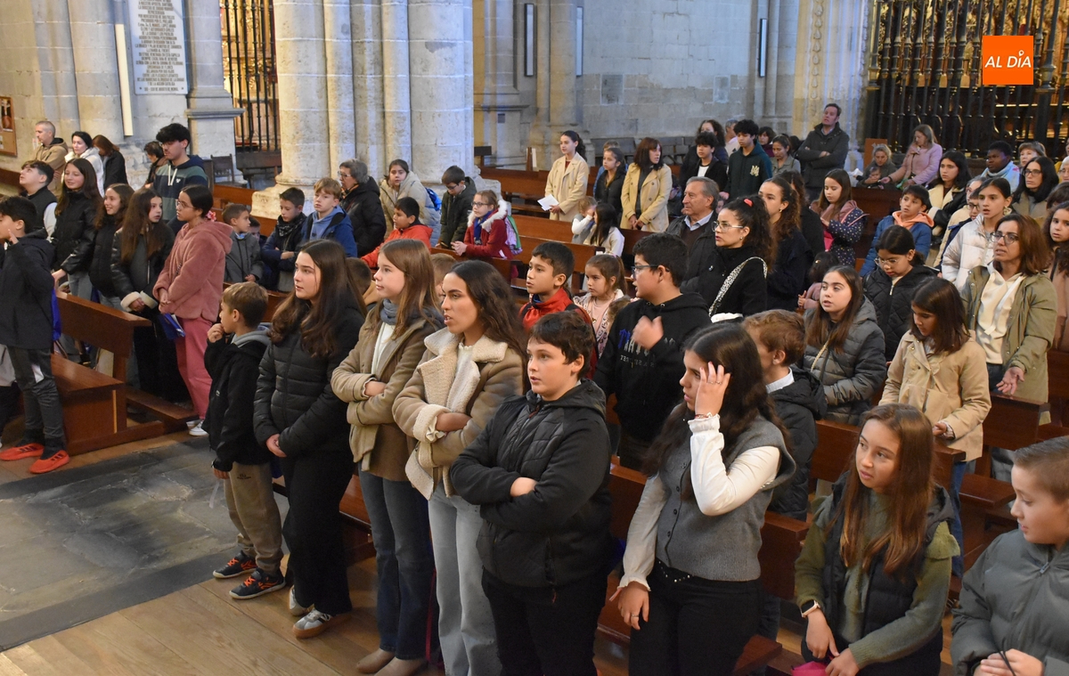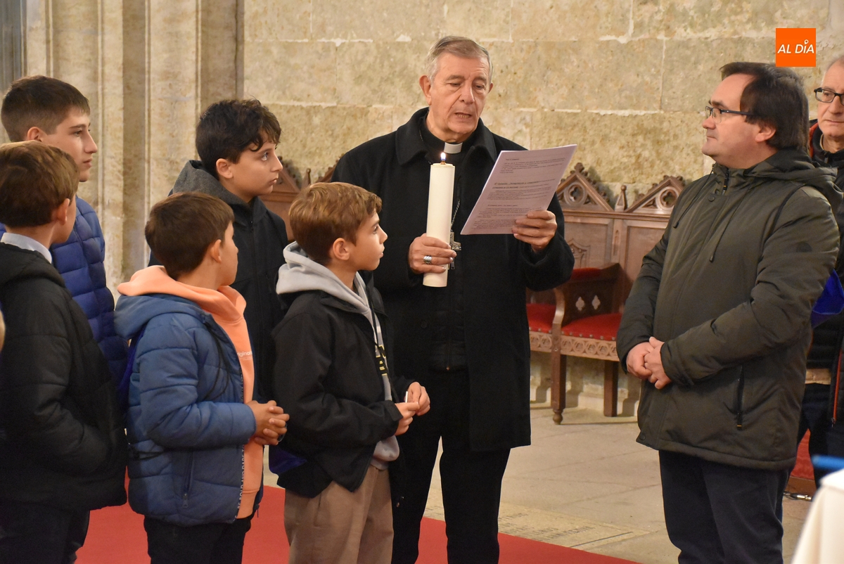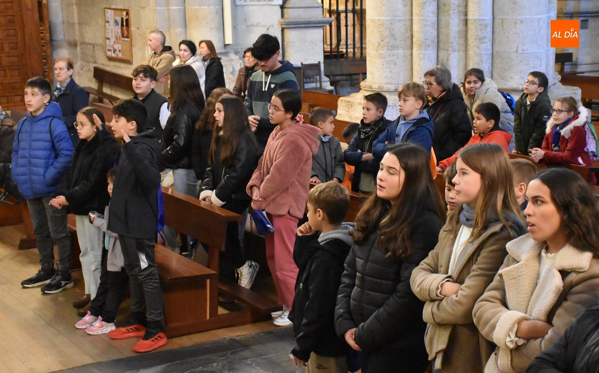 De este modo, el grupo entró en la Catedral por la Puerta de las Cadenas, una vez finalizada la misa diaria en la Seo. Lo primero que tuvo lugar fue una catequesis dinámica, recorriendo los chavales (divididos por grupos) cinco estaciones distribuidas por capillas de la Catedral y por el presbiterio, donde se reflexionó sobre la esperanza en Jesús, el ejemplo de María, la misericordia de Dios, la fuerza que sostiene a los peregrinos en el camino y la buena nueva de la encarnación.