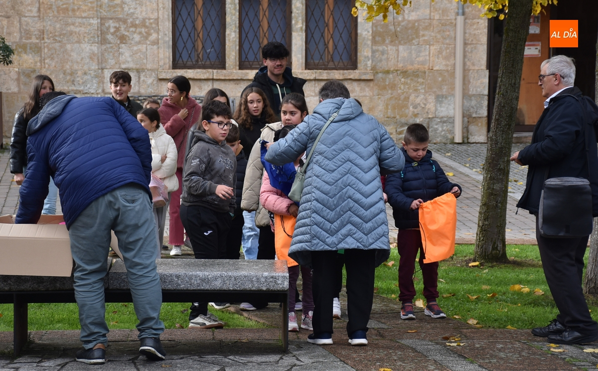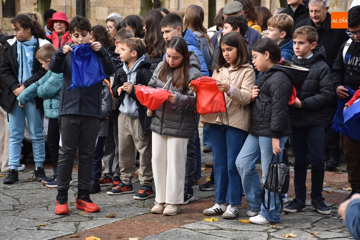 L@s niñ@s participantes, que estuvieron acompañados por sacerdotes, catequistas y algunos familiares, se fueron reuniendo en la Plazuela de Herrasti, donde tras una gran foto de familia (y entregarles unas mochilas de colores con el lema Soy cristiano porque tengo esperanza), Gloria Pastor dio unas primeras nociones sobre lo que significa el Jubileo, a modo de motivación inicial.