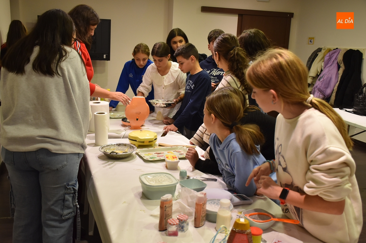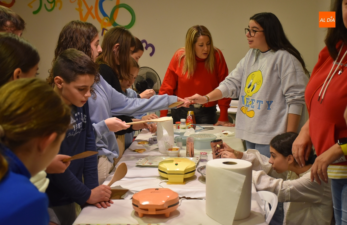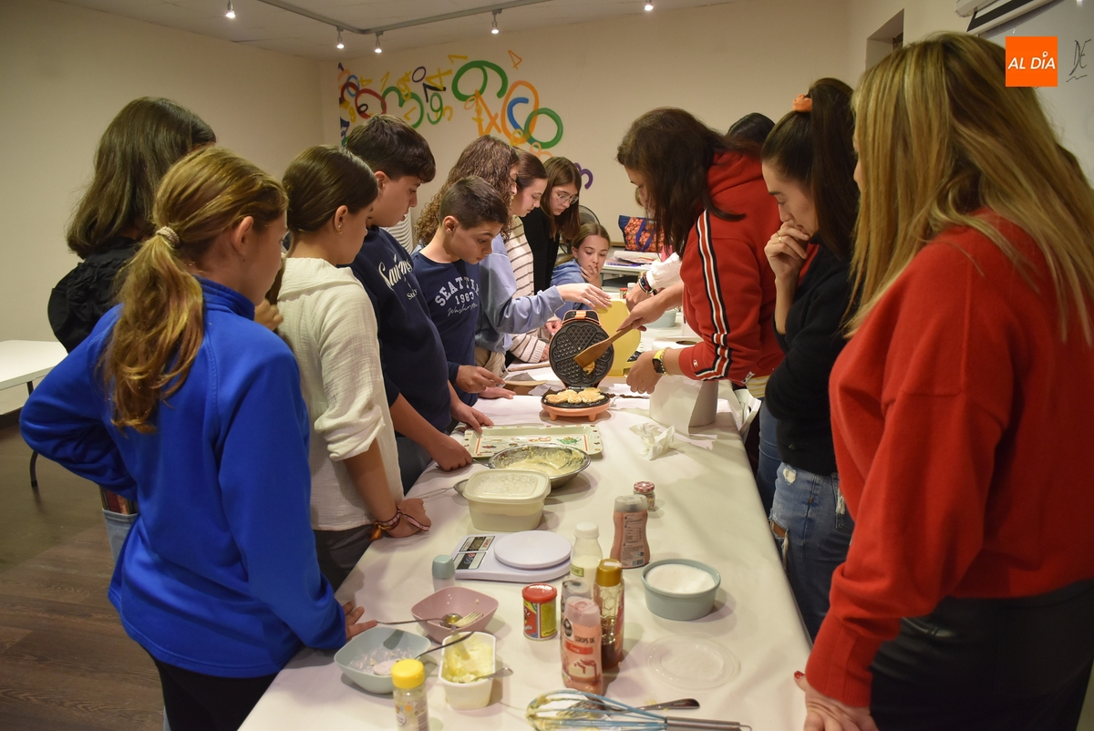 Este primer taller fue de repostería, congregándose una quincena de chavales, que tuvieron la oportunidad de hacer sus pinitos en esta disciplina con la ayuda de expertas en la materia, cocinando y degustando varios productos. Durante la sesión, los chavales recibieron la visita de la delegada de Juventud del Ayuntamiento, Ana María Castaño.