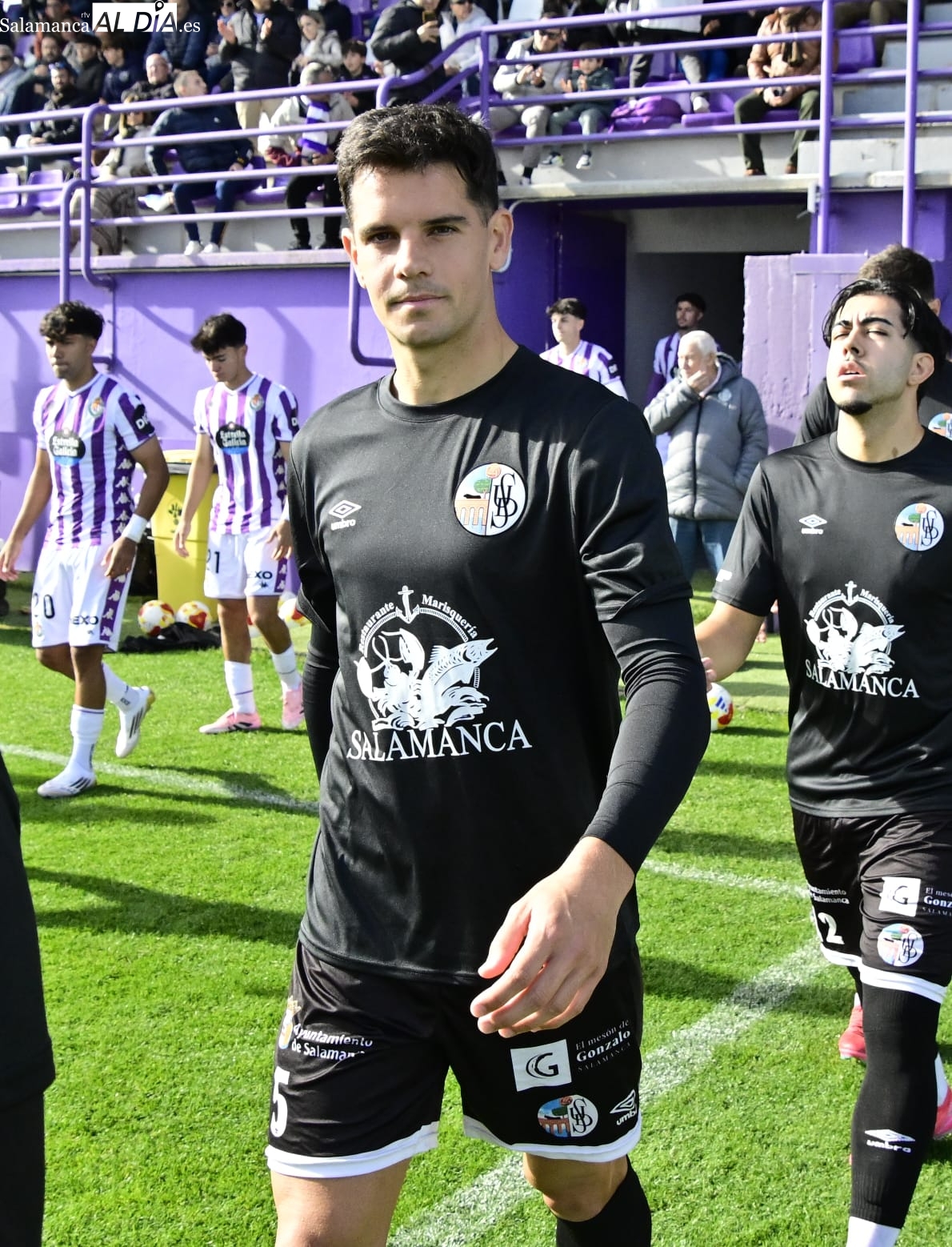 En la alineación para el Anexo del José Zorilla, Jorge García ha confiado en Leo Mendes por la lesión de Jon e Imanol ha completado la convocatoria; en la defensa han formado Parra, Marotías, Murua y Pulpón; en el doble pivote, turno para Lara y Cristeto; por delante, línea de tres con Aimar, Dani Hernández y Tomi; en punta, Javi Delgado como '9'. Como contrario, Yago Rodríguez, un cariñoso ex.