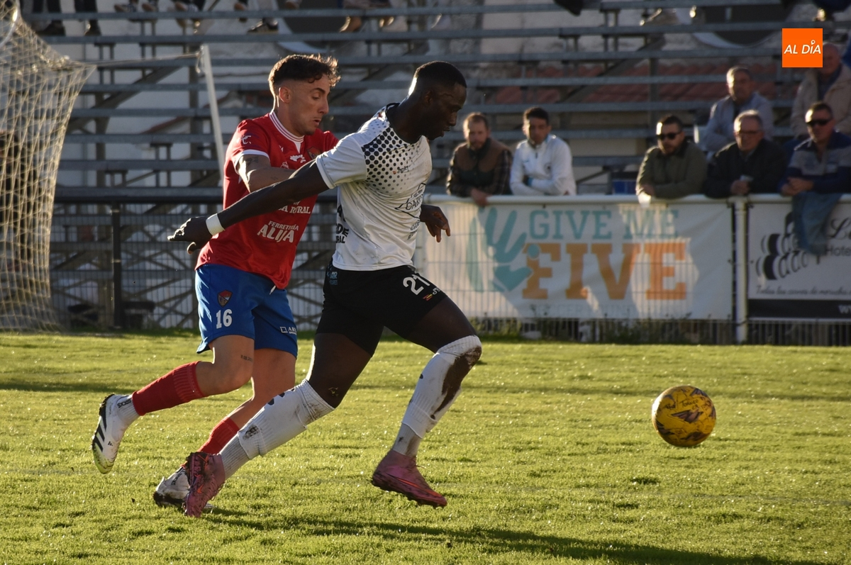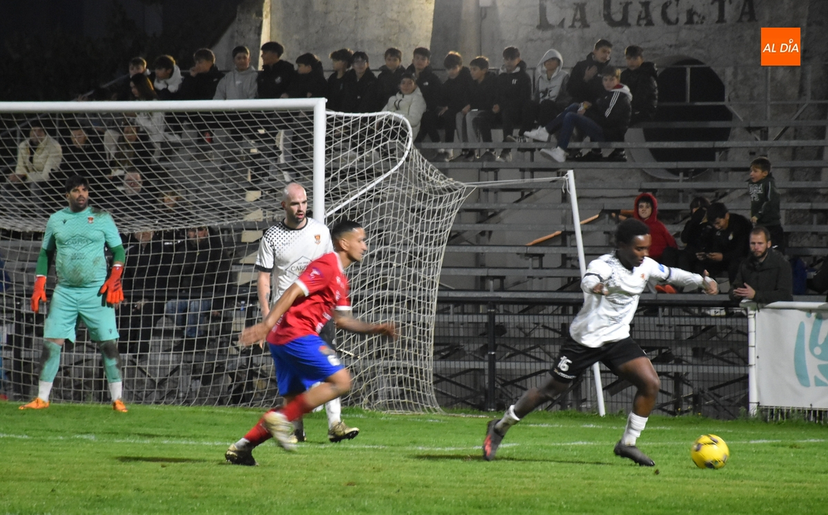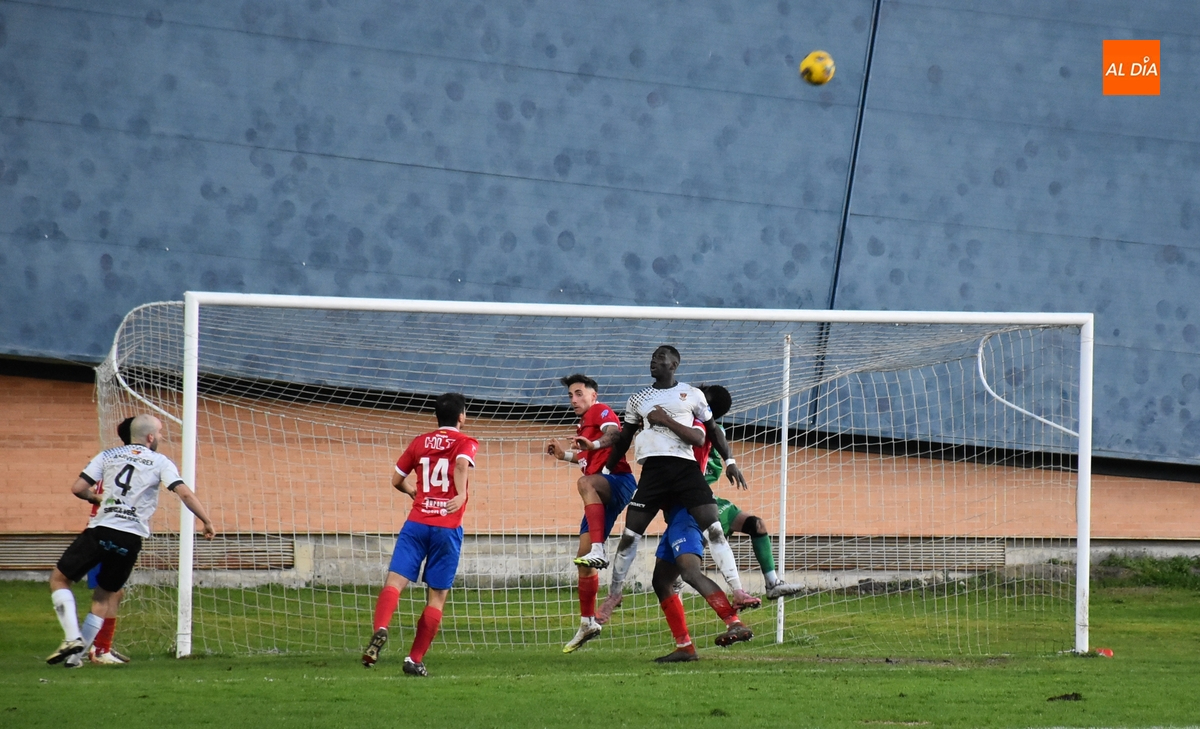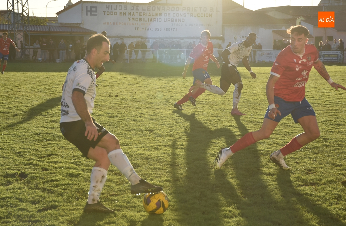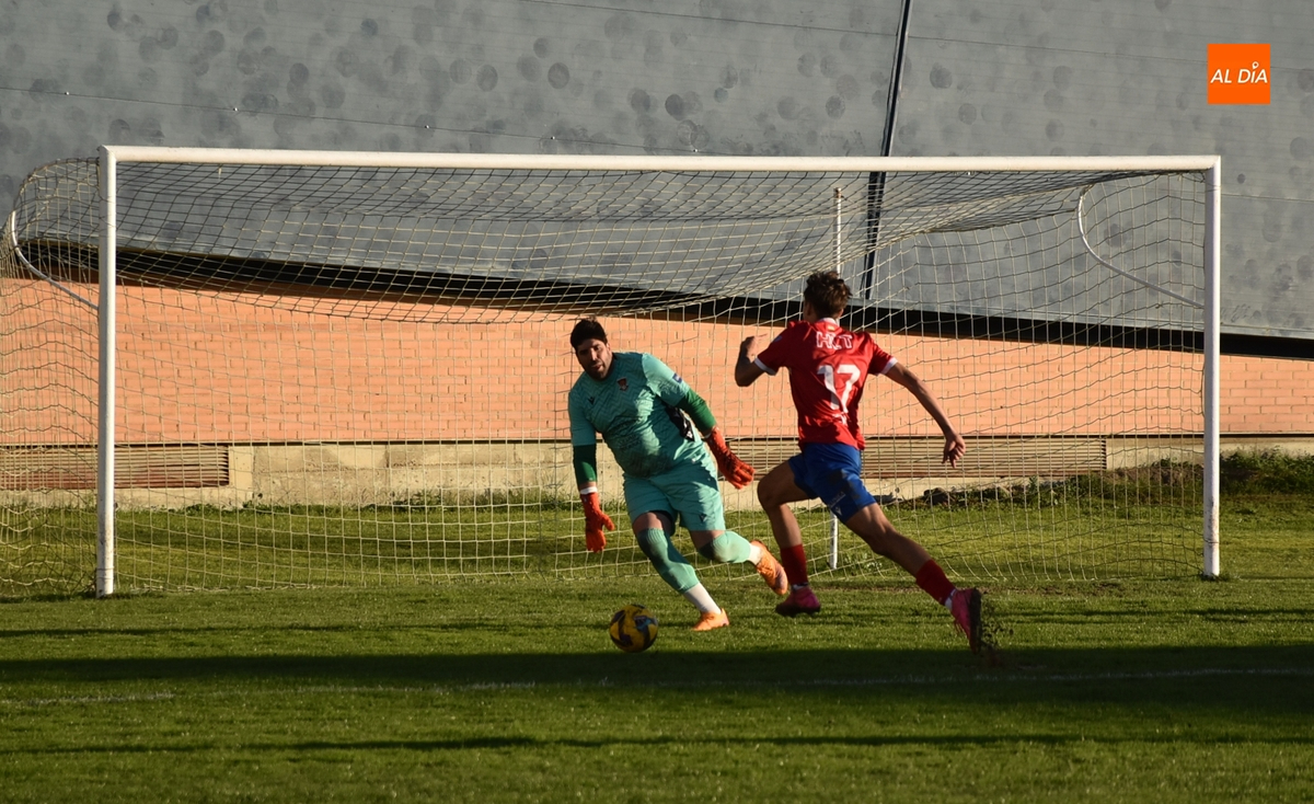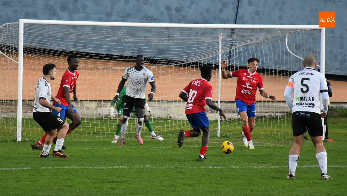 Tras encajar el primer gol, quién lo fue probando en el Ciudad Rodrigo fue Diatta, que firmó hasta tres remates con peligro en lo que quedaba de primer tiempo: dos desde la frontal se fueron, respectivamente, a la izquierda y a la derecha, mientras que la tercera fue una intentona desde su propio campo al ver al portero adelantado, pero éste logró reaccionar. La primera parte se cerró con un tiro-chut de Dani Crespo desde el pico derecho del área, que se fue rozando el palo izquierdo tras no atinar a empujarlo Maza y Javichi.