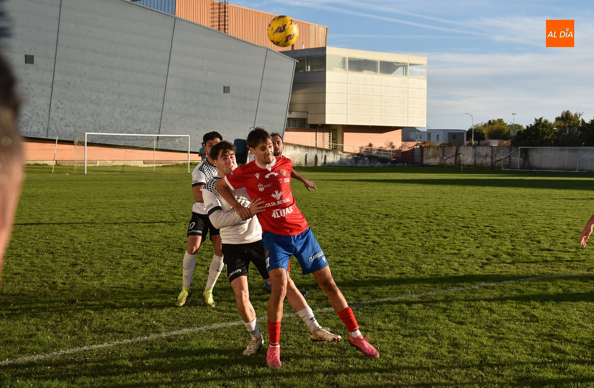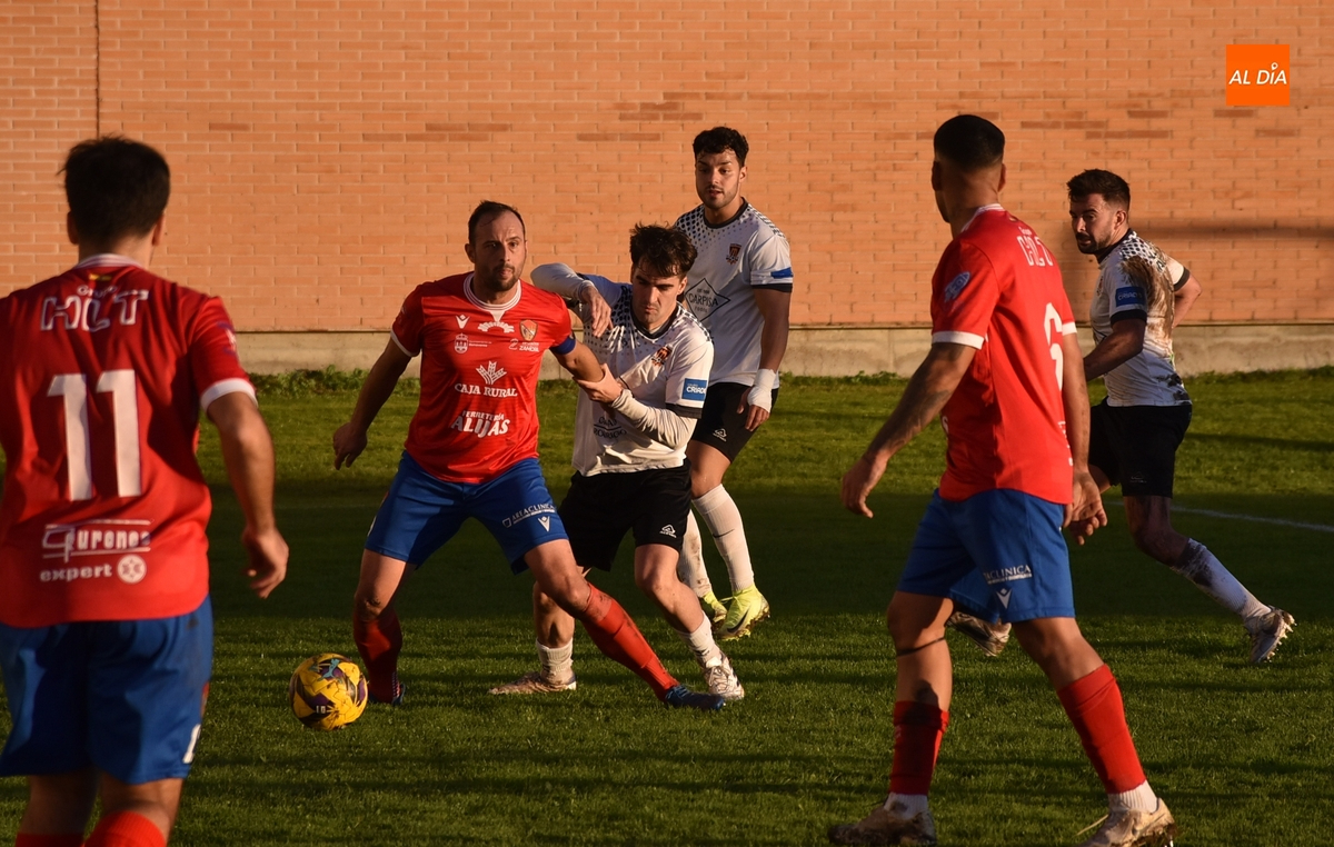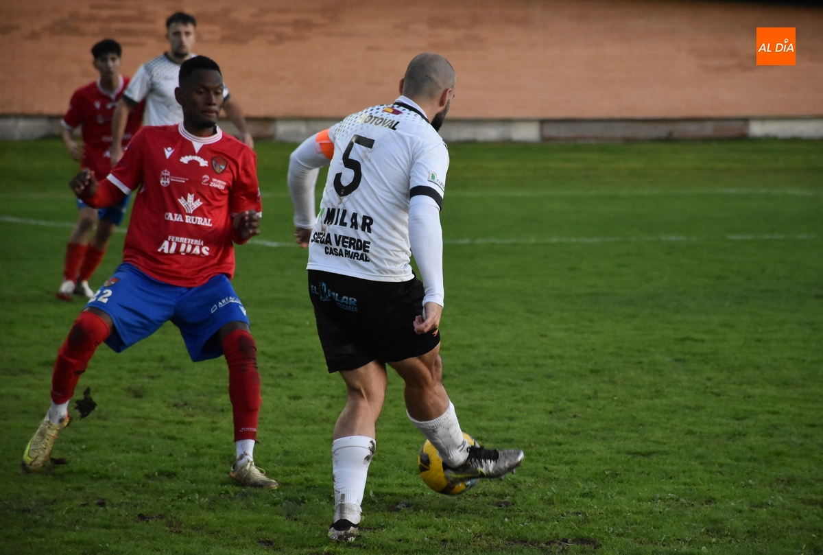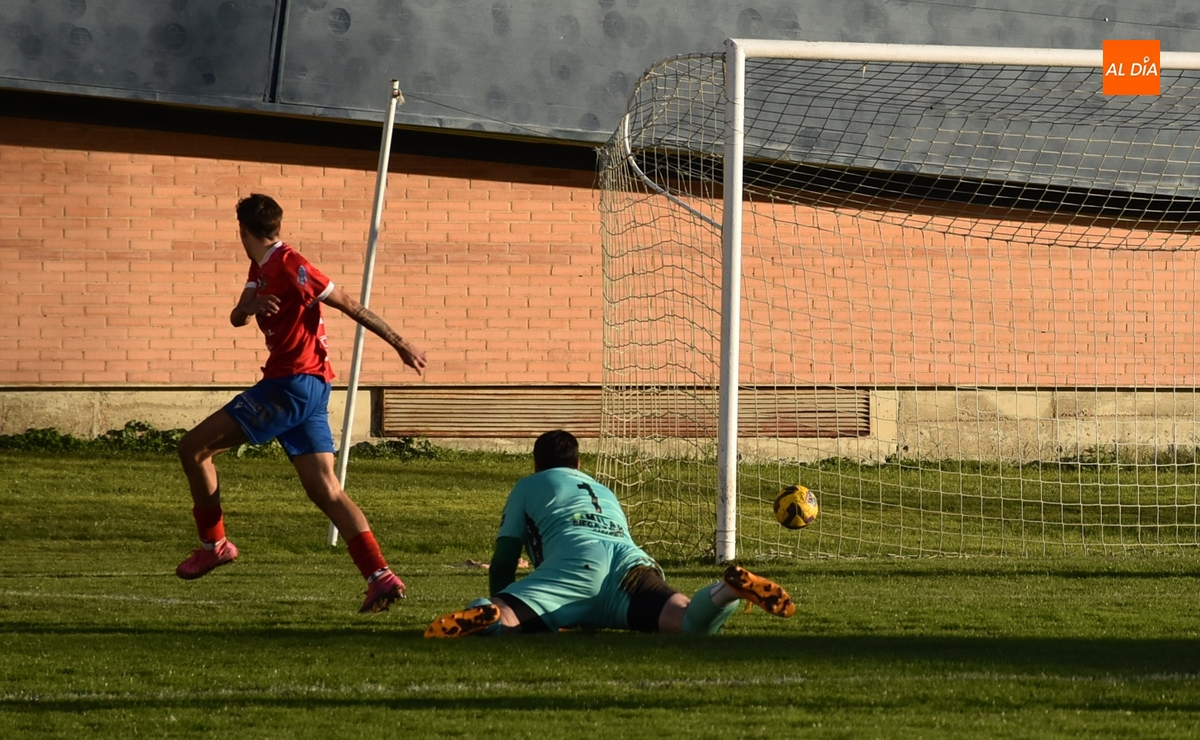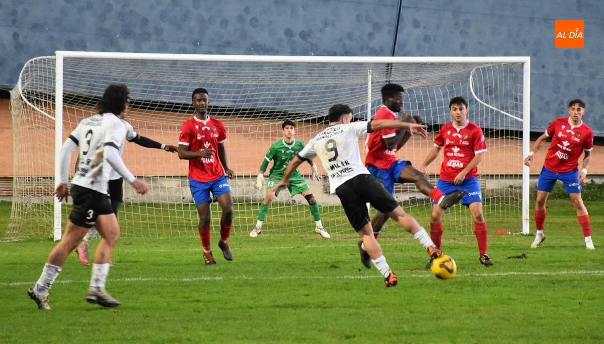Tras encajar el primer gol, quién lo fue probando en el Ciudad Rodrigo fue Diatta, que firmó hasta tres remates con peligro en lo que quedaba de primer tiempo: dos desde la frontal se fueron, respectivamente, a la izquierda y a la derecha, mientras que la tercera fue una intentona desde su propio campo al ver al portero adelantado, pero éste logró reaccionar. La primera parte se cerró con un tiro-chut de Dani Crespo desde el pico derecho del área, que se fue rozando el palo izquierdo tras no atinar a empujarlo Maza y Javichi.