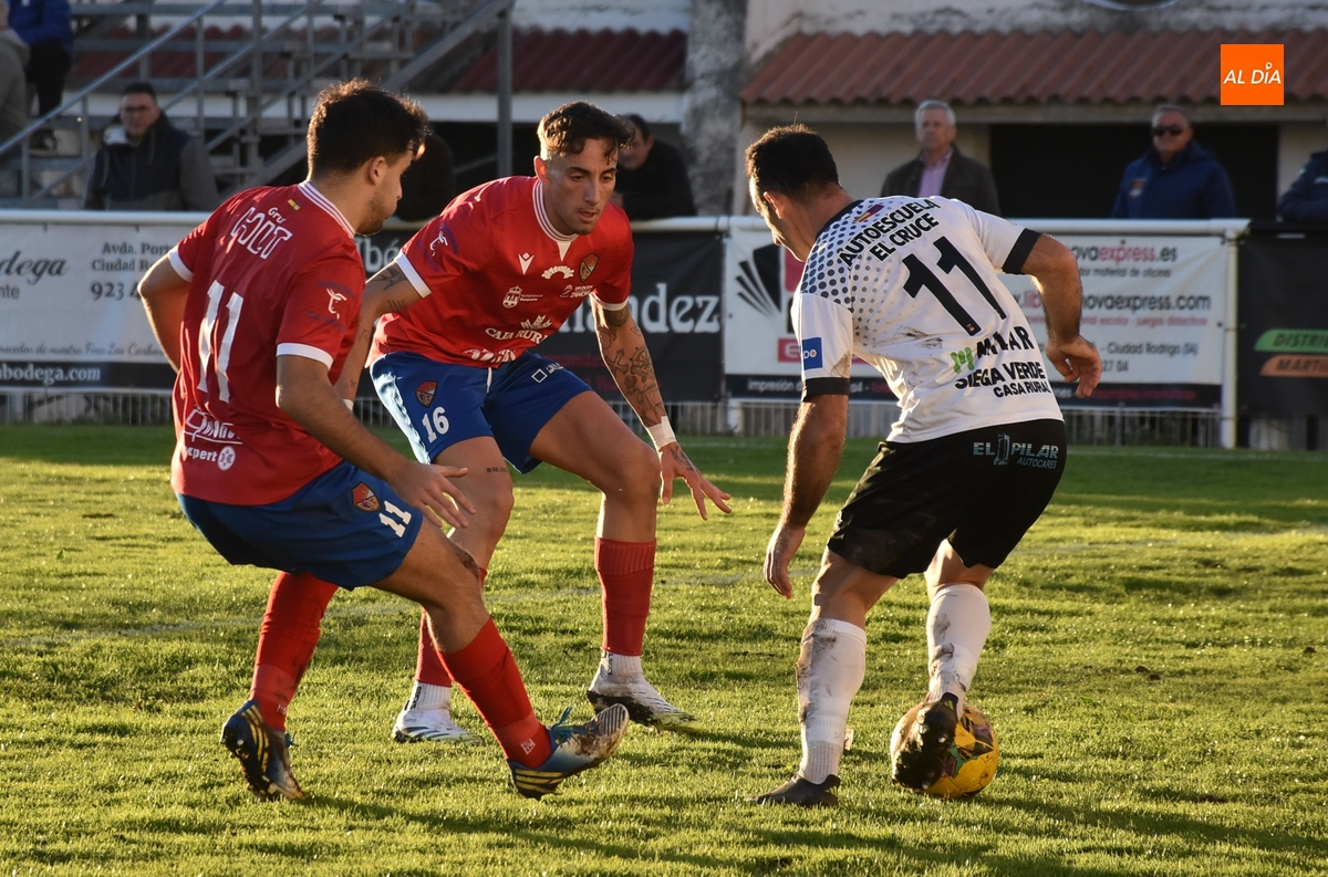 Con el ambiente tan caldeado, el Ciudad Rodrigo intentó irse hacia arriba, pero siempre le faltó un poco de peligro. En este tramo se pueden reseñar intentonas de Maza y Javichi desde la frontal que no llegaron a buen puerto (una se fue alta y la otra la cogió el portero), y un balón que puso Edu San Miguel al corazón del área, pero que se desaprovechó.