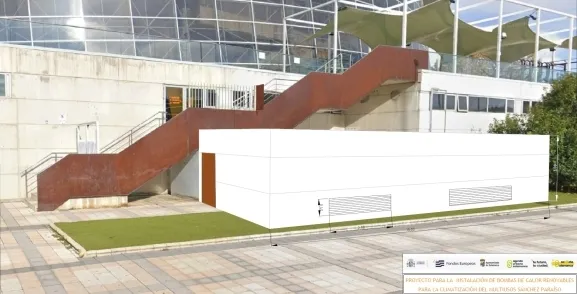 El proyecto comprende la incorporación de dos bombas de calor que producirán agua fría o caliente según las necesidades de climatización del edificio. Esta será conducida por tuberías a los climatizadores ya existentes. Al mismo tiempo, se instalarán depósitos de inercia para optimizar el intercambio de temperatura.