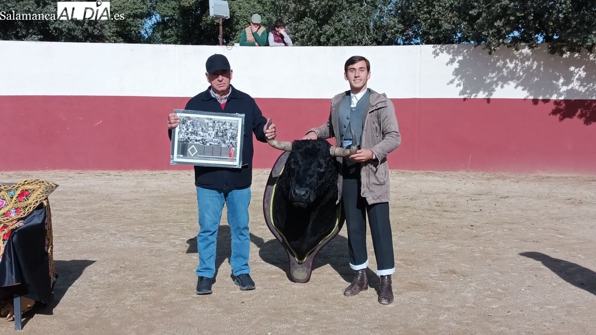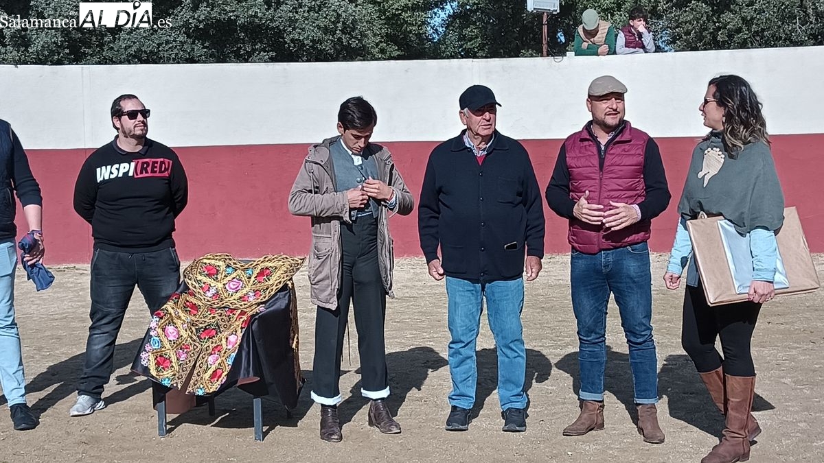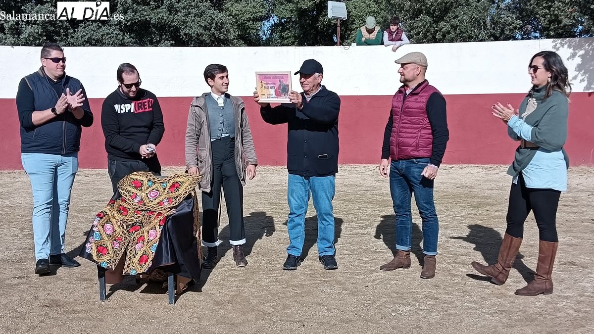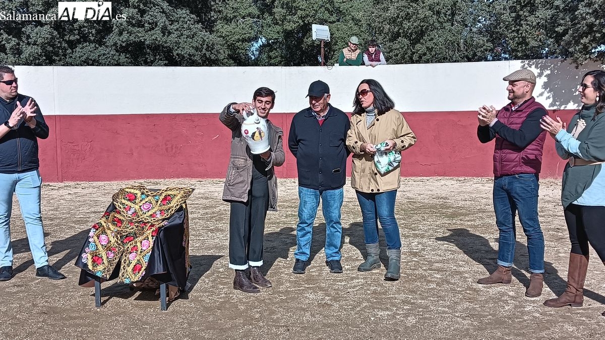 La jornada dio comienzo con un intercambio de obsequios entre la peña, el torero y el ganadero. La peña taurina hizo entrega al torero de un precioso capote de paseo, mientras que el propio torero tuvo un detalle precioso con un emocionado Pepe Valrubio. Ismael Martín le regaló la cabeza del toro 'Gincanillo', de la ganadería de Vellosino, que le brindó en La Glorieta el pasado 13 de septiembre y al que le cortó las dos orejas tras una gran faena. Además, el 'pack' se completó con dos fotografías del momento del brindis. Por su parte, Ismael Martín fue obsequiado por parte de la ganadería con un botijo ilustrado con varias pinturas basadas en sus faenas en la pasada Feria de Salamanca.