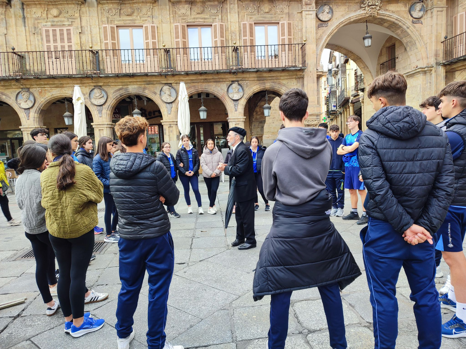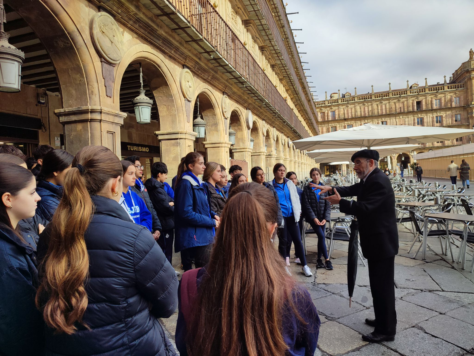El punto de partida del recorrido es la Plaza Mayor, un lugar cargado de simbolismo. Justo debajo del medallón que homenajea al escritor, los alumnos son recibidos por un guía caracterizado como el propio Unamuno, quien inicia una apasionante narración en primera persona sobre su vida y su intensa relación con la ciudad.
