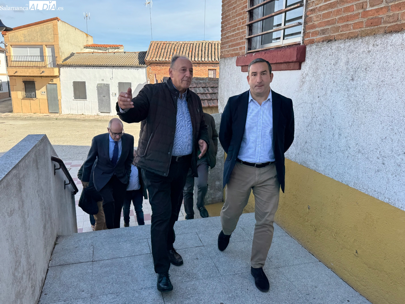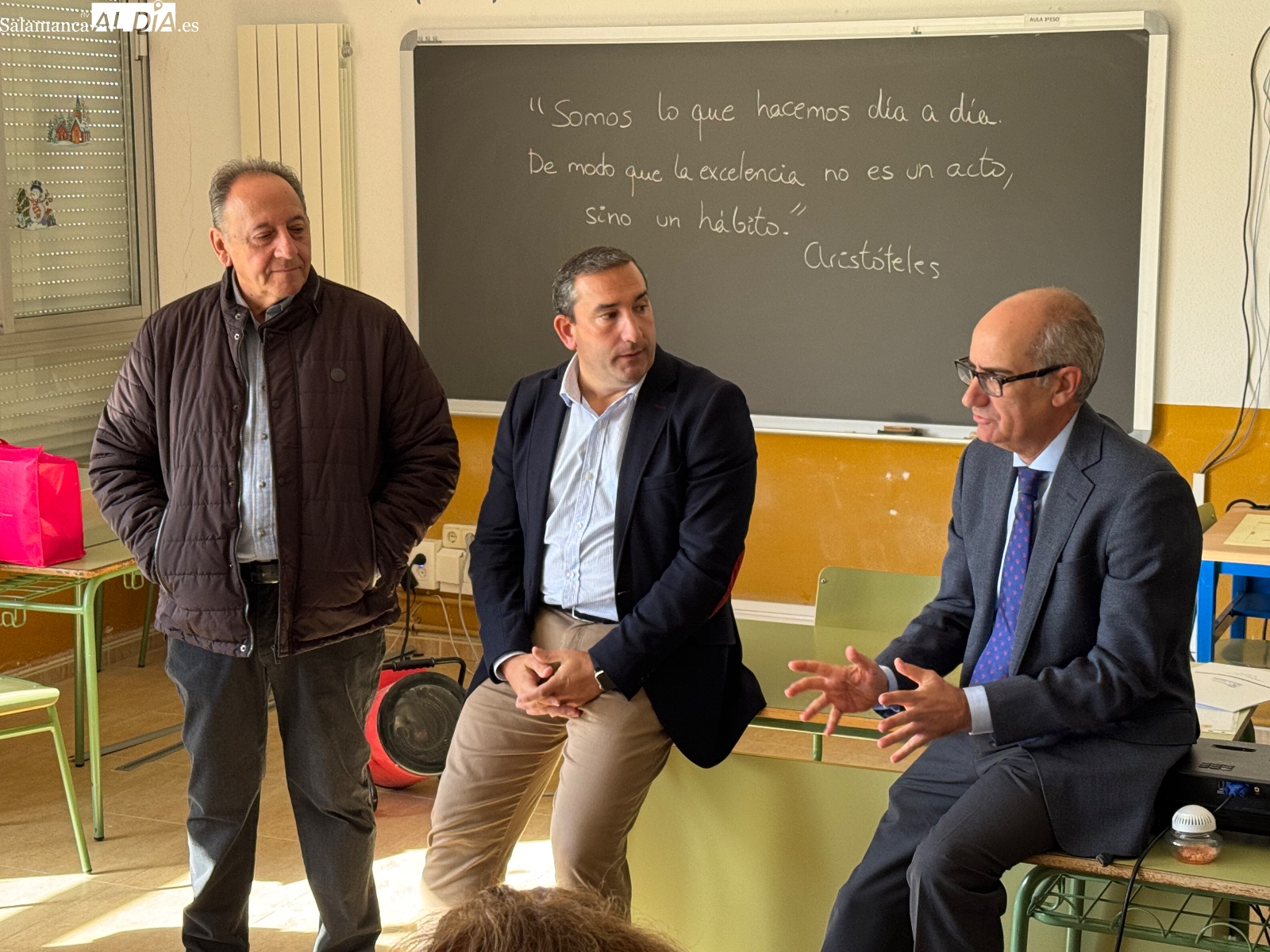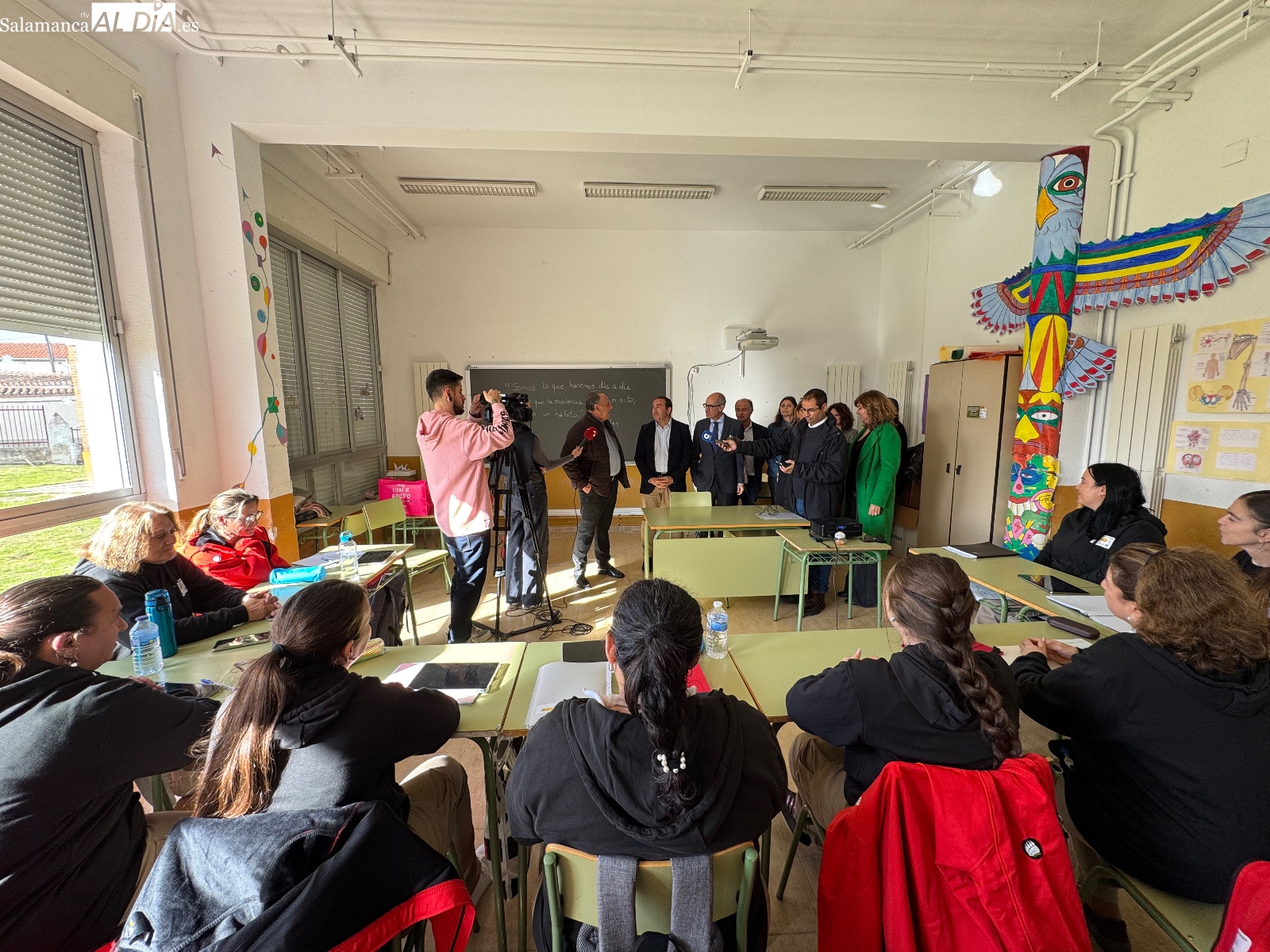 El delegado territorial de la Junta de Castilla y León en Salamanca, Eloy Ruiz, y el presidente de la Diputación de Salamanca, Javier Iglesias, junto al alcalde Benjamín Madrid, han visitado hoy a las integrantes y el equipo docente