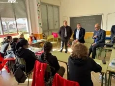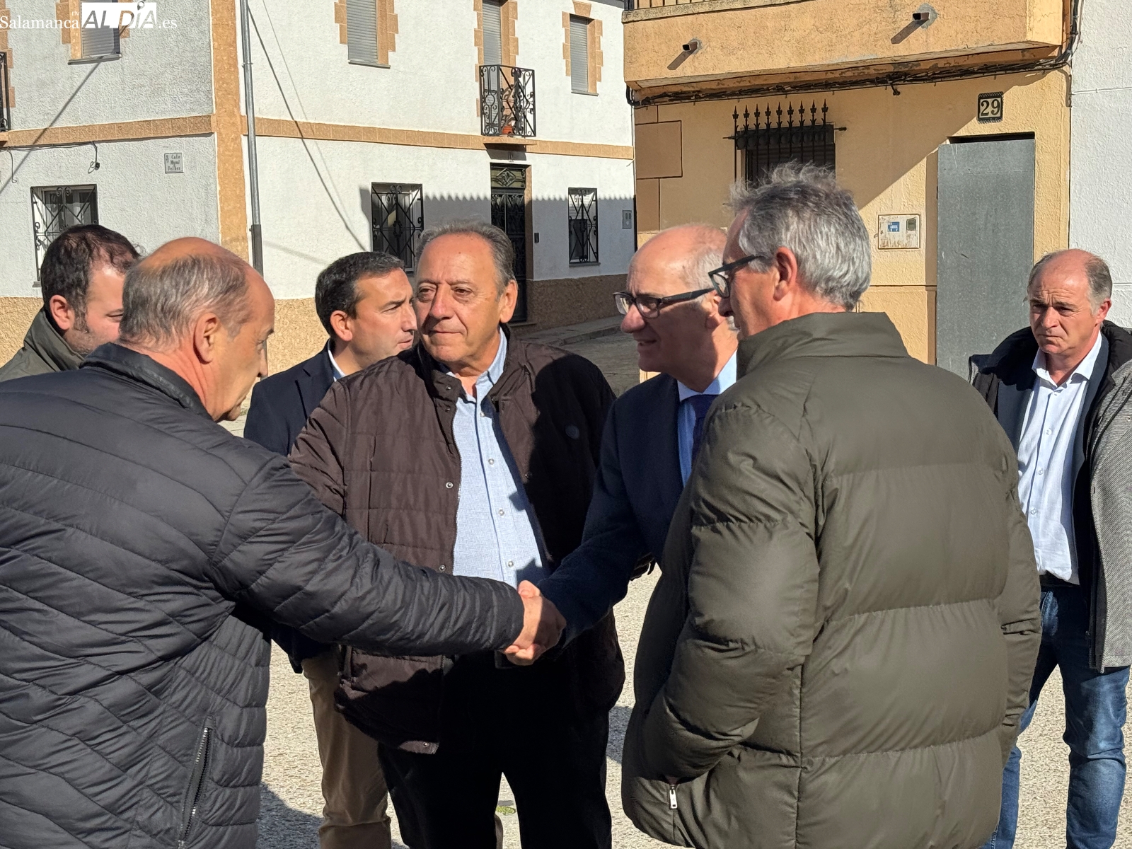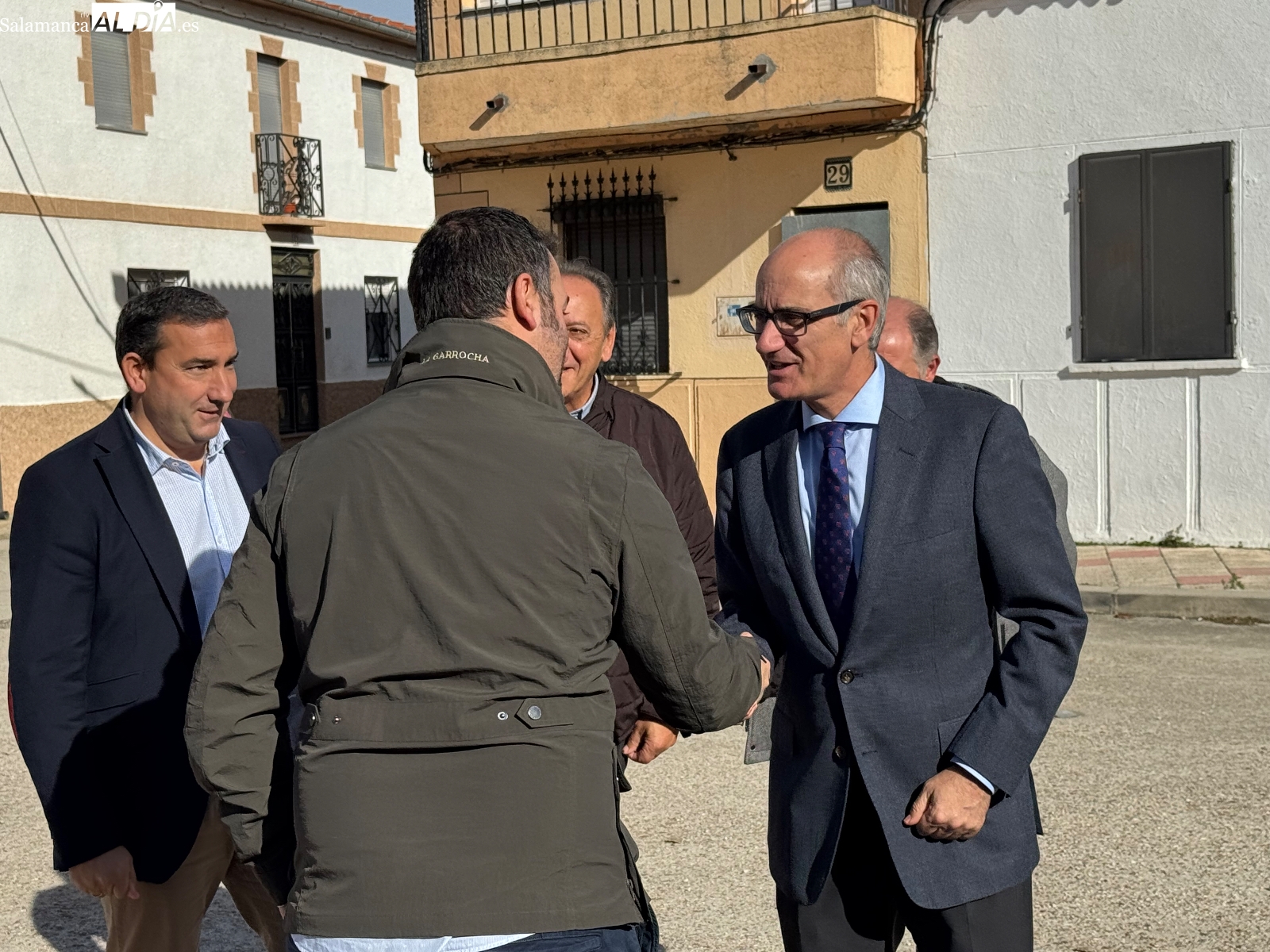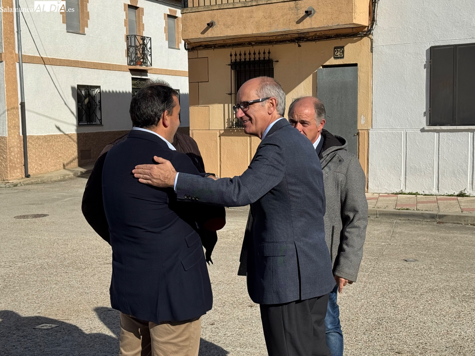 El delegado territorial de la Junta de Castilla y León en Salamanca, Eloy Ruiz, y el presidente de la Diputación de Salamanca, Javier Iglesias, junto al alcalde Benjamín Madrid, han visitado hoy a las integrantes y el equipo docente