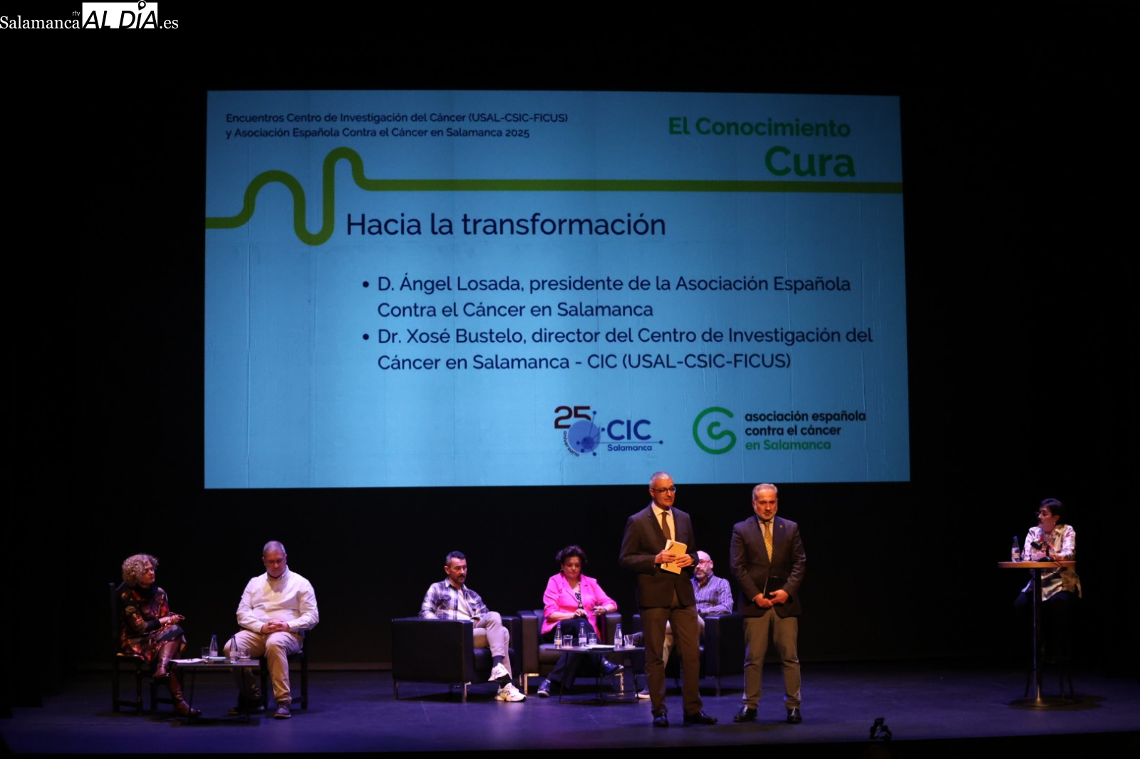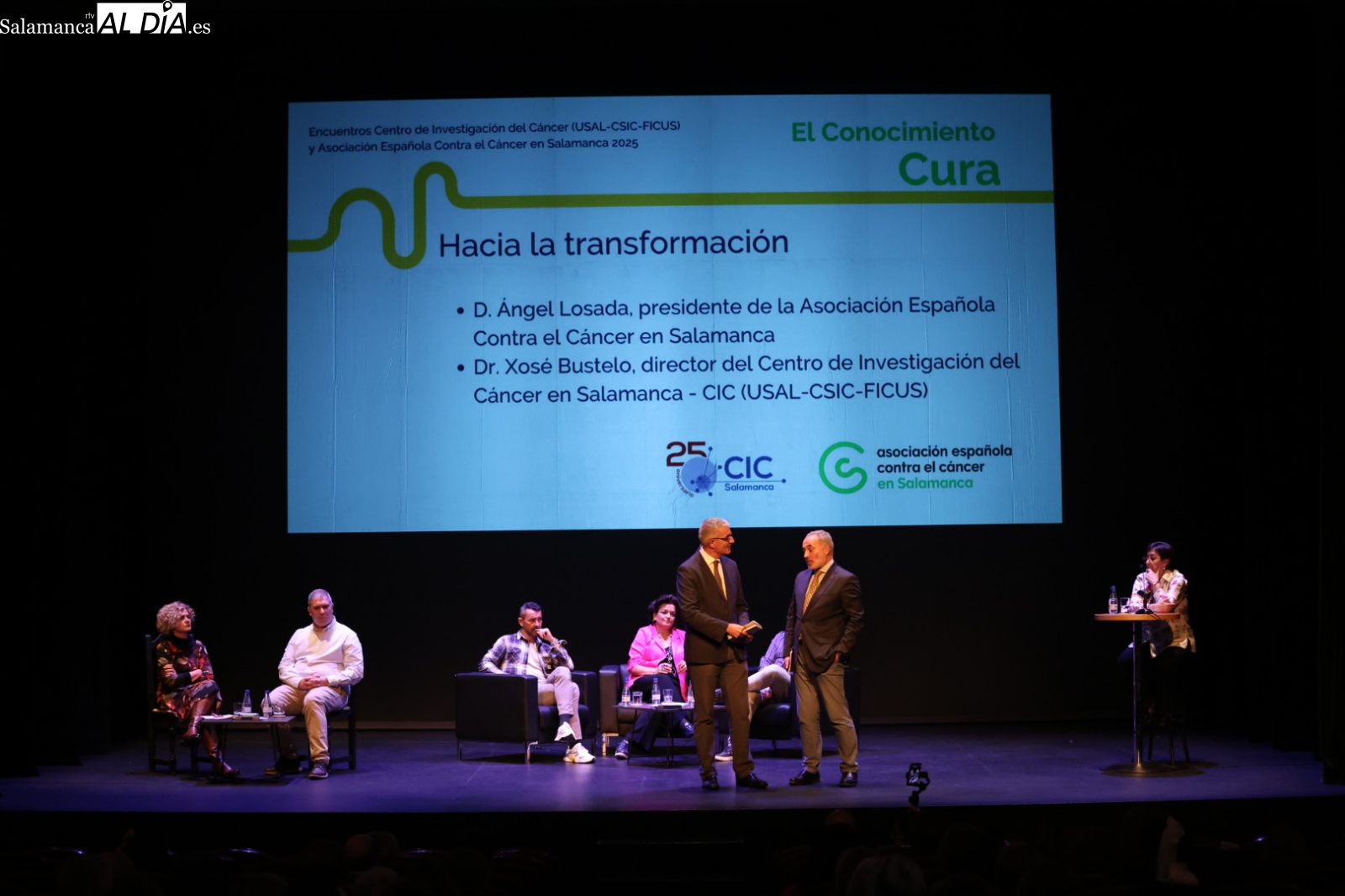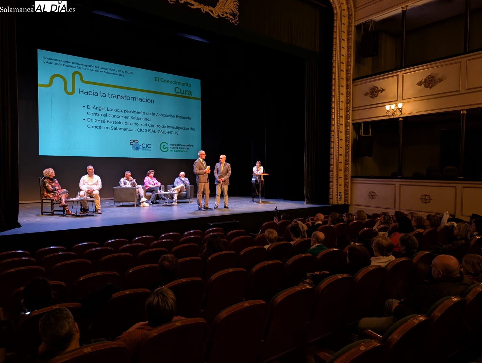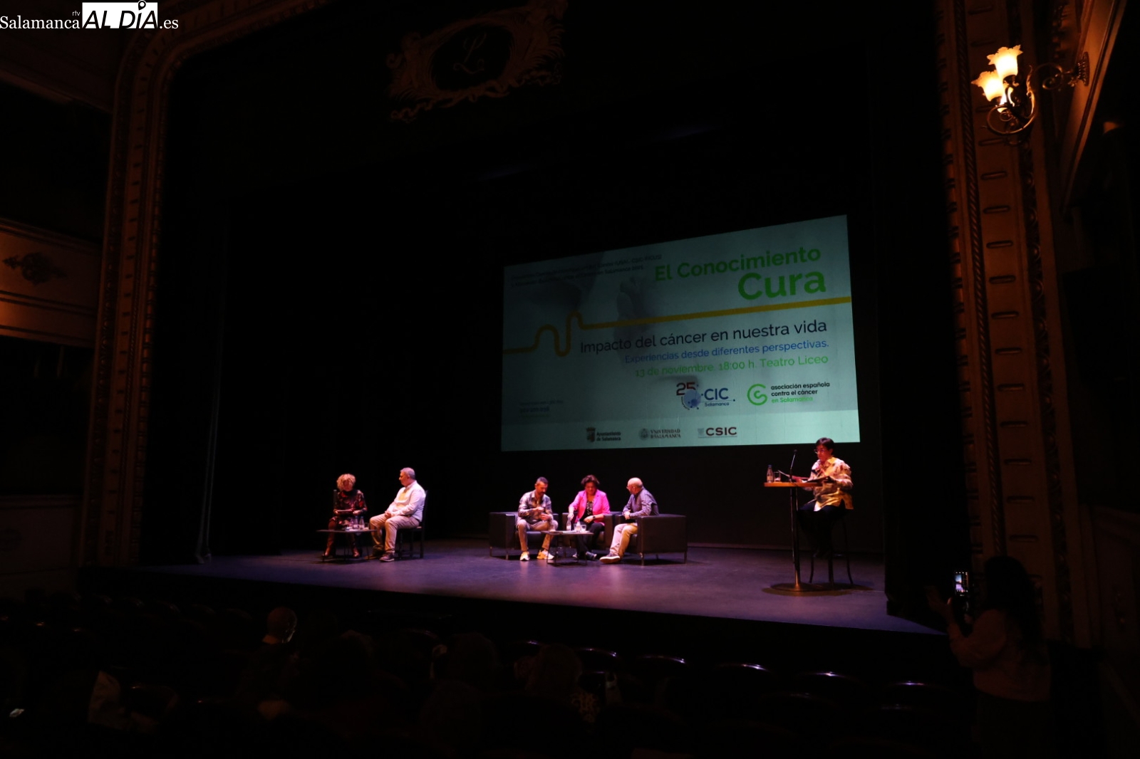 El Teatro Liceo ha acogido esta tarde la última charla del ciclo "El Conocimiento Cura", una iniciativa organizada por la Asociación Española Contra el Cáncer en Salamanca y el Centro de Investigación del Cáncer (CSIC-USAL-FICUS). El encuentro, que ha contado con el apoyo del Ayuntamiento de Salamanca, ha buscado ofrecer una visión integral sobre cómo la enfermedad afecta a la vida de las personas.
