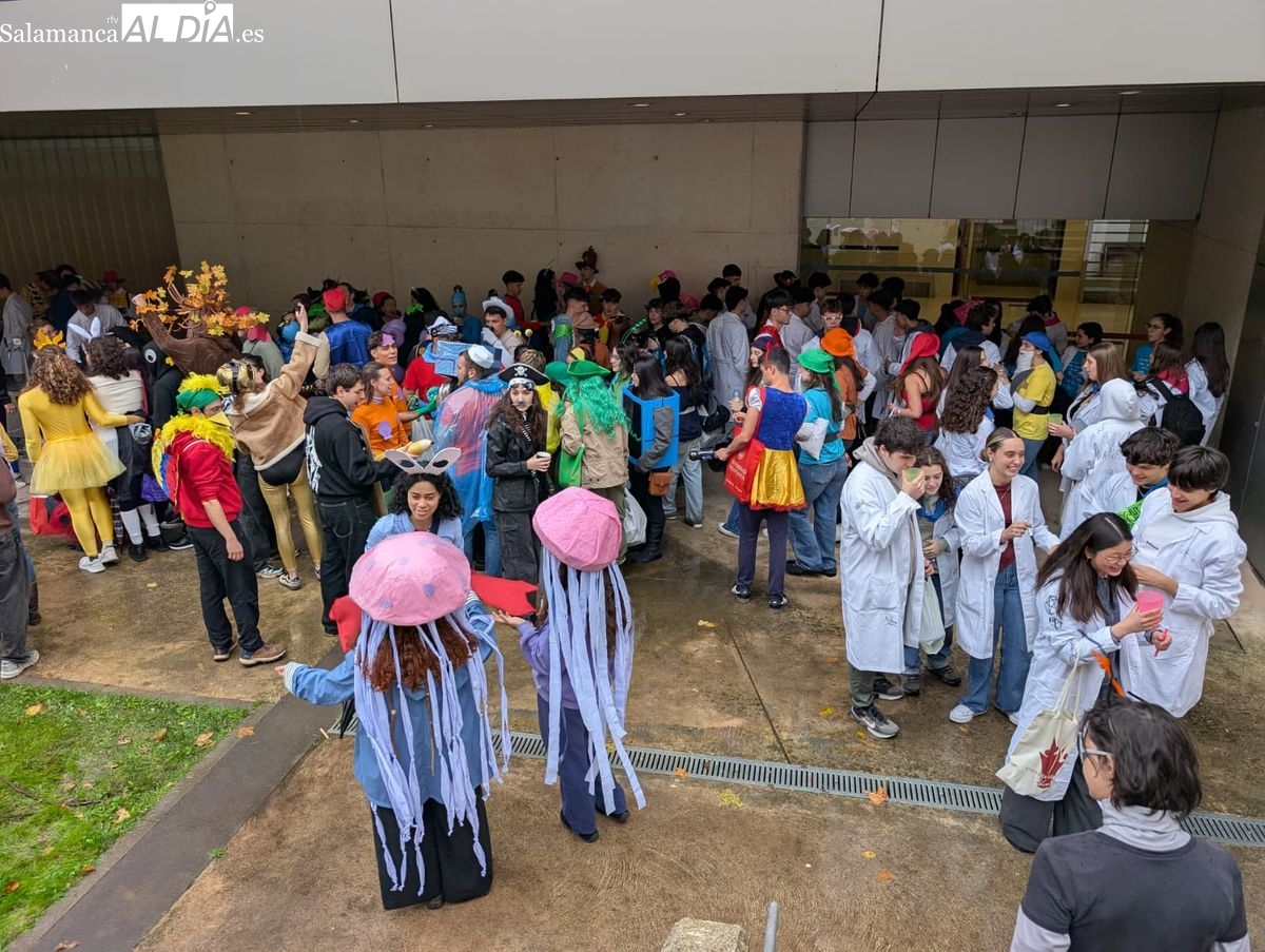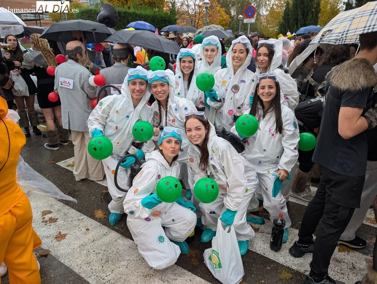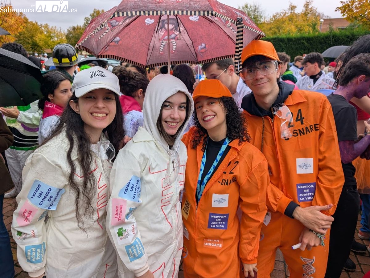 Ni la lluvia que está siendo protagonista en Salamanca durante toda la jornada ha impedido que los estudiantes de la Facultad de Ciencias celebraran este jueves, 13 de noviembre, la festividad de su patrón, San Alberto. Como es tradición, los universitarios han tomado las calles del centro de la ciudad para disfrutar de una de las citas festivas más esperadas del calendario académico.