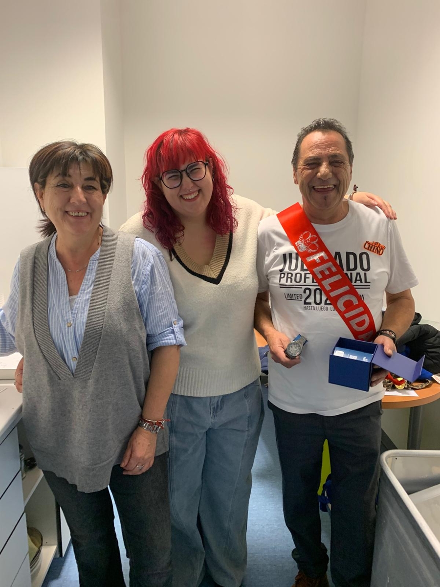 "Hoy se jubiló un gran profesional y gran persona. Fontanero de mantenimiento del hospital. Hoy día 14 de noviembre se rindió una merecida despedida de sus compañeros de todos los oficios, jefes, etc.", explica Manuel Temprano, subrayando la amplia representación del equipo en el acto.