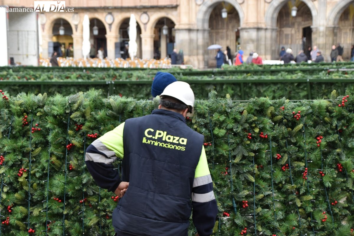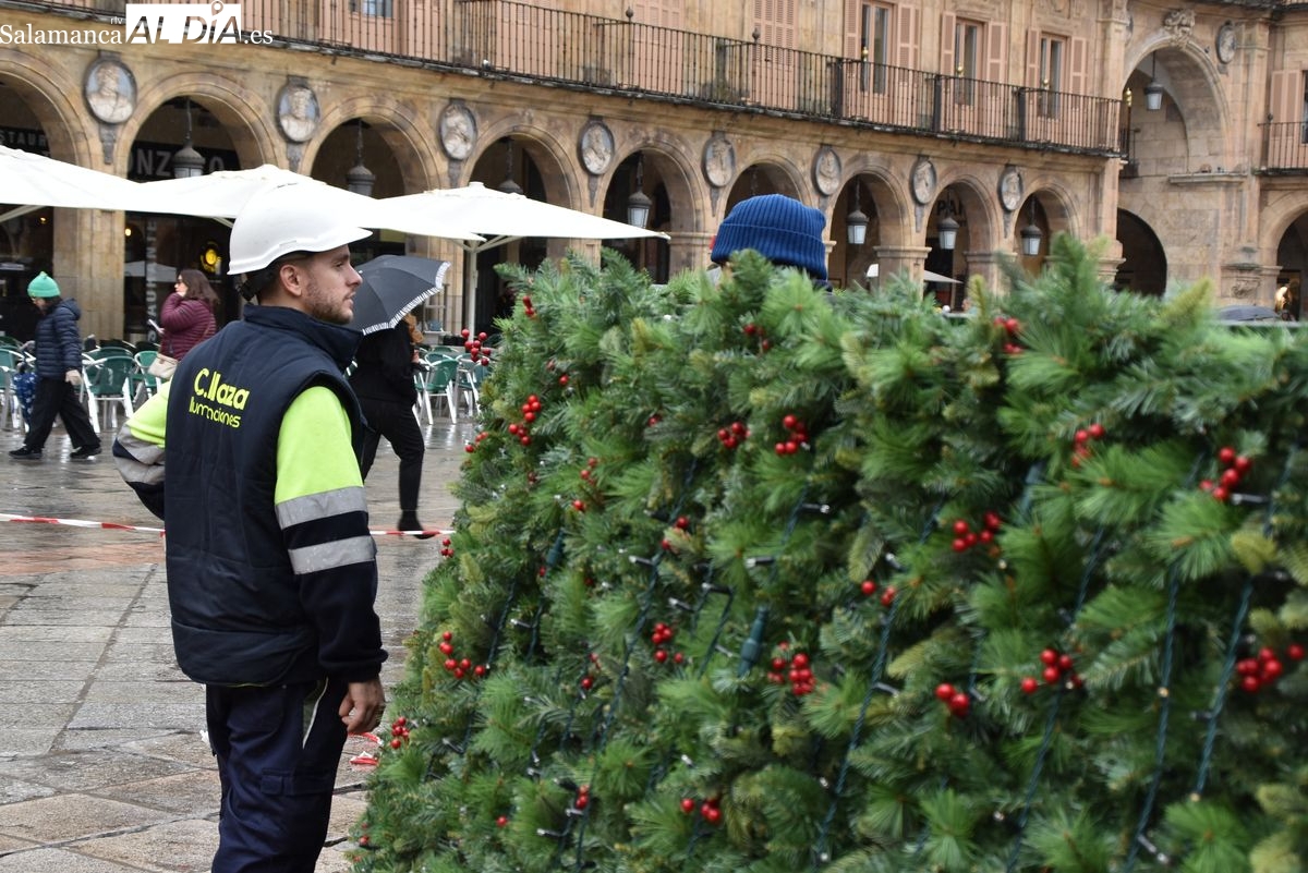 Este lunes han dado comienzo los trabajos de montaje del abeto que decorará el ágora salmantina por segundo año consecutivo.