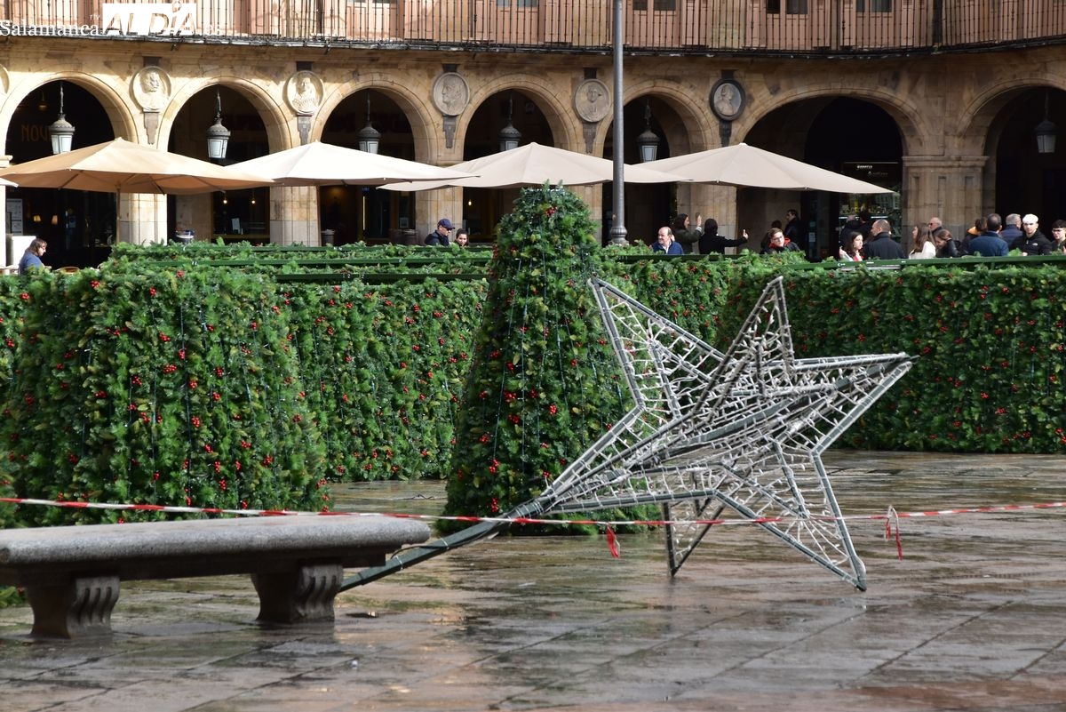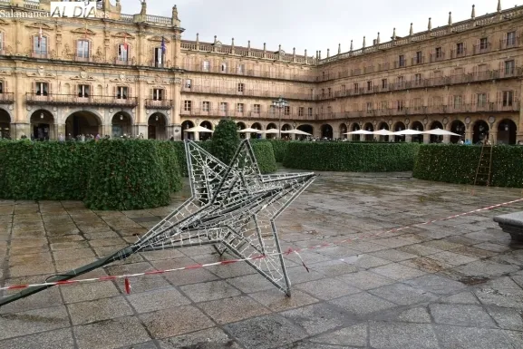 Con las calles de Salamanca engalanadas con las tradicionales luces y adornos navideños a la espera de su encendido el próximo jueves 27 de noviembre, solo faltaba la llegada del gran árbol de Navidad en la Plaza Mayor. Para sorpresa de los transehúntes, a primera hora de este lunes ha comenzado la descarga y montaje de los anillos que darán forma al abeto que se ubicará por segundo año consecutivo en el centro del ágora charra.