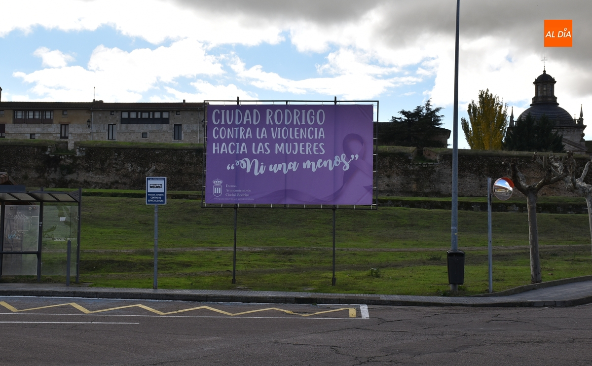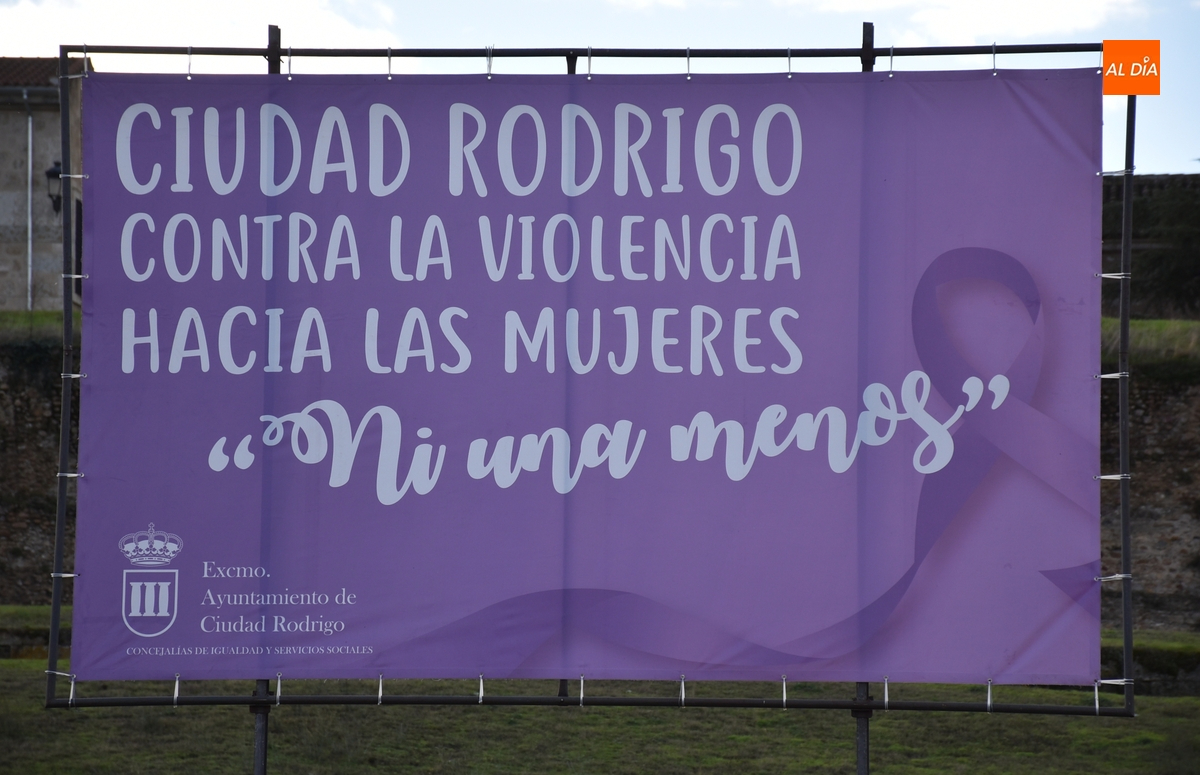 Como todos los años por estas fechas, la confluencia de las avenidas de Sefarad y Yurramendi de Ciudad Rodrigo alberga desde hace unos días la tradicional pancarta de color morado con la cual la ciudad grita ‘Ni una menos’ ante la violencia hacia las mujeres.