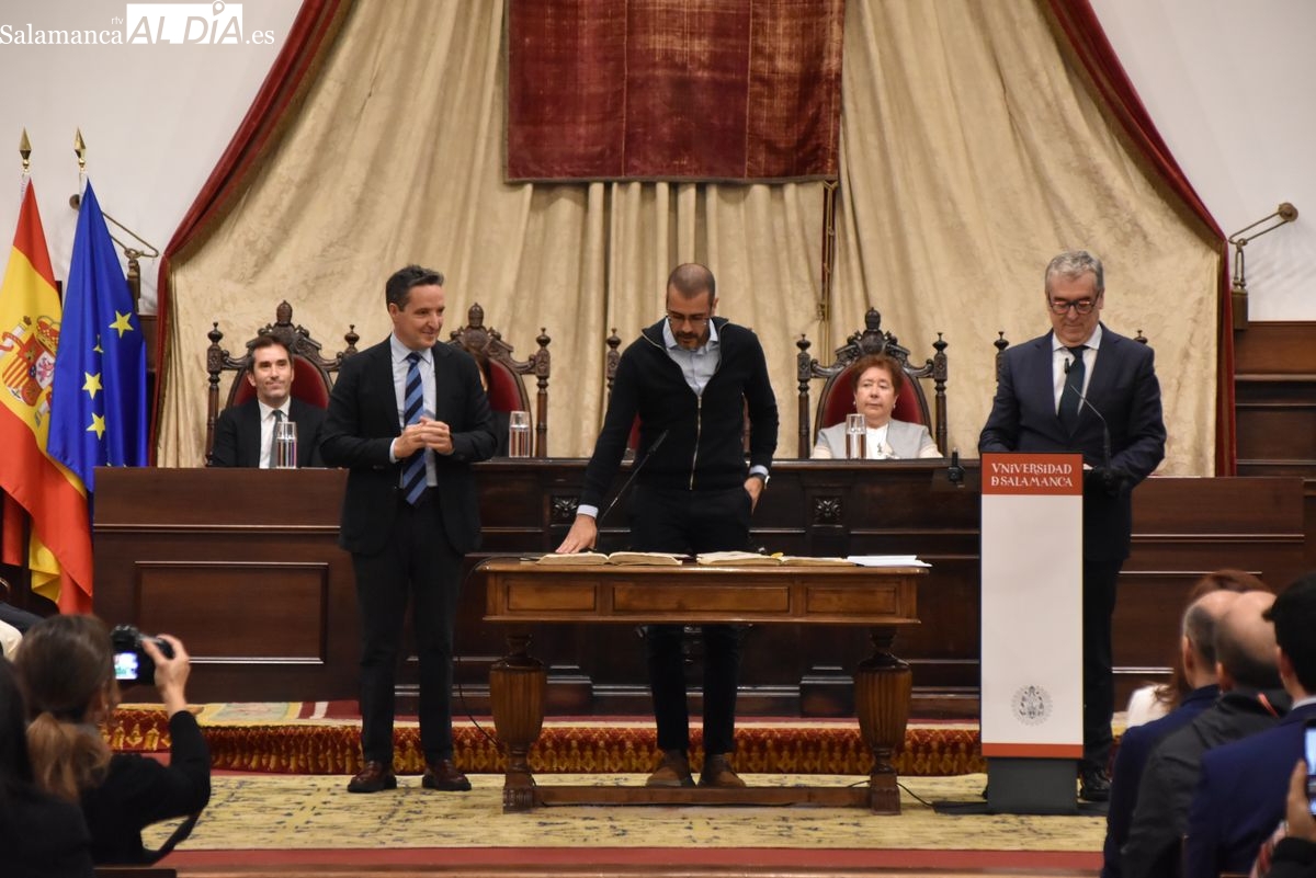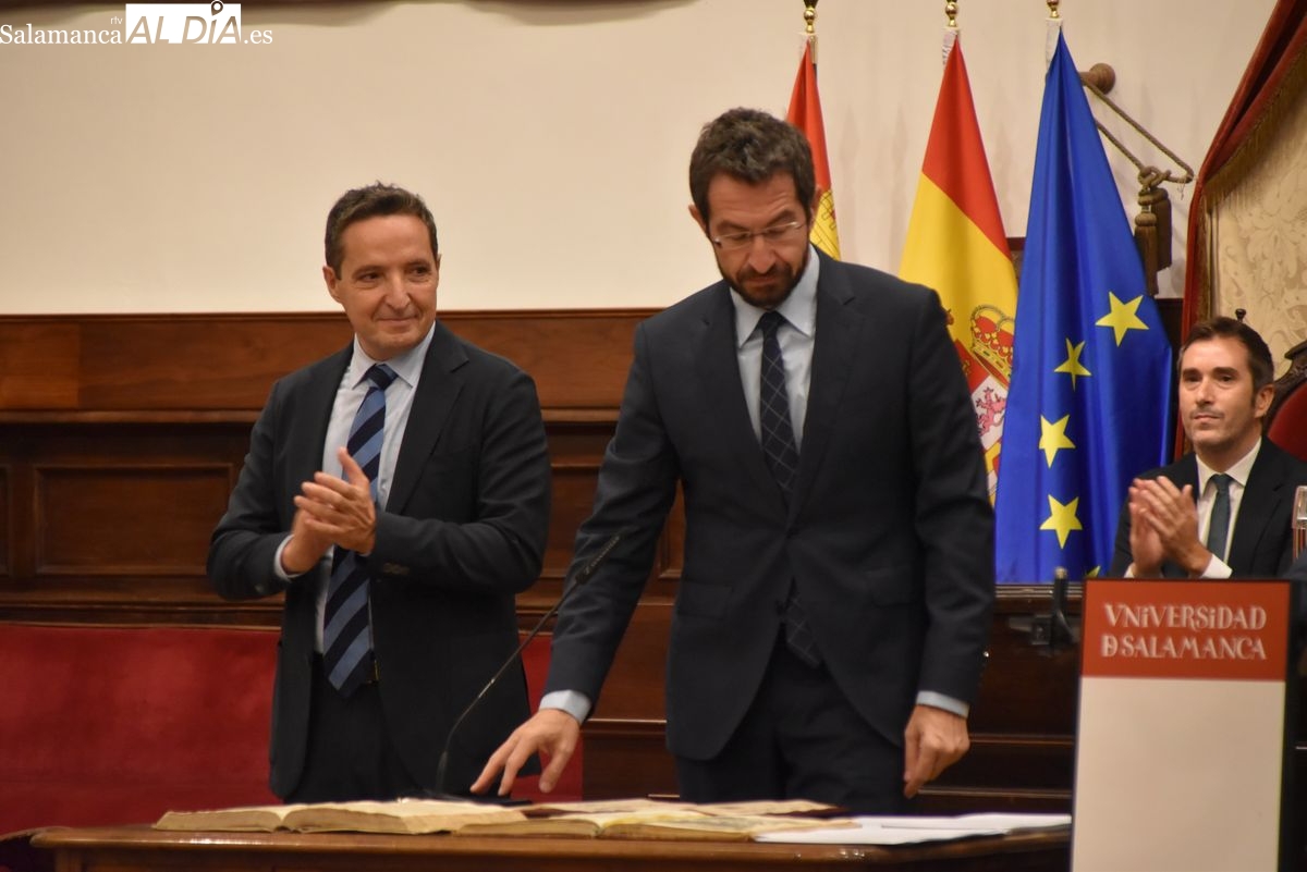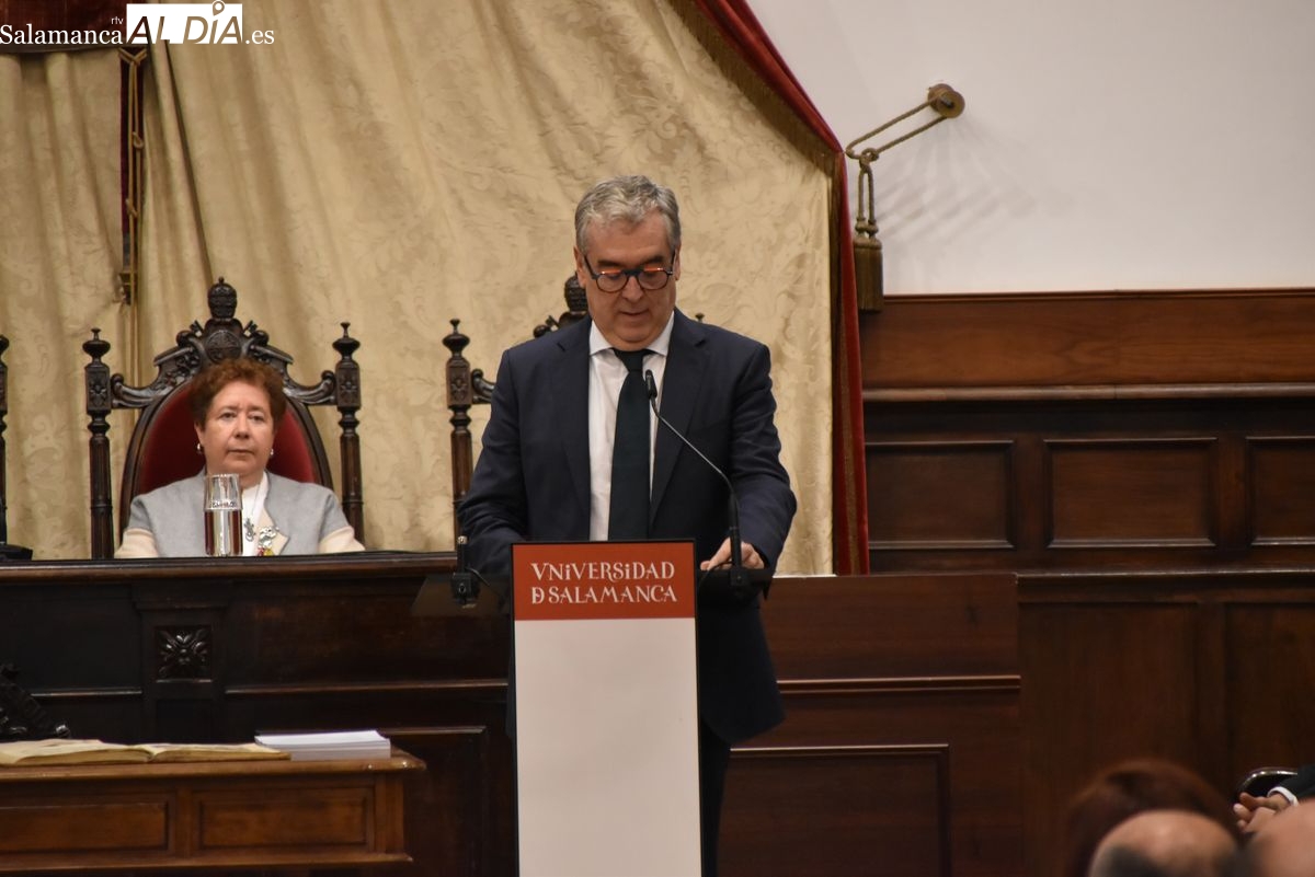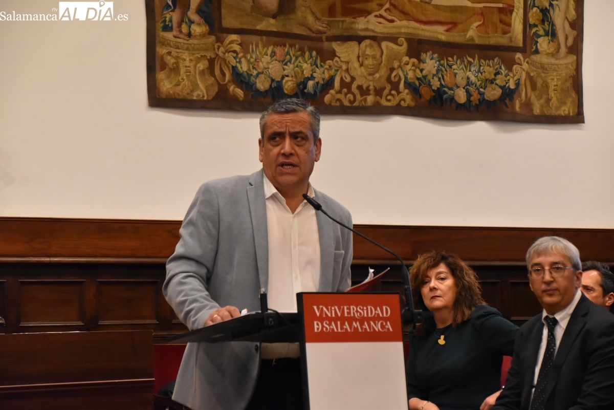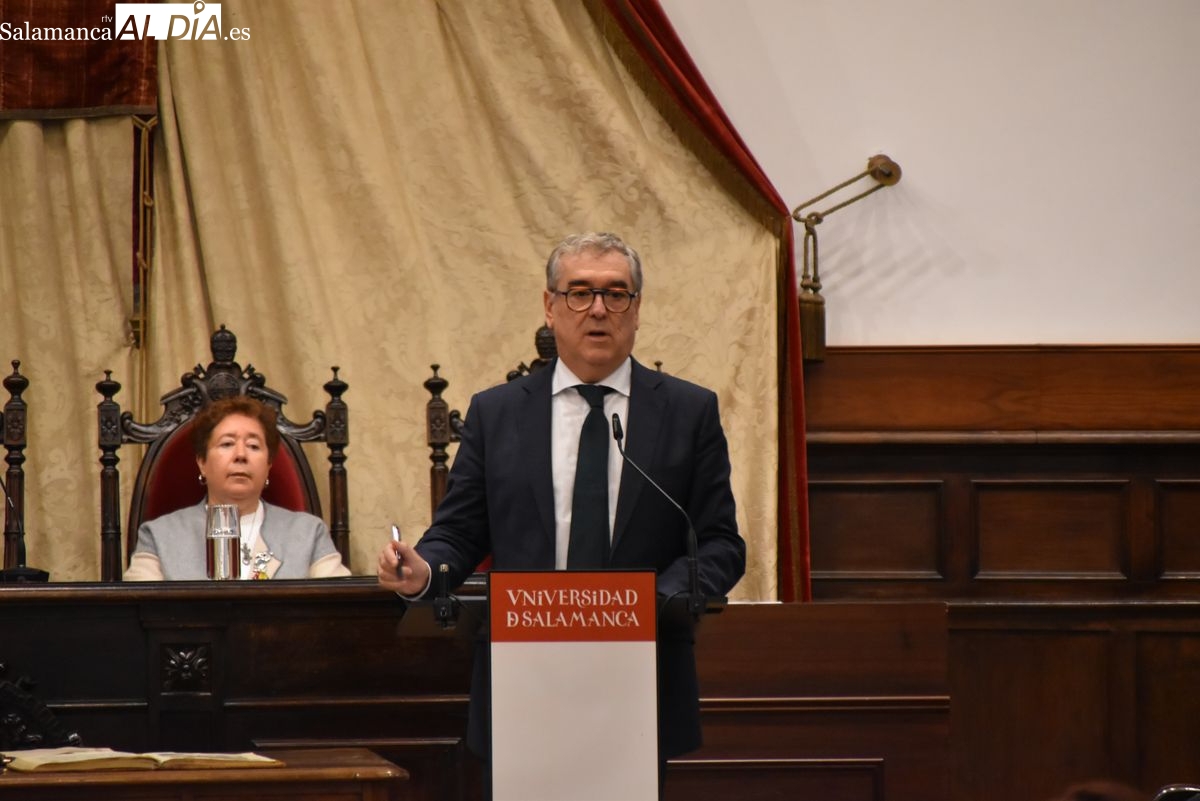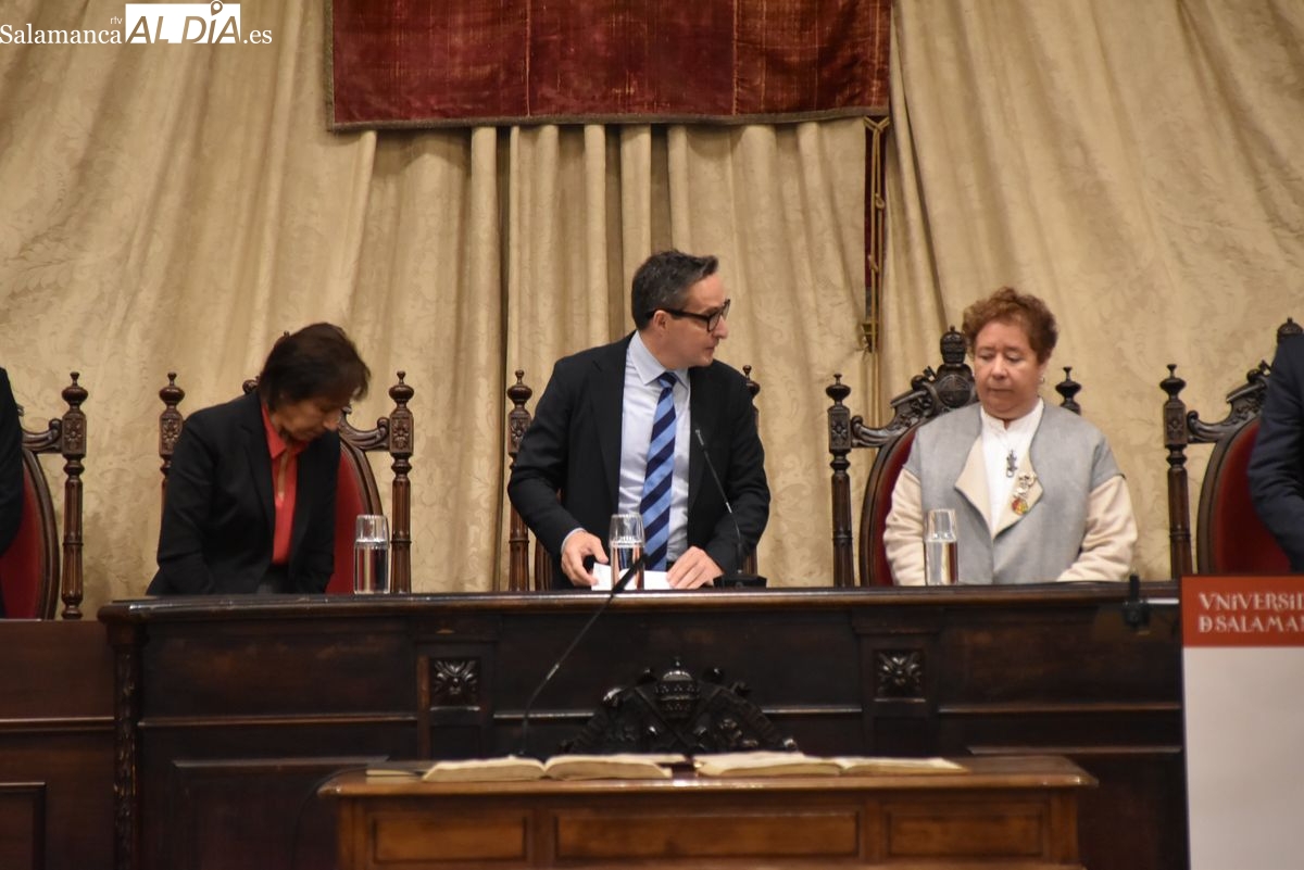 El acto solemne ha contado con la presencia, además del rector, de la vicerrectora de Ordenación académica y Profesorado, Rosario Arévalo; el vicerrector de Transferencia, Innovación y Emprendimiento, Federico Bueno de Mata; la vicerrectora de Cultura, Patrimonio, Sostenibilidad y Desarrollo de Campus, Matilde Olarte; y el secretario general, Alfredo Ávila de la Torre.