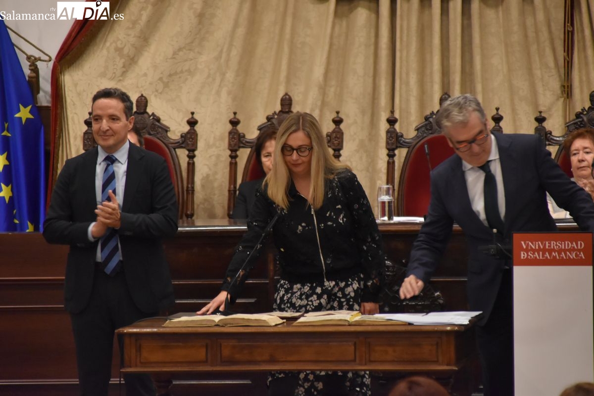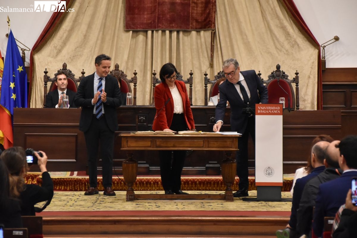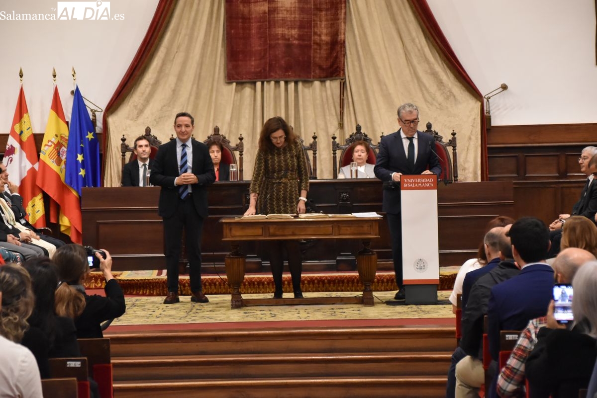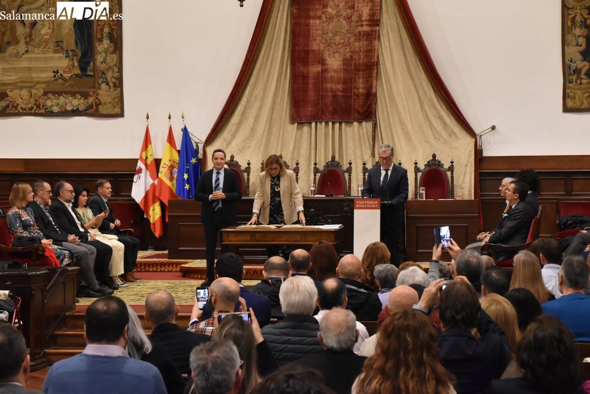El acto también ha servido para formalizar el nombramiento de 69 nuevos catedráticos y catedráticas de la Universidad de Salamanca, reforzando la excelencia docente e investigadora en múltiples áreas de conocimiento.