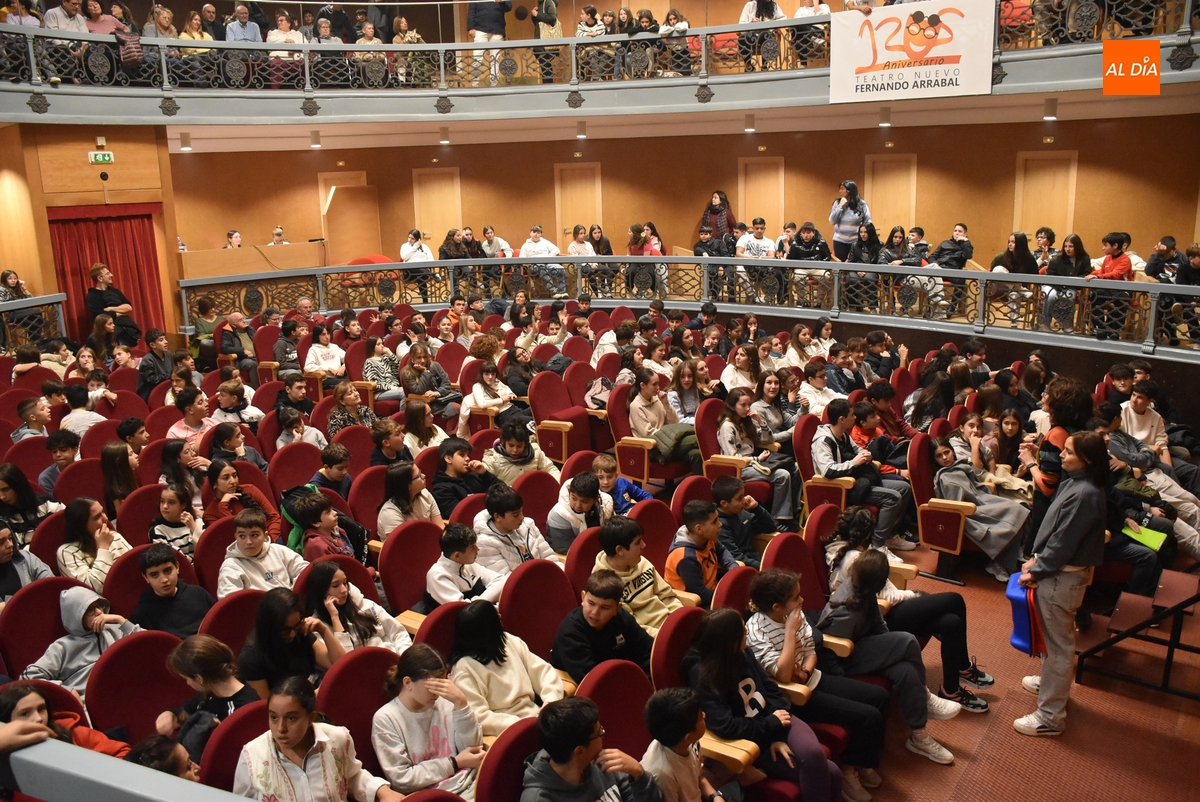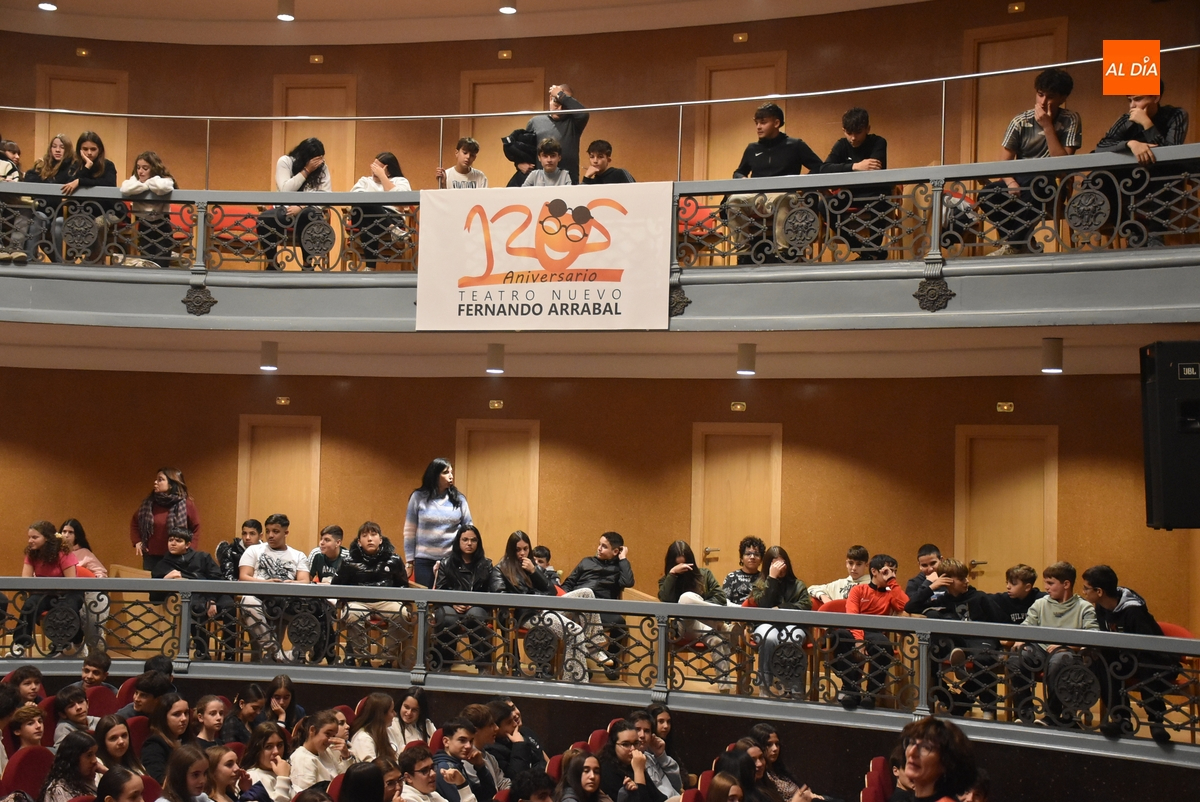 El Teatro Nuevo Fernando Arrabal de Ciudad Rodrigo abrió sus puertas en la mañana del martes a escolares de Educación Secundaria en el marco de la vertiente de la Escuela Rural de Espectadores del V Festival Familiar de Teatro Provincia a Escena promovido por la Diputación de Salamanca y coordinado por Civitas Animación Teatral.
