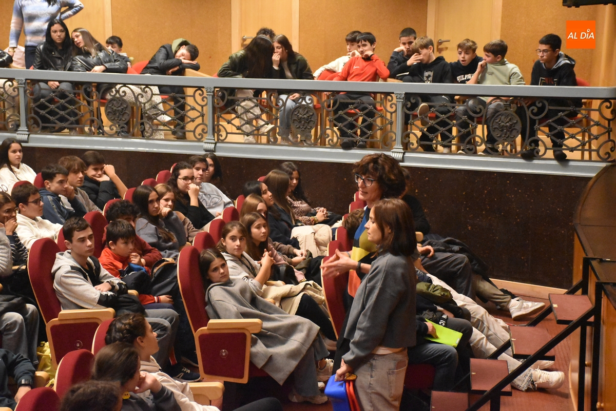 Al Teatro se acercaron concretamente alumnos de 1º y 2º de la ESO de los IES Tierra de Ciudad Rodrigo, Fray Diego Tadeo y Campo Charro de La Fuente de San Esteban, y del Colegio Misioneras de la Providencia-Santa Teresa de Ciudad Rodrigo, así como alumnos y profesores del Centro de Educación de Personas Adultas José Tomás de Mazarrasa.