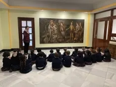 Además de los actos litúrgicos, la programación ha incluido un gesto de especial simbolismo histórico para la congregación. Los distintos grupos de alumnos han visitado el cuadro que representa el sueño de Joaquín Alonso, fundador de la congregación de las Misioneras de la Providencia.