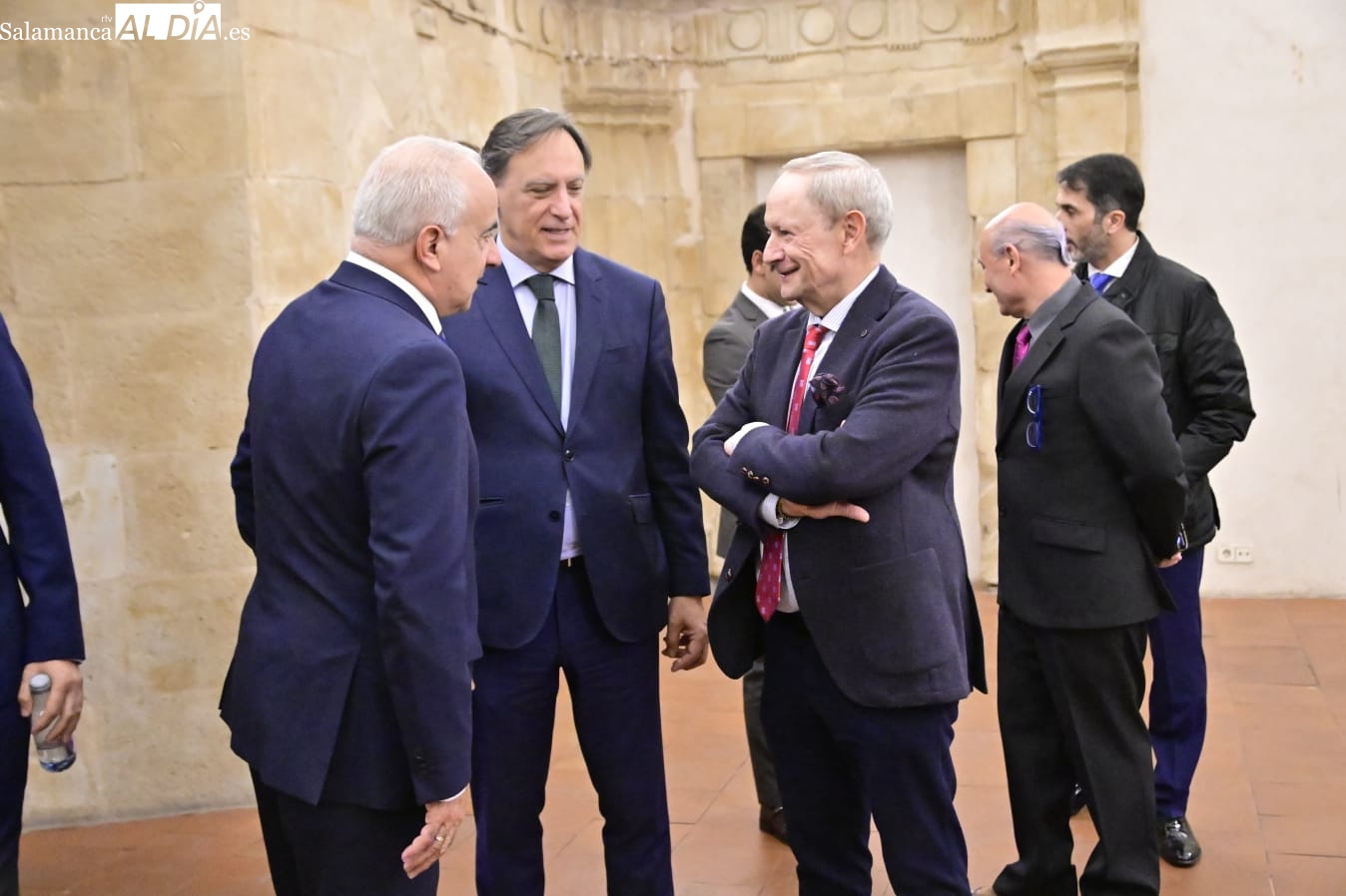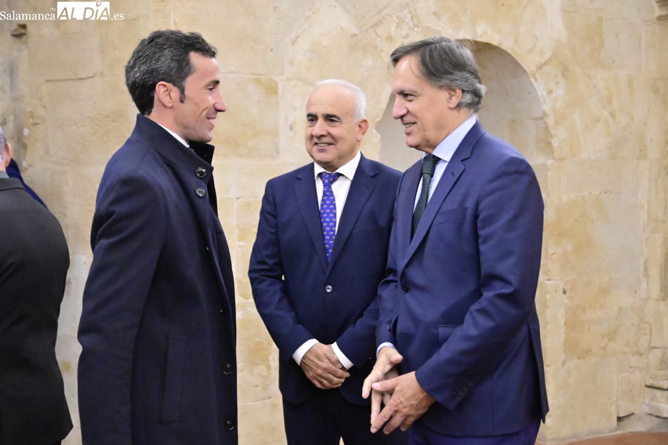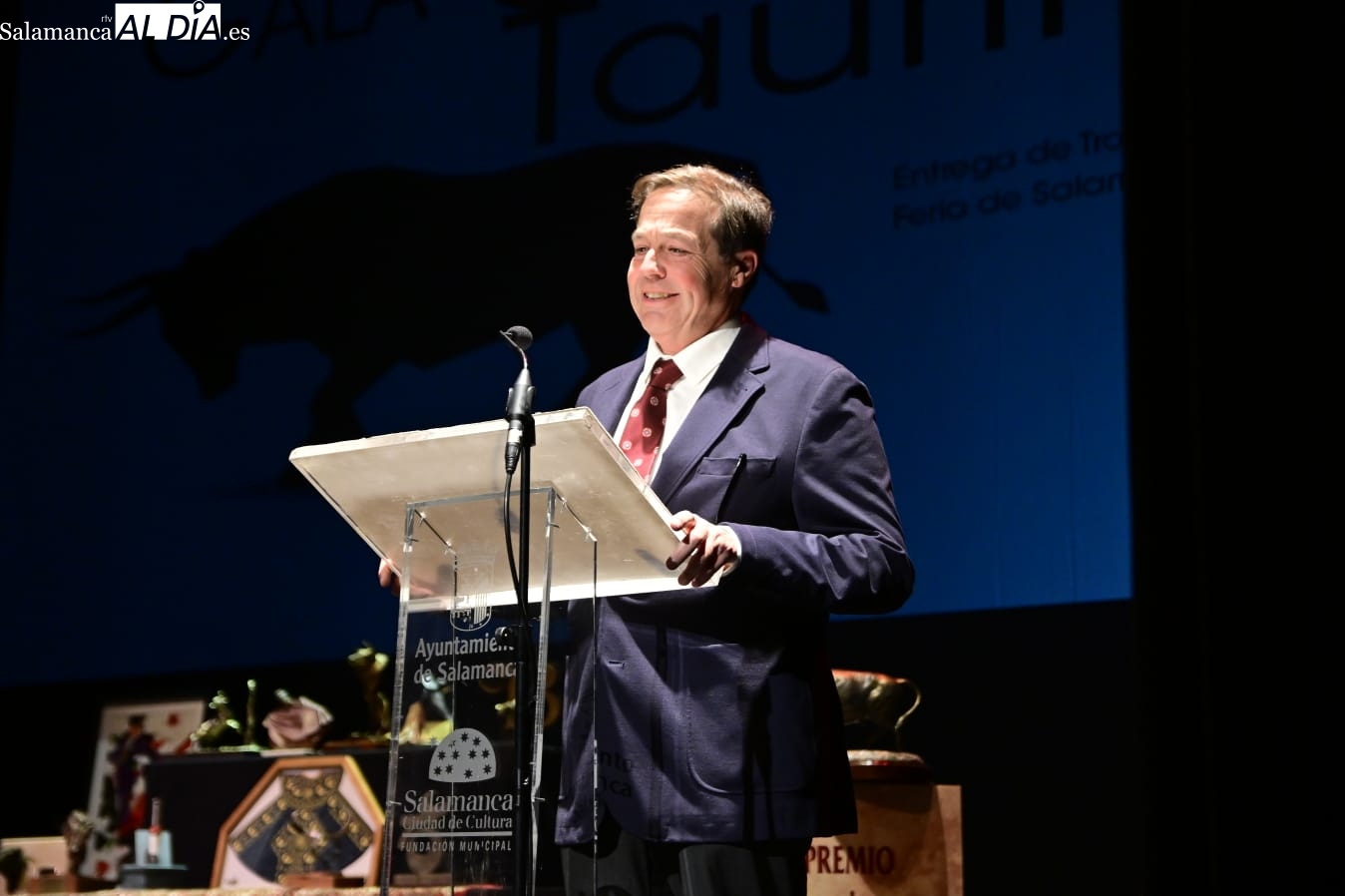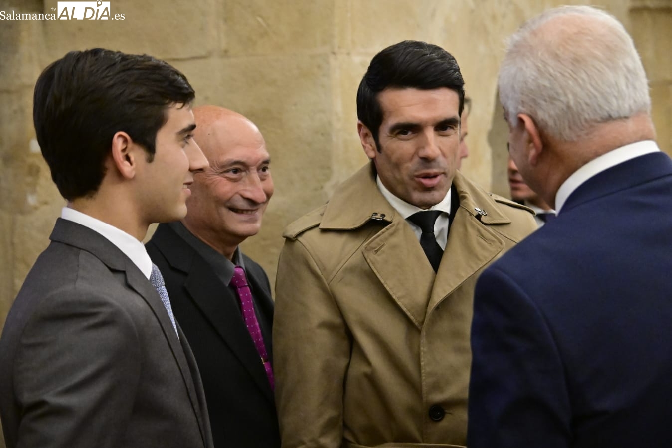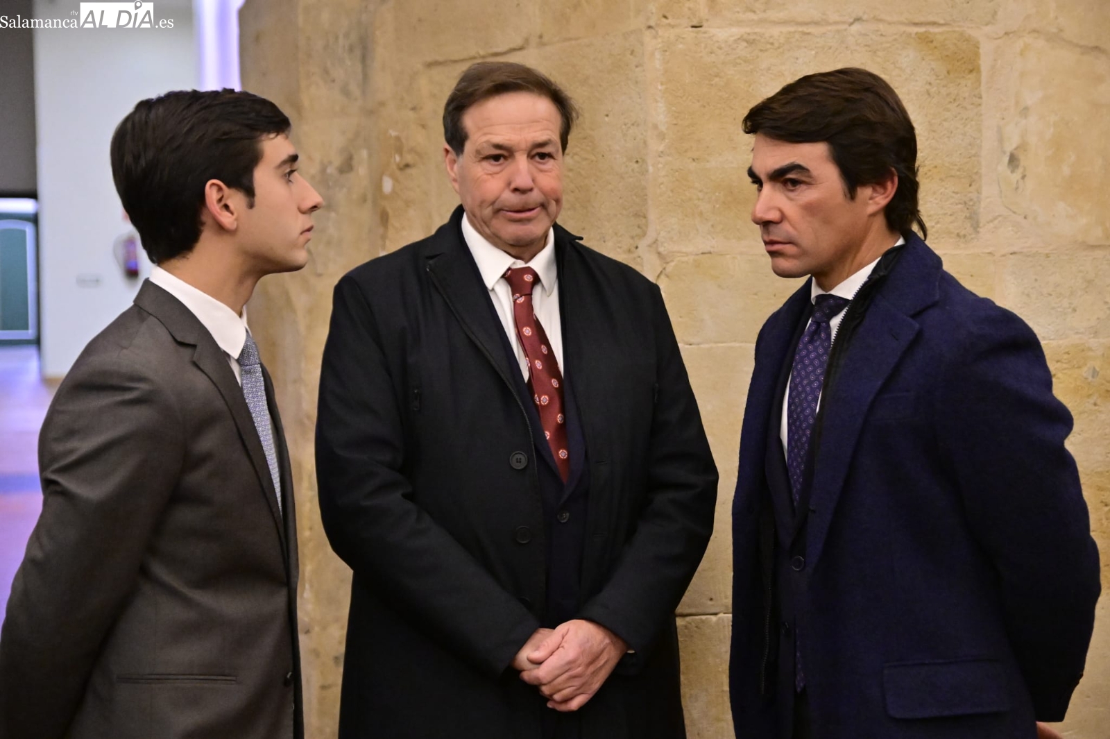 El extremeño Emilio de Justo fue el gran protagonista de la Gala Cultural Taurina al recibir de manos del alcalde de Salamanca, Carlos García Carbayo, el XXVIII premio a la mejor faena de la pasada Feria Taurina de la Virgen de la Vega 2025 otorgado por el Ayuntamiento de Salamanca. La histórica faena del cacereño el pasado 14 de septiembre al toro 'Buenasuerte' de Garcigrande fue distinguida por unanimidad por el jurado calificador. También la divisa salmantina fue galardonada por parte de la Peña Cultural Taurina Salmantina con el LIX trofeo al toro más bravo de la feria y su mayoral, Gonzalo Sepúlveda, también obtuvo un reconocimiento como mayoral de la ganadería que obtuvo el Toro de Oro.