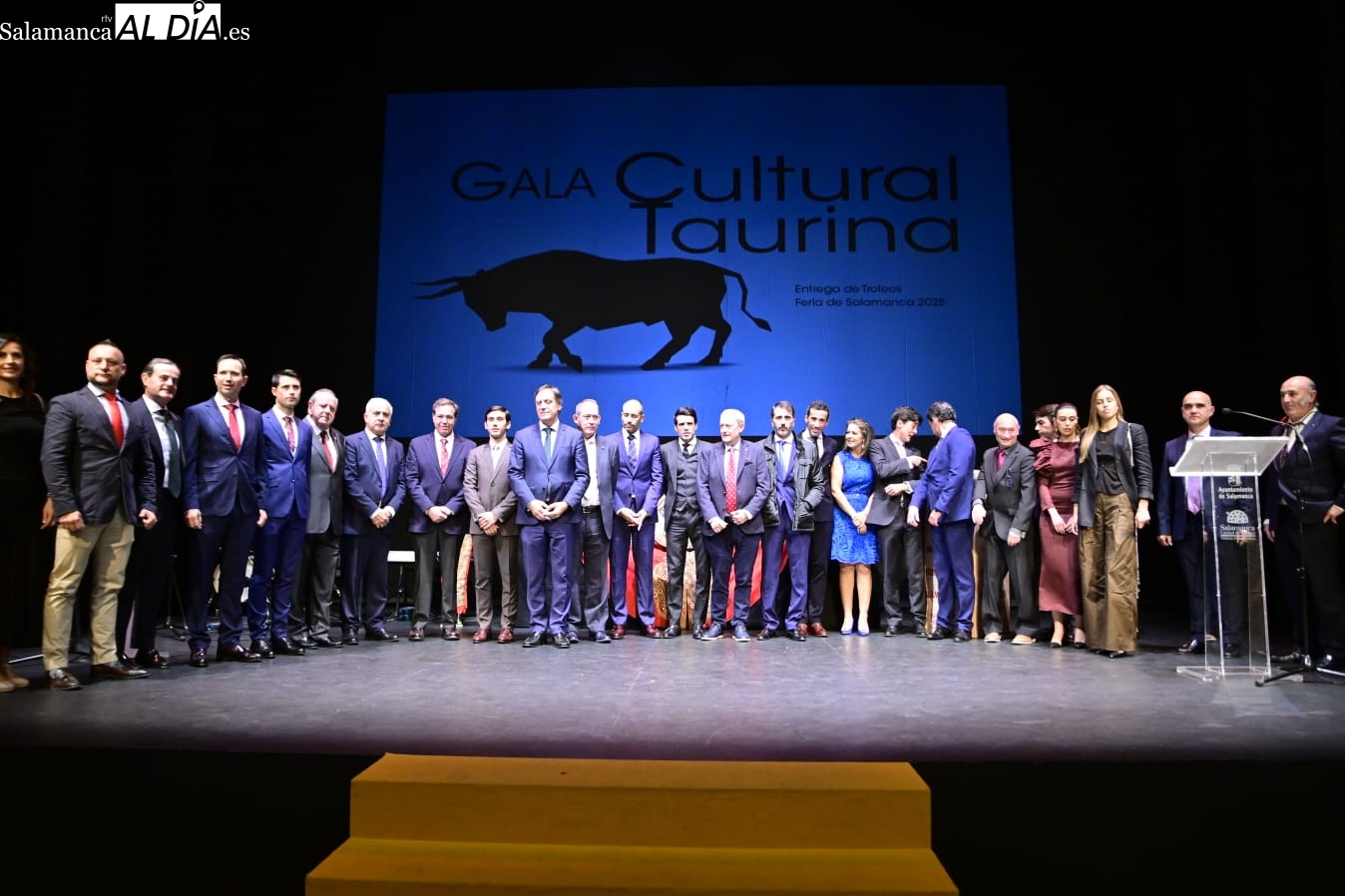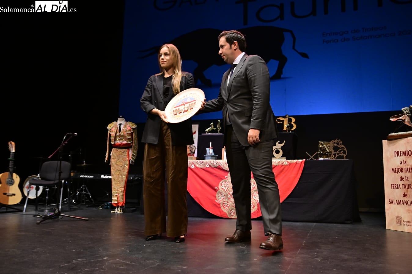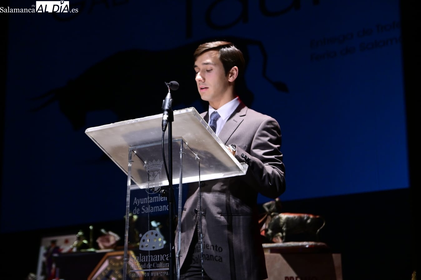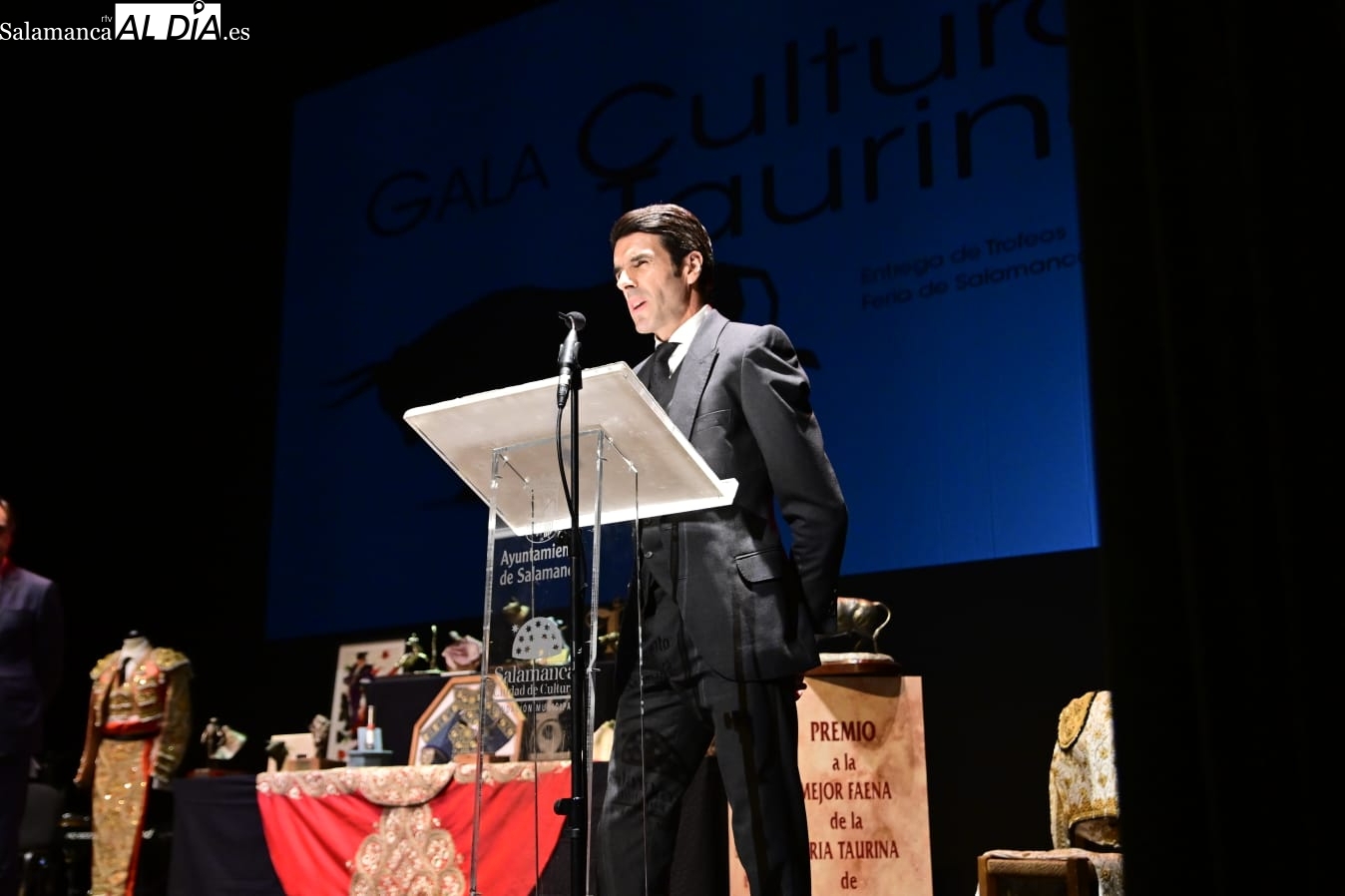 Los grandes ausentes en la Gala Cultural Taurina, que estuvo amenizada por David Roda, fueron Morante de la Puebla, que fue premiado con el XXXVIII trofeo al mejor quite artístico o de riesgo otorgado por la Peña Cultural Taurina Salmantina y patrocinado por la Escuela de Tauromaquia de la Diputación de Salamanca, y con el IX trofeo 'Los naturales de La Glorieta' que concede la Peña Taurina Alejandro Marcos; Juan Ortega, premiado con el XI trofeo al mejor toreo de capote, patrocinado por Casa Conrado; y el local Marco Pérez, que fue distinguido con el IX trofeo a la pincelada de la feria patrocinado por Luz Innovación.