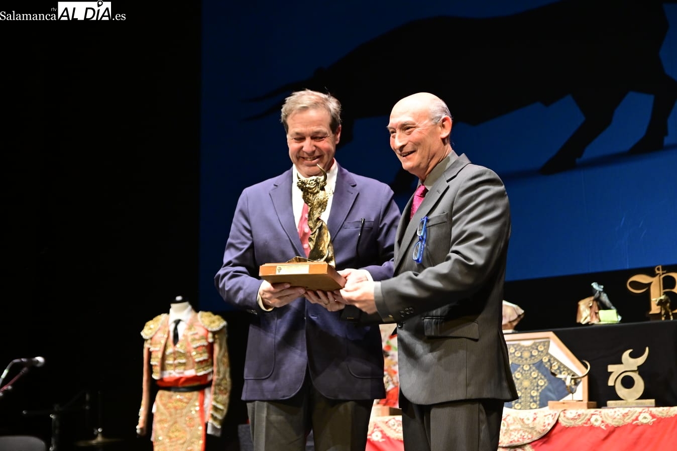 Uno de los momentos más emotivos tuvo lugar cuando Domingo López Chaves, Pedro Gutiérrez Lorenzo 'El Capea' y Javier Castaño (que también fue premiado por Juventud Taurina de Salamanca con el X trofeo a los valores del toreo) recogieron la placa al mérito taurino otorgada por la Federación de Peñas Taurinas 'Helmántica' tras tres trayectorias dignas de mención. El pregonero de la gala, el periodista Carlos Martín Santoyo, fue condecorado con la medalla a la persona o entidad que se distingue por su defensa y difusión de la fiesta por su labor al frente del programa 'Grana y Oro' de Castilla y León TV.