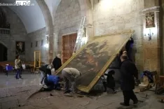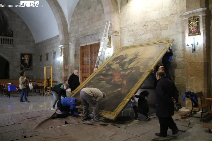 Esta monumental obra, atribuida a Juan Martín Cabezalero, ha sido trasladada desde la iglesia parroquial al teller de Uffizzi en la capital salmantina a Salamanca. La intervención, financiada con 70.000 euros por la Fundación Inés Luna Terrero, durará cuatro meses y buscará confirmar la autoría de este autor del Barroco