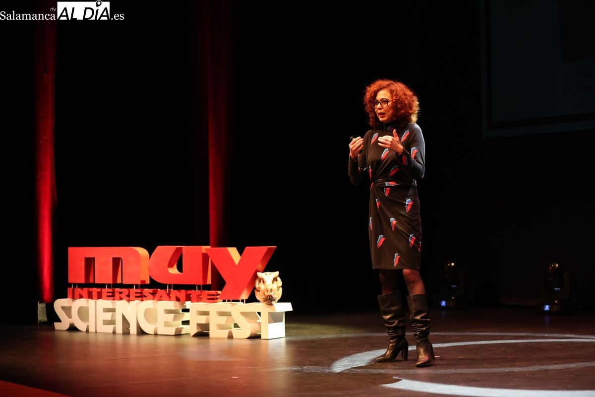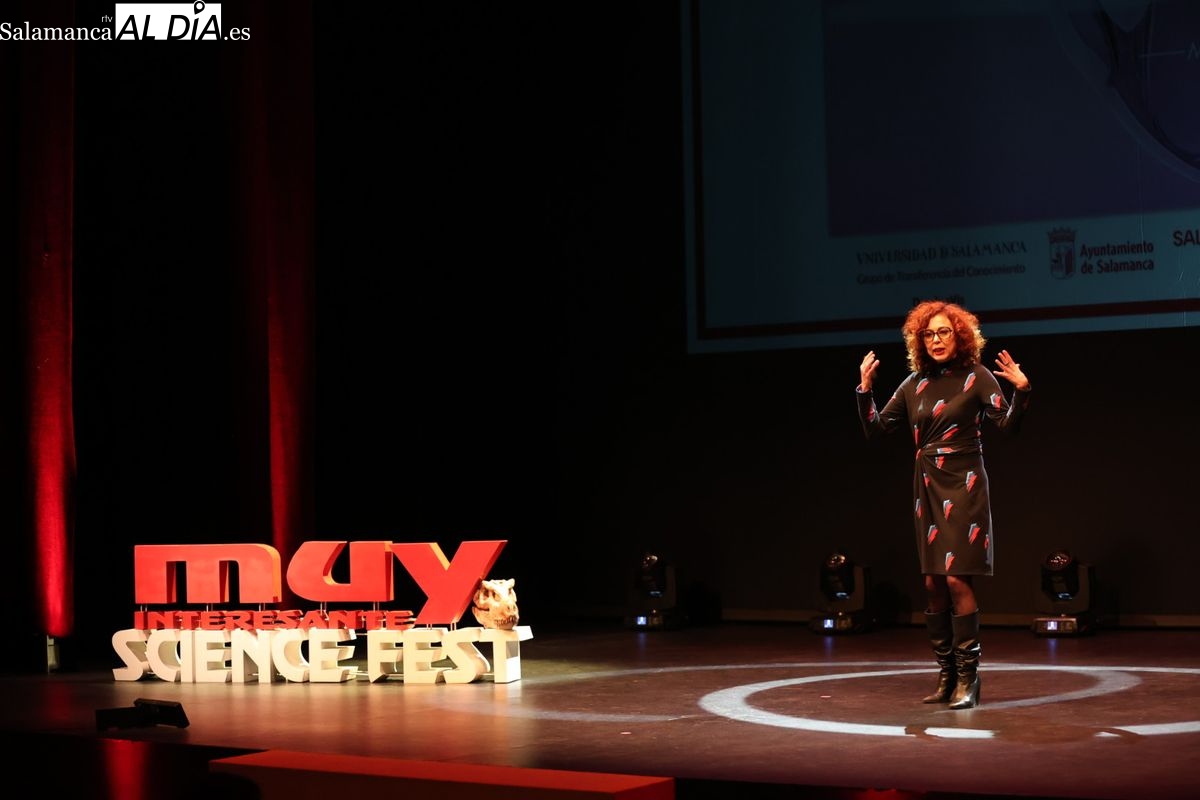 El festival también ha servido de marco para entregar los premios 'Muy Mujeres Científicas'. El momento más emotivo se ha vivido con el reconocimiento a María Victoria Mateos, jefa de la Unidad de Mieloma del Complejo Asistencial Universitario de Salamanca. Mateos, referente internacional en terapias CAR-T, ha recibido el galardón ante el público salmantino.