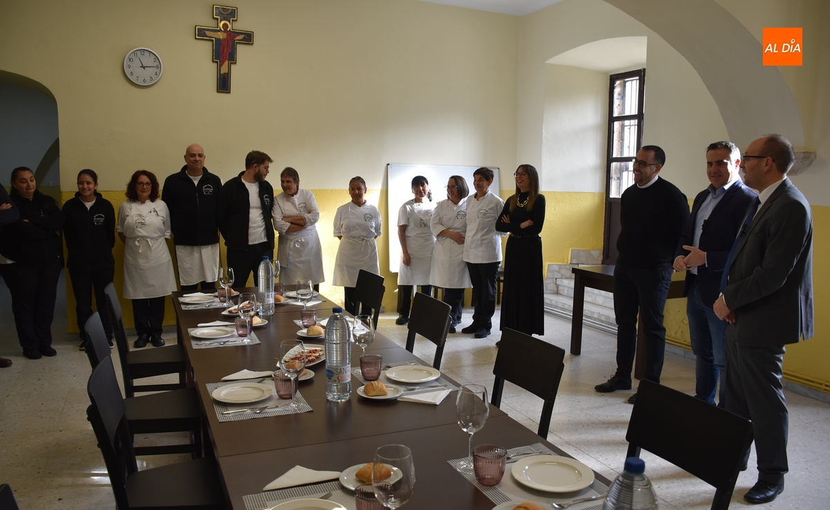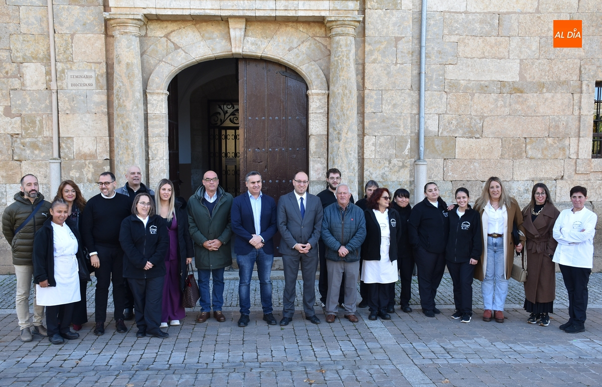 Los alumnos y docentes de la Acción de Alternancia en Formación y Empleo ‘Entre Fogones’ que está llevando a cabo desde el mes de abril la Diputación de Salamanca en Ciudad Rodrigo (con las cocinas del Seminario Diocesano San Cayetano como escenario), recibieron en la mañana del jueves la visita del diputado provincial de Empleo y Desarrollo Rural, Antonio Labrador, del alcalde Marcos Iglesias, de varios ediles de la Corporación Municipal, y del rector del Seminario, Anselmo Matilla.