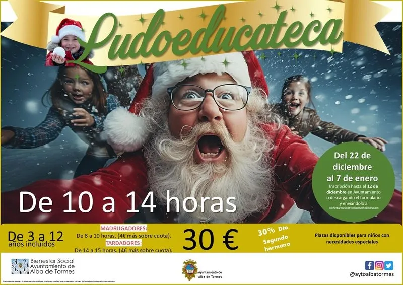 El Ayuntamiento de Alba de Tormes ha anunciado la puesta en marcha de una nueva edición de su ludoeducateca municipal para las próximas vacaciones navideñas. El plazo de inscripción para acceder a este recurso de conciliación familiar se abrirá el próximo lunes, 24 de noviembre, y permanecerá activo hasta el viernes 12 de diciembre.