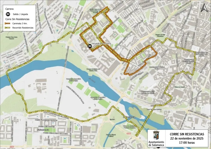 Los conductores que circulen por Salamanca deberán prestar atención a la señalización y a las indicaciones de la Policía Local debido a la celebración de la iniciativa 'Corre sin resistencias'. La prueba, que alcanza su quinta edición, partirá a las 17:00 horas desde la Facultad de Farmacia de la Universidad de Salamanca, momento en el que comenzarán las restricciones más significativas en el entorno del Campus Miguel de Unamuno y el centro de la ciudad.