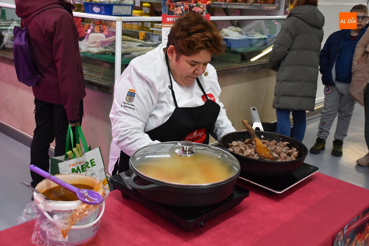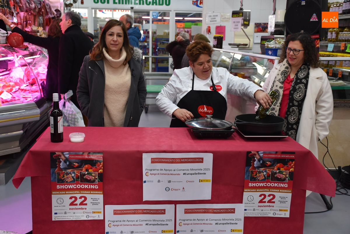 Esta recuperación de los showcookings ha venido de la mano de la Cámara de Comercio de Salamanca, que está promoviendo cocinados en directo en los mercados de la provincia (con financiación del Fondo Europeo de Desarrollo Regional (FEDER) y la Dirección General de Política Comercial), para así ayudar a dinamizar los mercados municipales “como espacio de encuentro, consumo responsable y apoyo al comercio local”, además de ayudar a difundir la gastronomía de la zona, como apuntó Vanesa García, delegada del Mercado de Abastos.