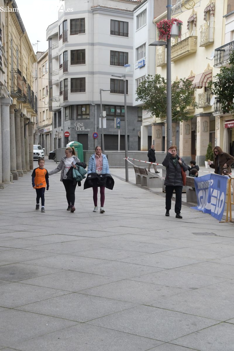 Se ha celebrado una nueva edición del Jamón Veloz de Guijuelo en una gran mañana de atletismo en la plaza mayor de Guijuelo con agradable temperatura y excelente ambiente de competición ayudado por el ya tradicional chocolate con bizcochos con el que se obsequia a participantes y acompañantes.