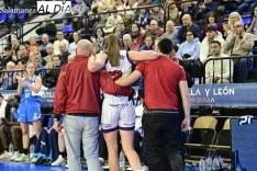 Asimismo, la jugadora serbia se ha retirado del partido por culpa de un problema físico y Würzburg la ha ovacionado por su pasado en Salamanca. De hecho, Montañana y otras compañeras se han acercado a ella para preguntarle qué le ocurría mientras se marchaba por la banda en dirección a su banquillo.
