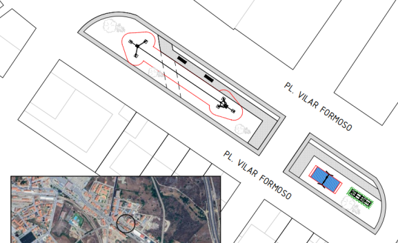 En lo que respecta a la creación del parque, en una zona de la Plaza Vilar Formoso donde ya había juegos infantiles (bastante antiguos), se plantea un suelo con baldosas de caucho sobre las que se desplegará césped artificial, en el que se situarán una tirolina, un columpio (con una siento especial para bebés) y un rocódromo, todo ello con un importe calculado de 50.000€.