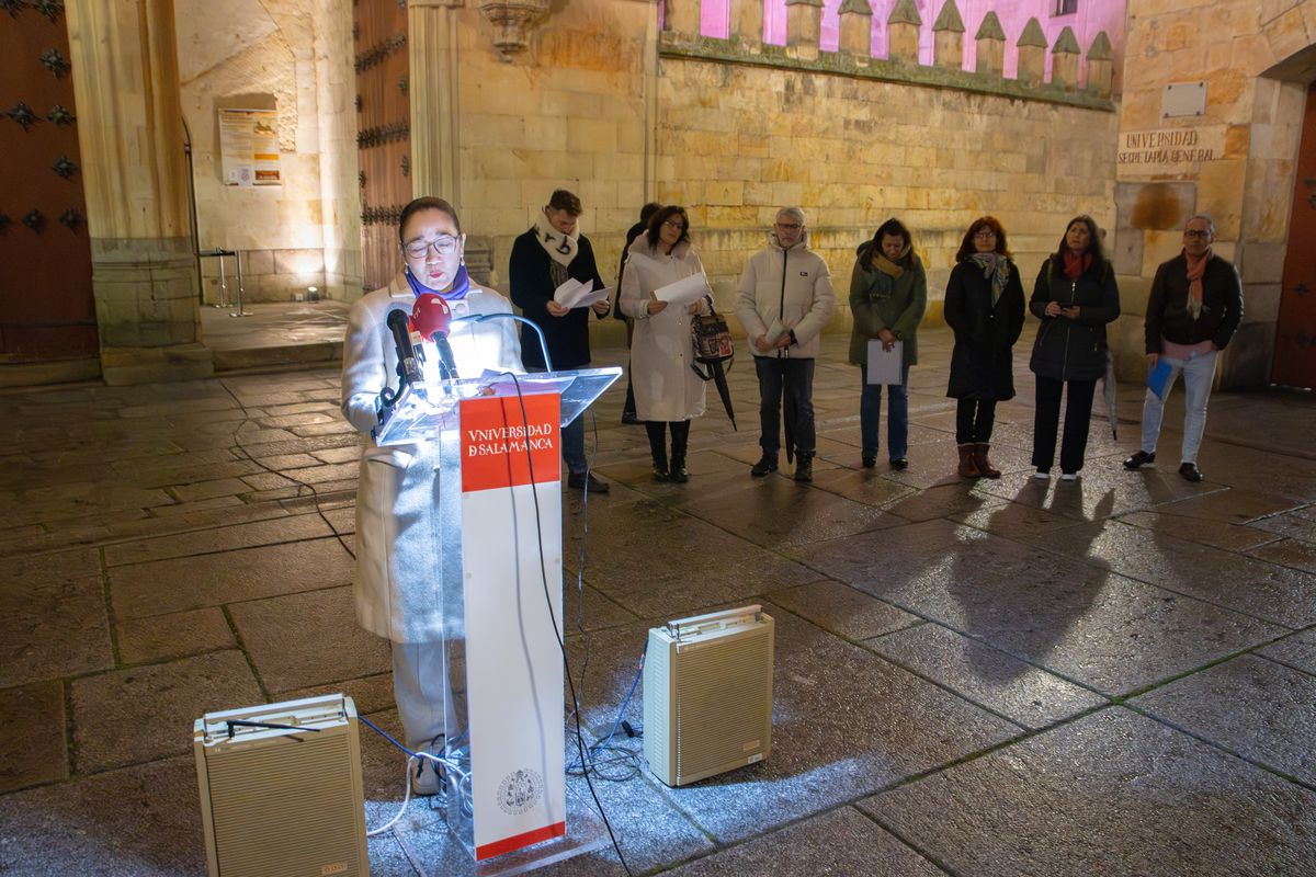 La Universidad de Salamanca (USAL) se ha sumado este lunes a la conmemoración del Día Internacional para la eliminación de la violencia contra las mujeres con un acto solemne celebrado en el Patio de Escuelas. La jornada, presidida por la vicerrectora de Estudiantes, Inclusión, Igualdad y Compromiso Social, Marta Gutiérrez Sastre, ha servido para reivindicar la lucha contra la desigualdad y poner sobre la mesa los nuevos retos que afronta la sociedad, especialmente el retroceso en la concienciación de las nuevas generaciones.
