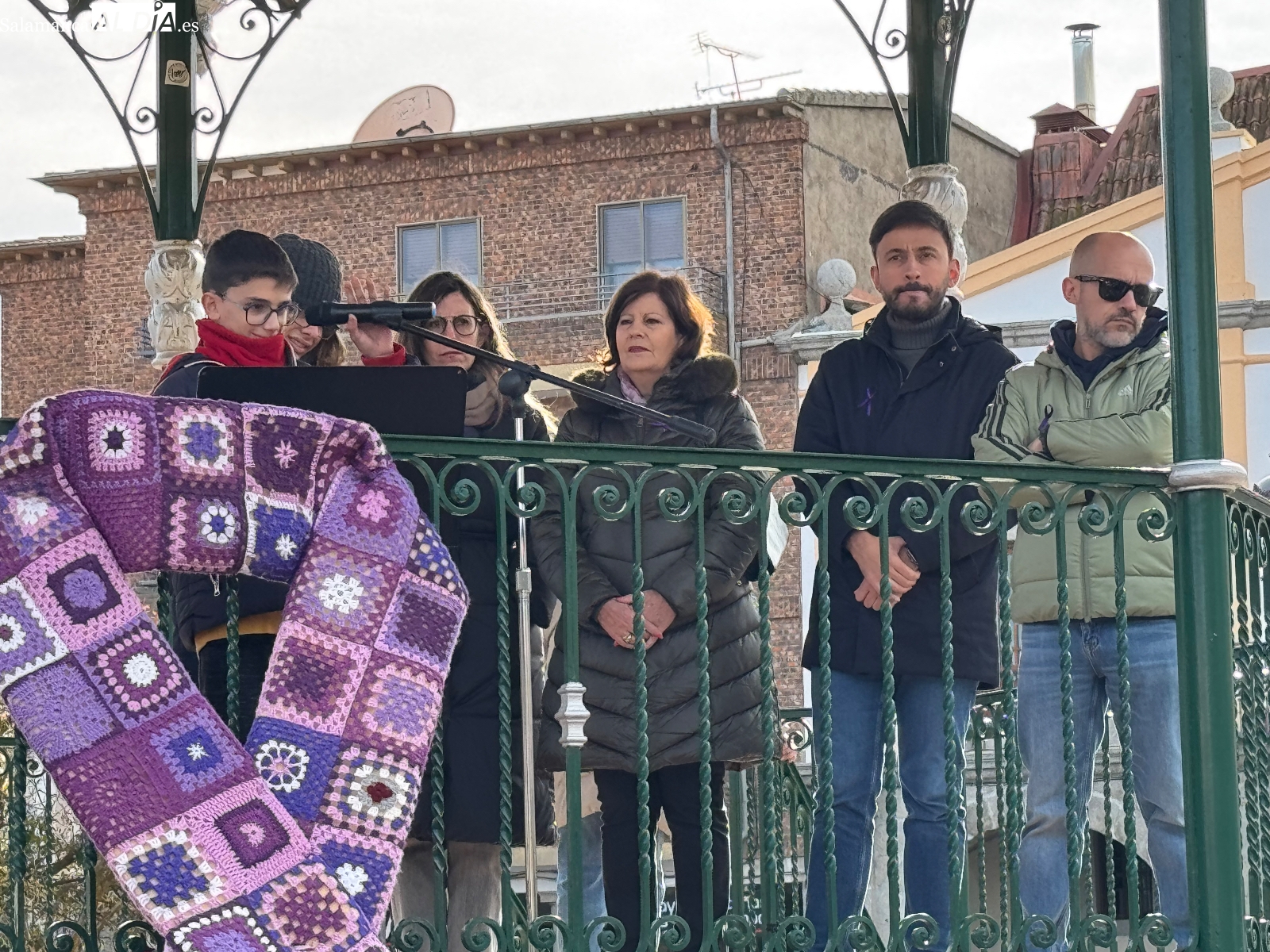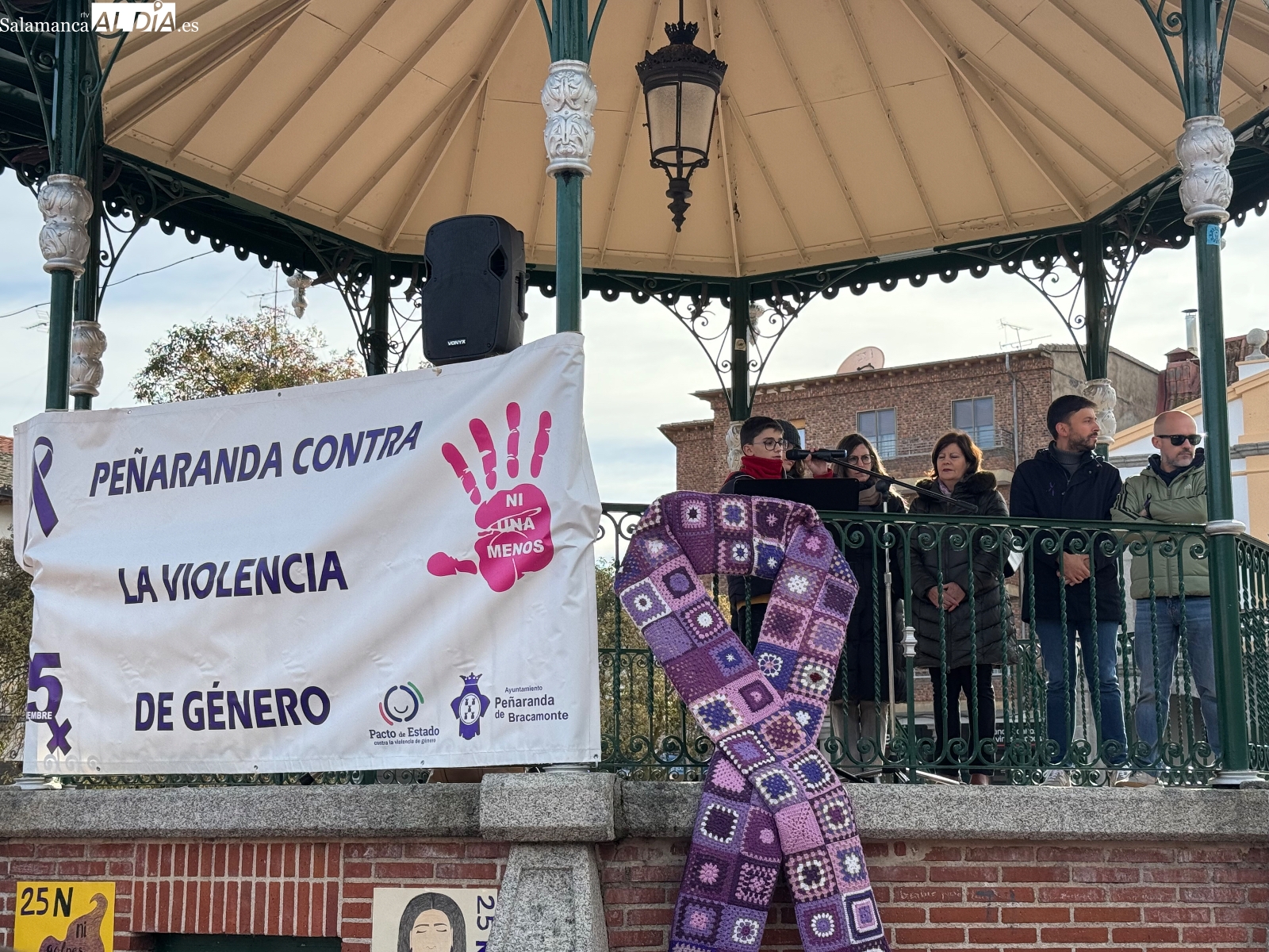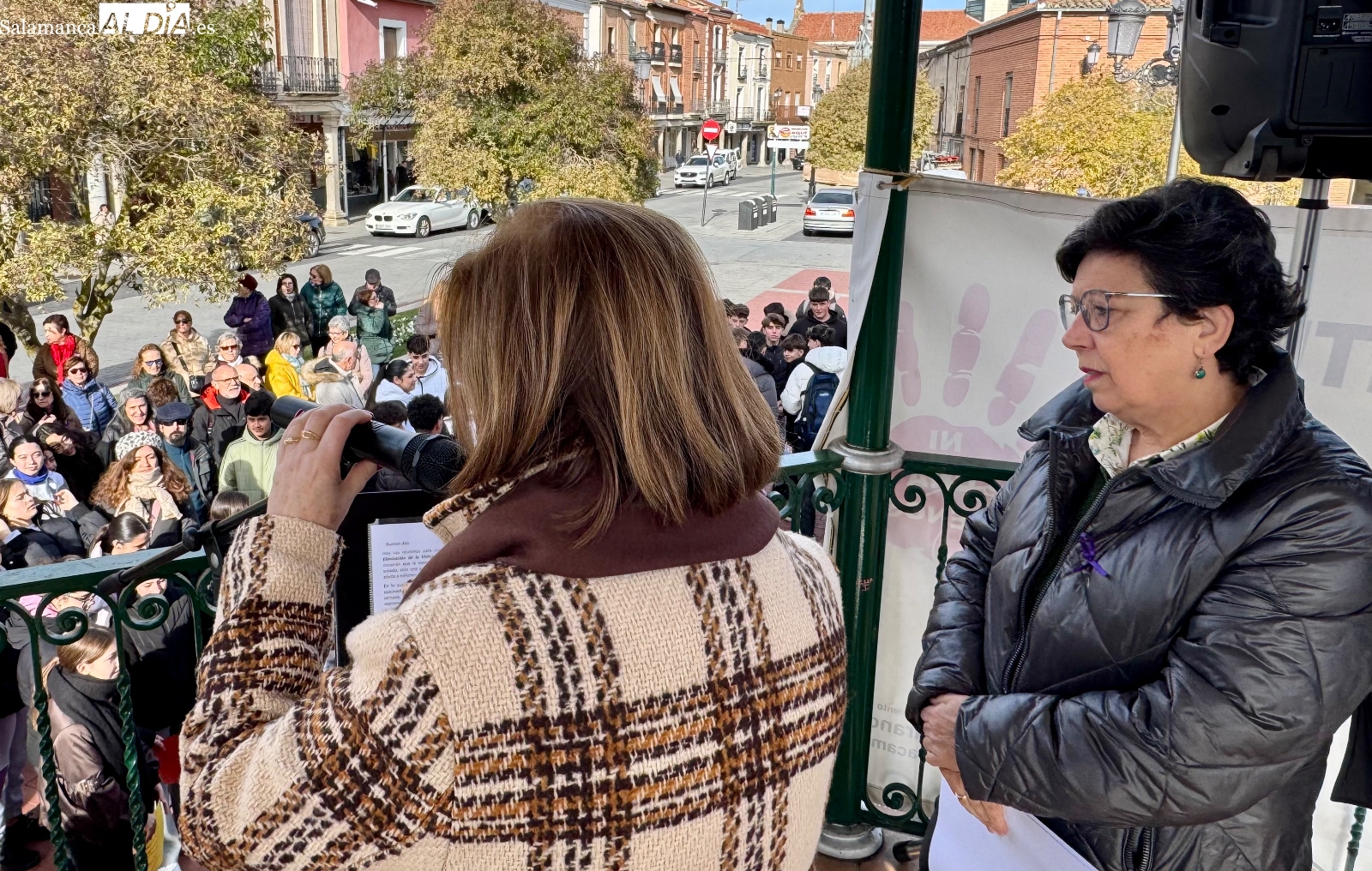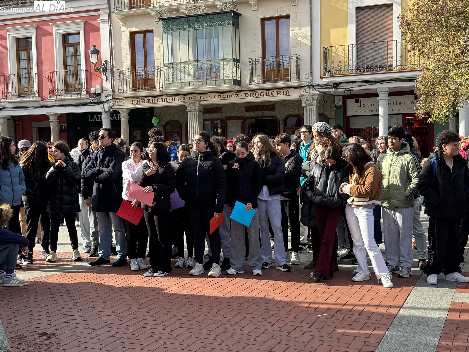 La Plaza de España volvió a convertirse un año más en el escenario de la conmemoración del 25 de Noviembre, Día Internacional de la Violencia contra la Mujer, en un acto que reunió a numerosos vecinos y a alumnado del IES Germán Sánchez Ruipérez.
