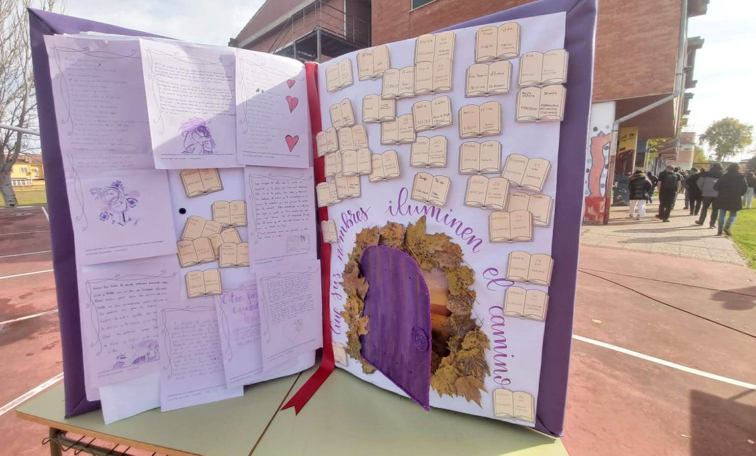 El acto de la mañana del martes, así como las tutorías previas que se han llevado a cabo, han tenido como eje la canción de El Chojin titulada El final del cuento de hadas, escribiendo los alumnos de los distintos grupos sus propios finales de la historia. Durante el acto, se dio lectura a 5 de estos finales, que se han incorporado a un gran libro titulado Otro lema es posible, junto a los nombres de las mujeres asesinadas en España en lo que va de año, que fueron leídos por los alumnos de 1º de la ESO.