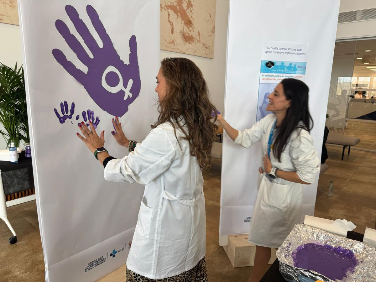 La acción central ha consistido en la colocación de manos moradas en un mural habilitado para la ocasión, un gesto que simboliza la unión de todo el personal sanitario frente a la violencia machista. El acto ha estado dirigido por Carmen Rodríguez Pajares, directora gerente del complejo asistencial salmantino.
