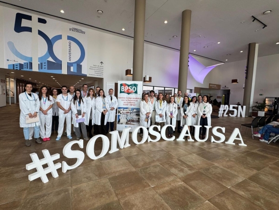 El Complejo Asistencial Universitario de Salamanca (CAUSA) se ha sumado hoy, 25 de noviembre, a los actos conmemorativos del Día Internacional de la Eliminación de la Violencia contra la Mujer. La institución sanitaria ha organizado una acción simbólica que ha combinado la reivindicación social con la puesta en común de los protocolos médicos que se están aplicando para detectar casos de maltrato.