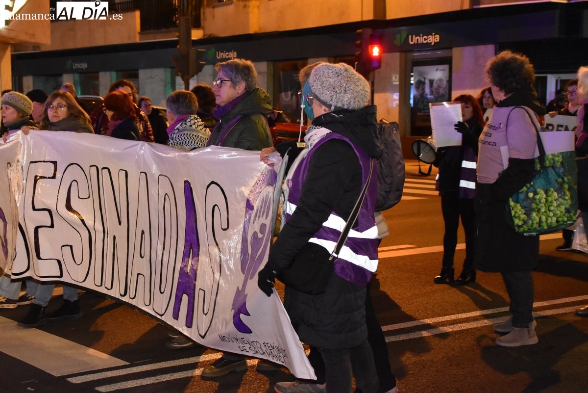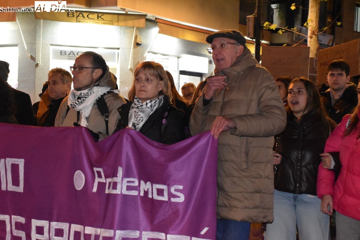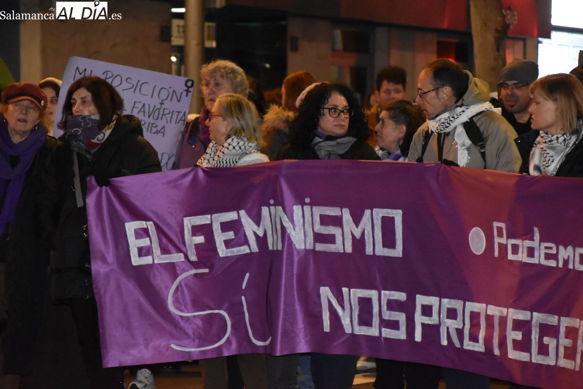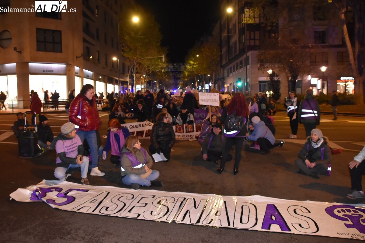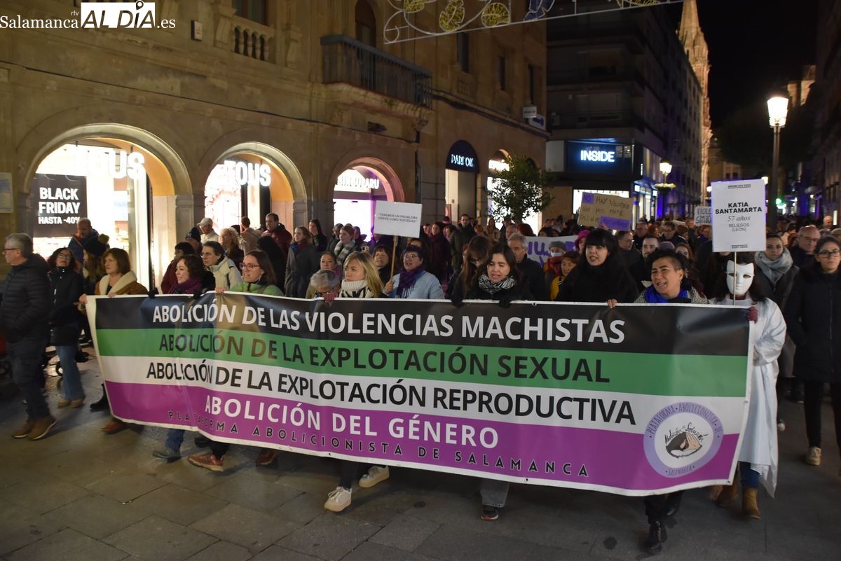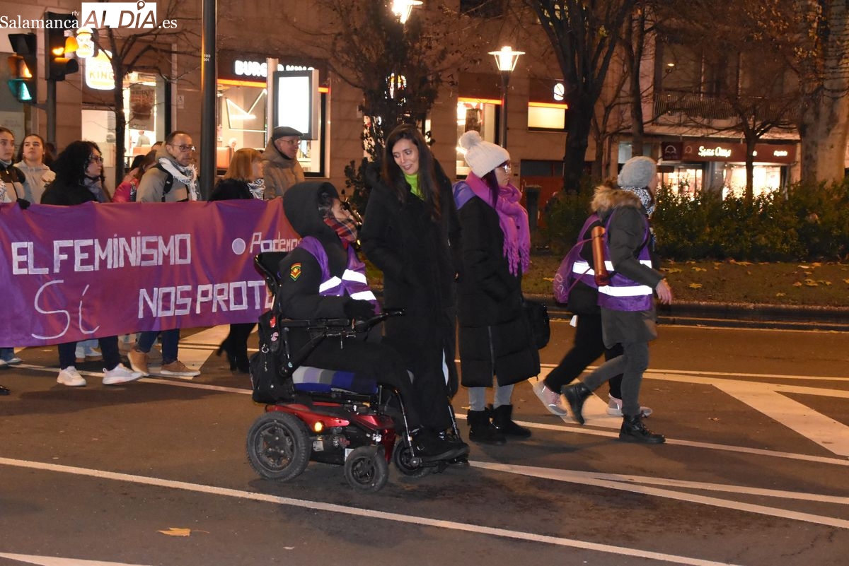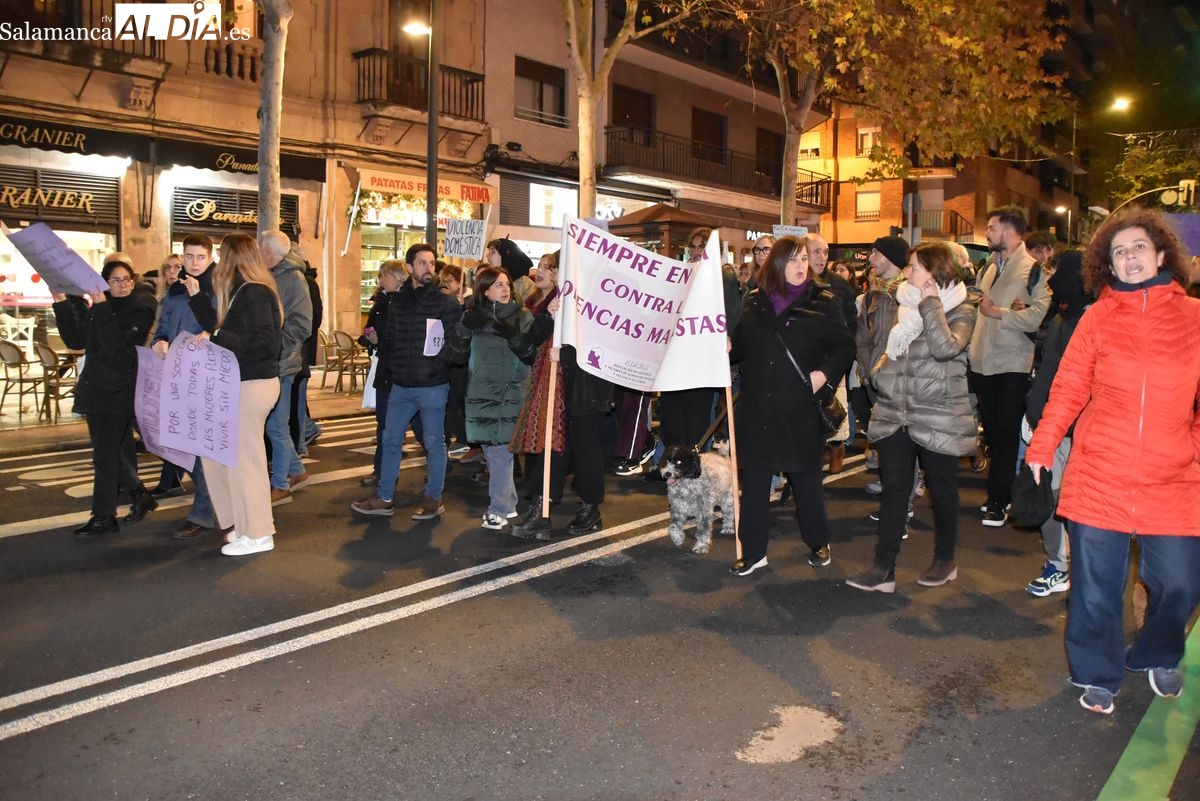 Numerosas personas, convocadas por el Movimiento Feminista de Salamanca, han recorrido este 25 de noviembre el centro de la ciudad en una masiva manifestación, que ha culminado en la Plaza Mayor con la lectura de un manifiesto que ha denunciado la violencia institucional y la 'justicia patriarcal'