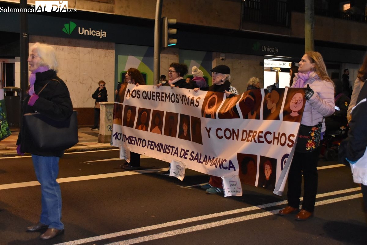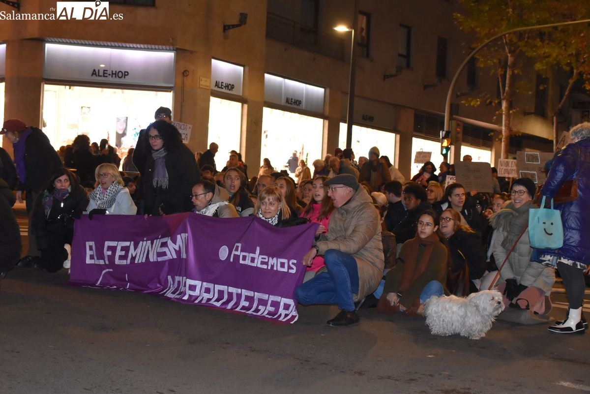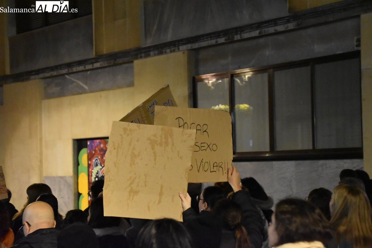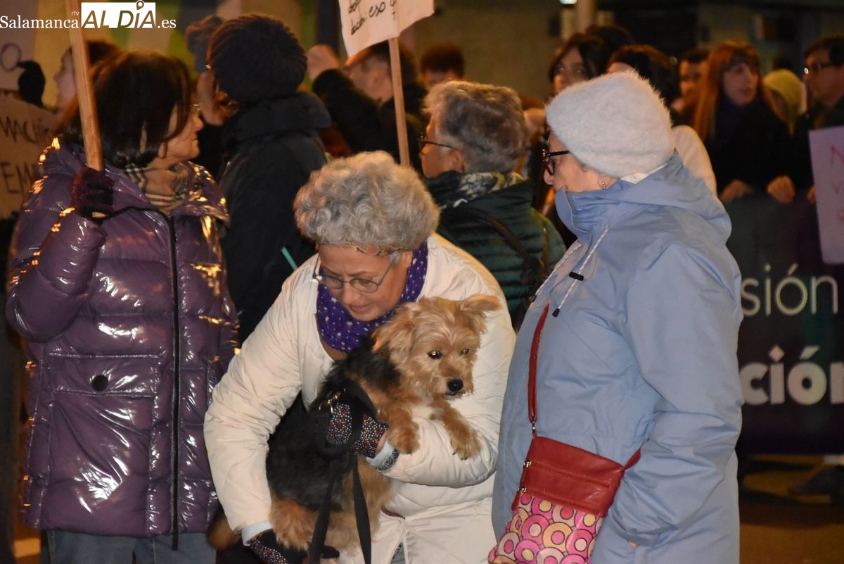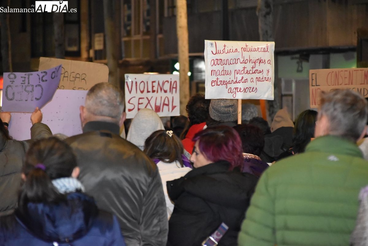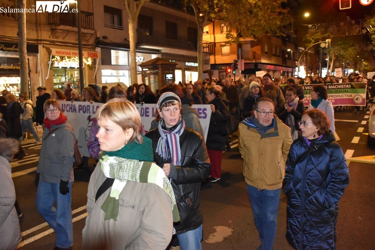 Numerosas personas, convocadas por el Movimiento Feminista de Salamanca, han recorrido este 25 de noviembre el centro de la ciudad en una masiva manifestación, que ha culminado en la Plaza Mayor con la lectura de un manifiesto que ha denunciado la violencia institucional y la 'justicia patriarcal'