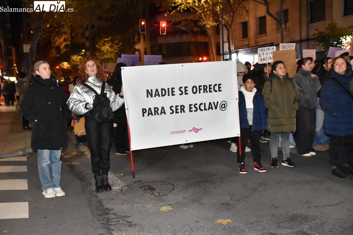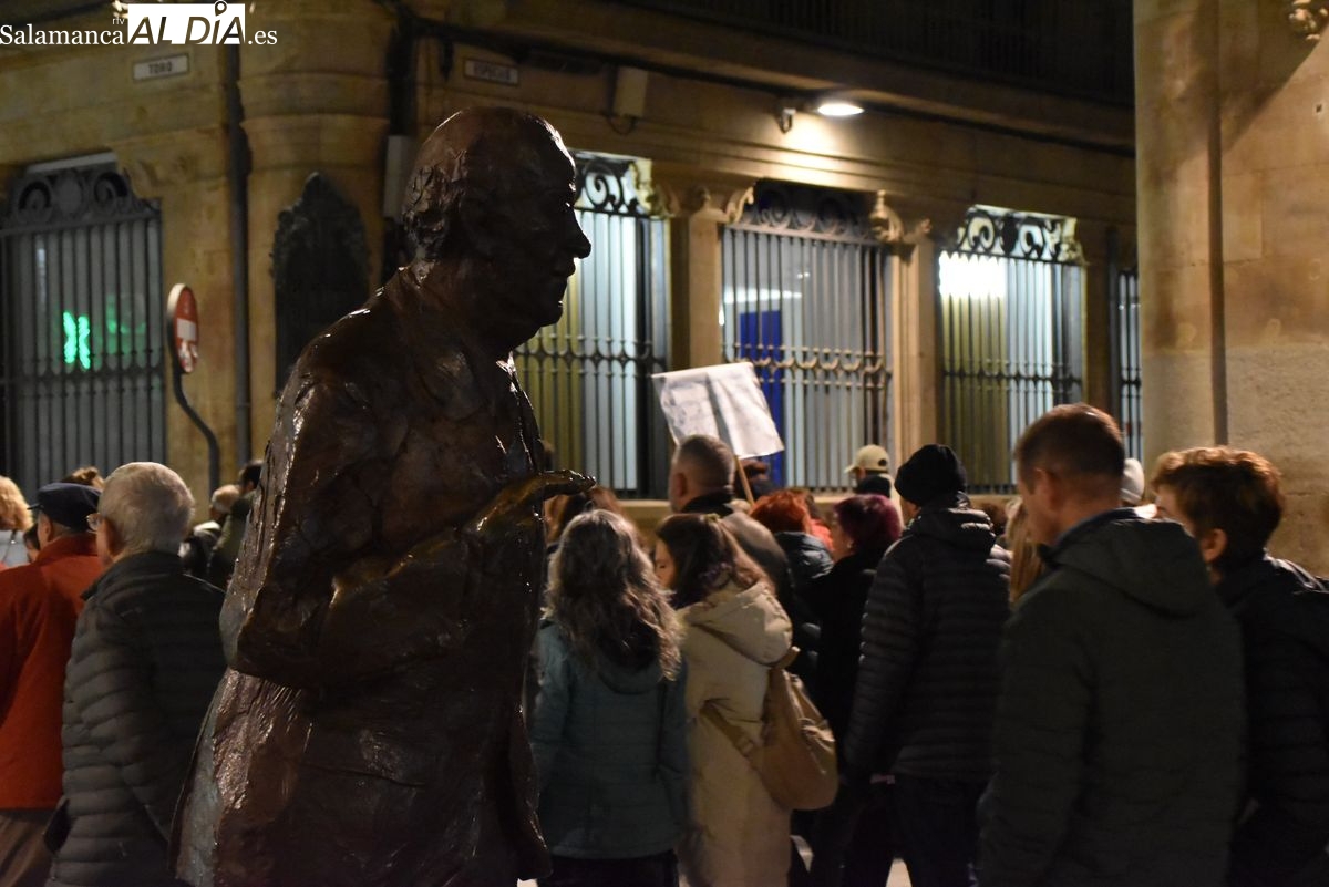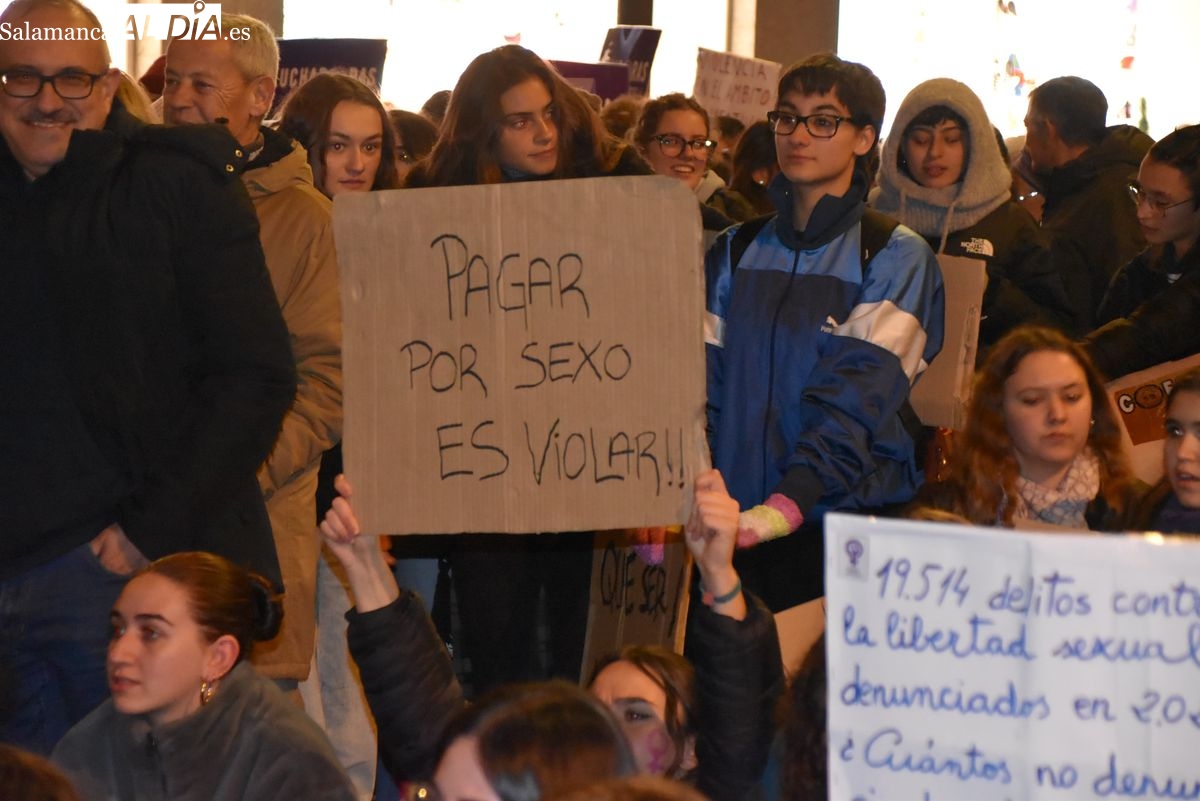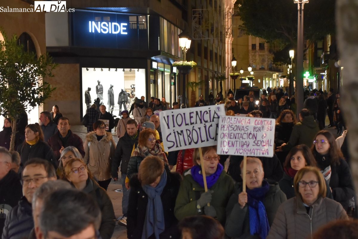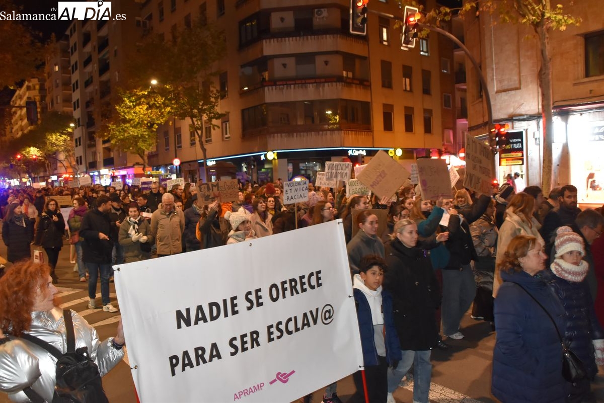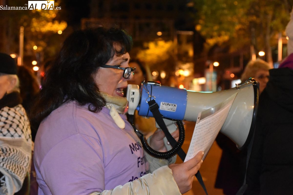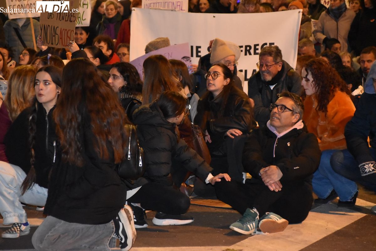 Numerosas personas, convocadas por el Movimiento Feminista de Salamanca, han recorrido este 25 de noviembre el centro de la ciudad en una masiva manifestación, que ha culminado en la Plaza Mayor con la lectura de un manifiesto que ha denunciado la violencia institucional y la 'justicia patriarcal'