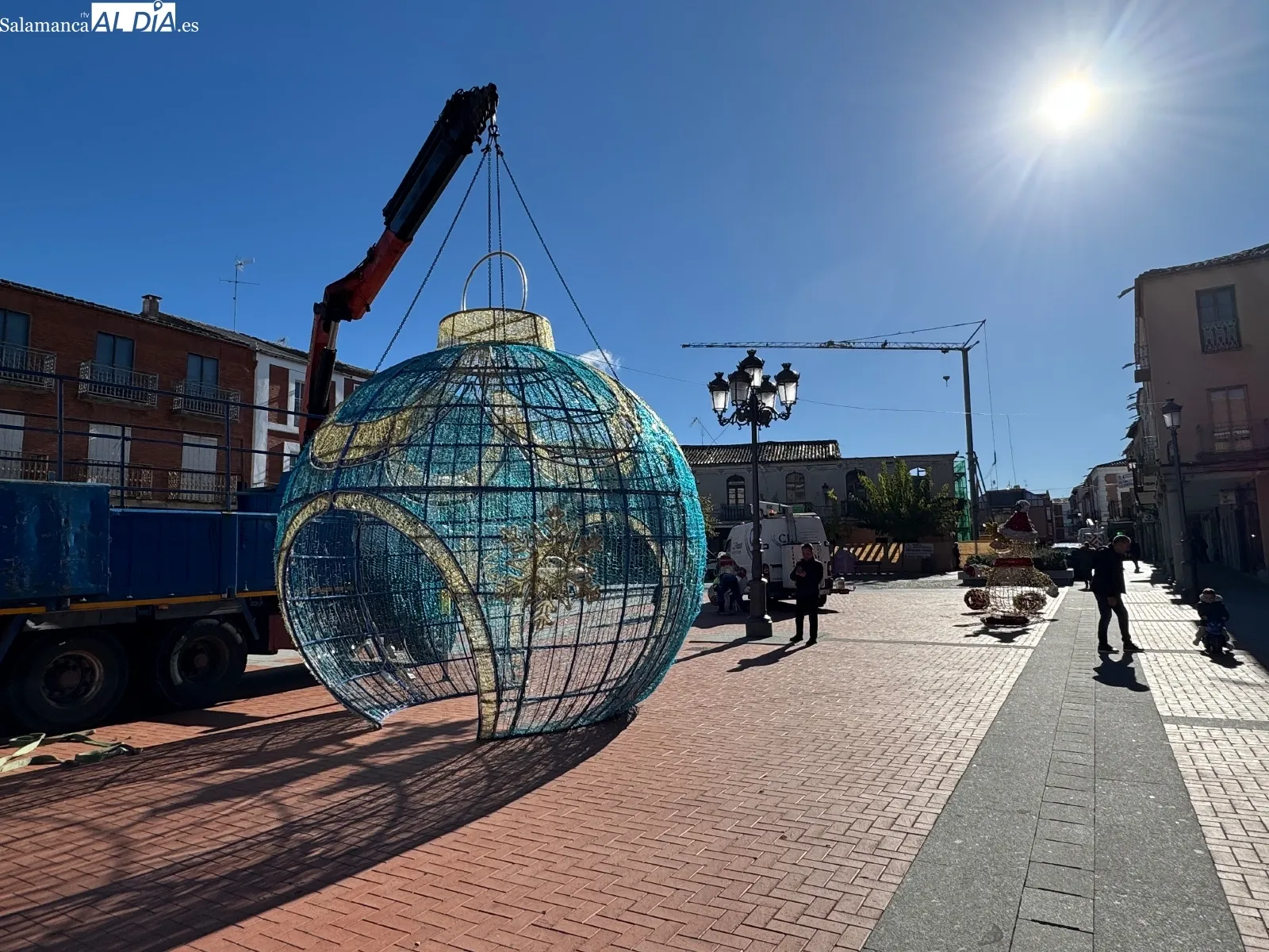 La empresa peñarandina Carmelo Plaza, encargada tradicionalmente del embellecimiento navideño de la ciudad, ha iniciado los trabajos con la colocación de una bola gigante situada en el centro del ágora. Este elemento, convertido ya en un símbolo de estas fechas, se complementa con diversos montajes luminosos distribuidos en las esquinas, generando un ambiente acogedor y pensado para el disfrute de todas las edades. El espacio volverá a ser uno de los escenarios preferidos para las tradicionales fotografías familiares que marcan el comienzo de la Navidad.