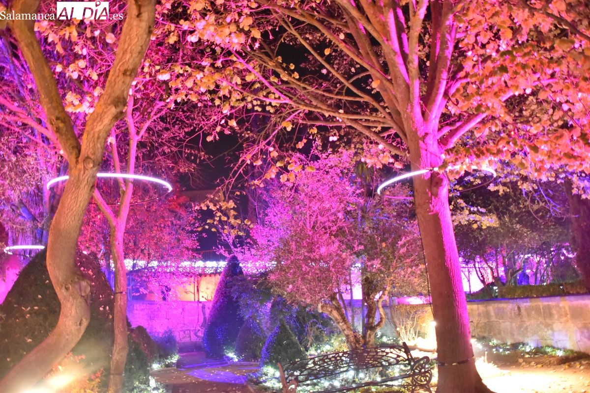 El emblemático Huerto de Calixto y Melibea ofrecerá desde mañana una nueva imagen nocturna al convertirse en 'El jardín mágico', una de las principales novedades del programa navideño de la ciudad. Esta propuesta se suma al parque navideño organizado por el Ayuntamiento de Salamanca, complementando otras actividades como los videomapping de la Plaza Mayor y el Patio Chico, así como el Mercado navideño ubicado en la Plaza de Anaya.